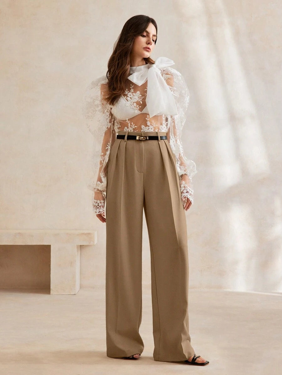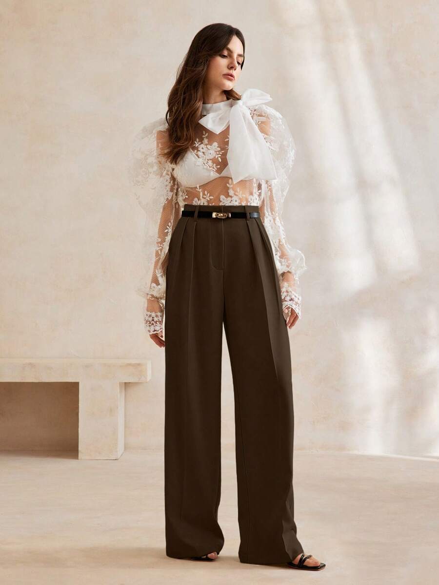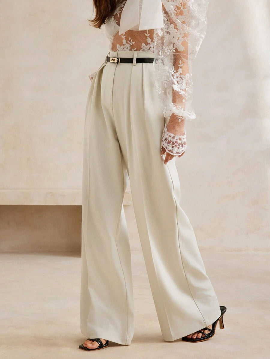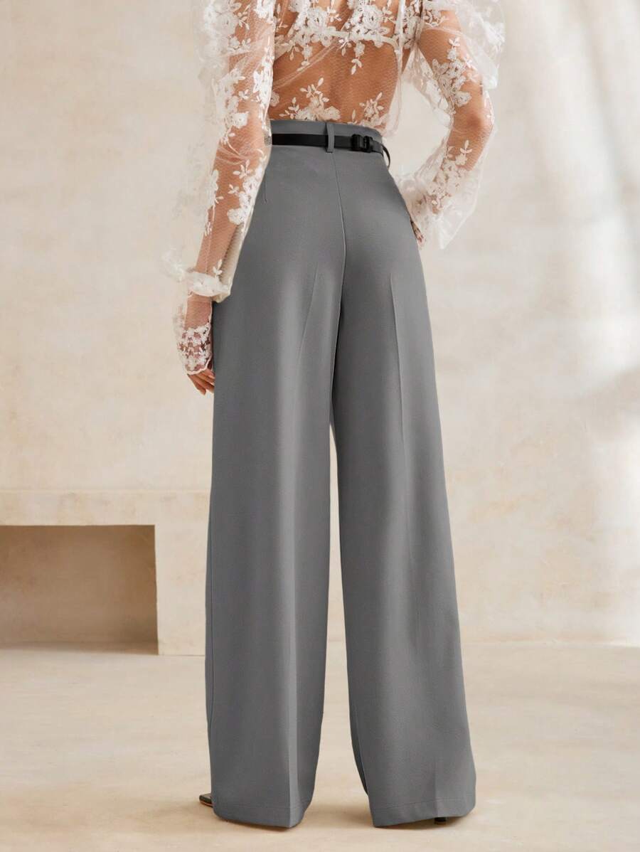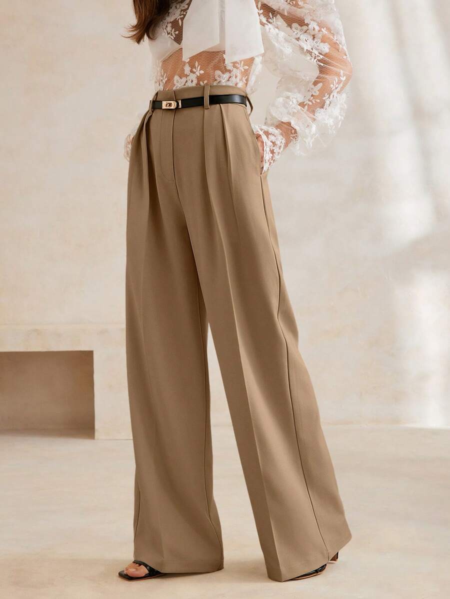 MIU Plain Pocket Simple Elegant Urban Women Dress Pants, Casual Daily Wear