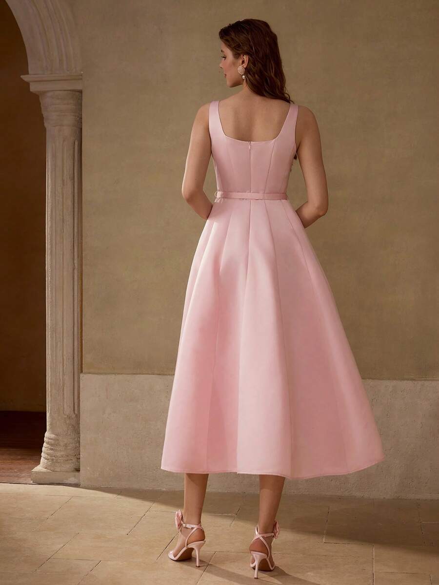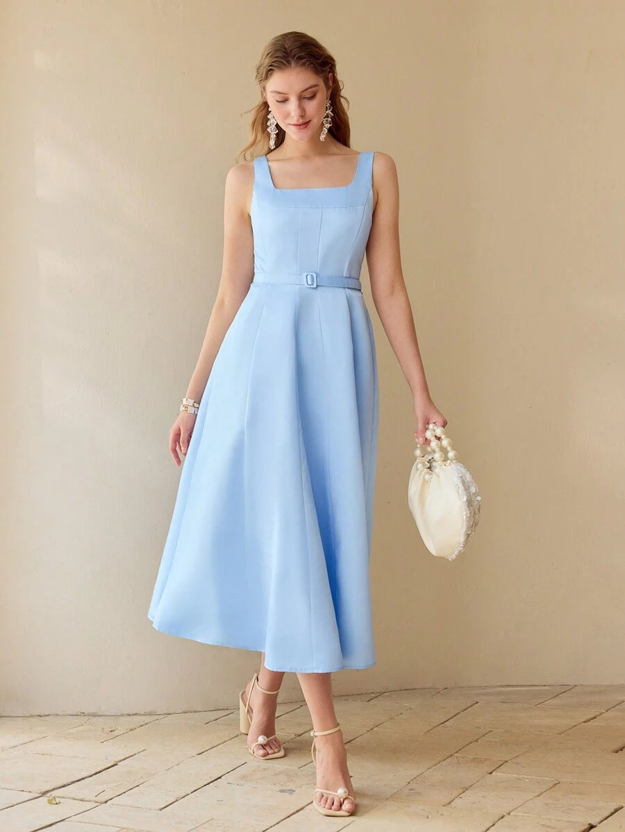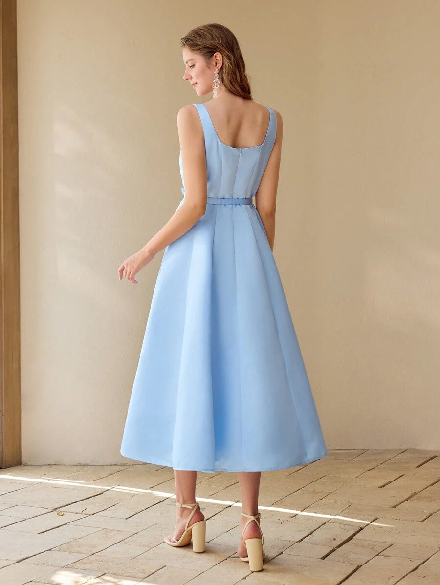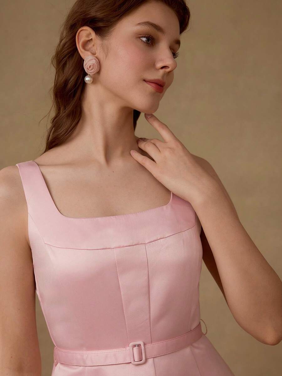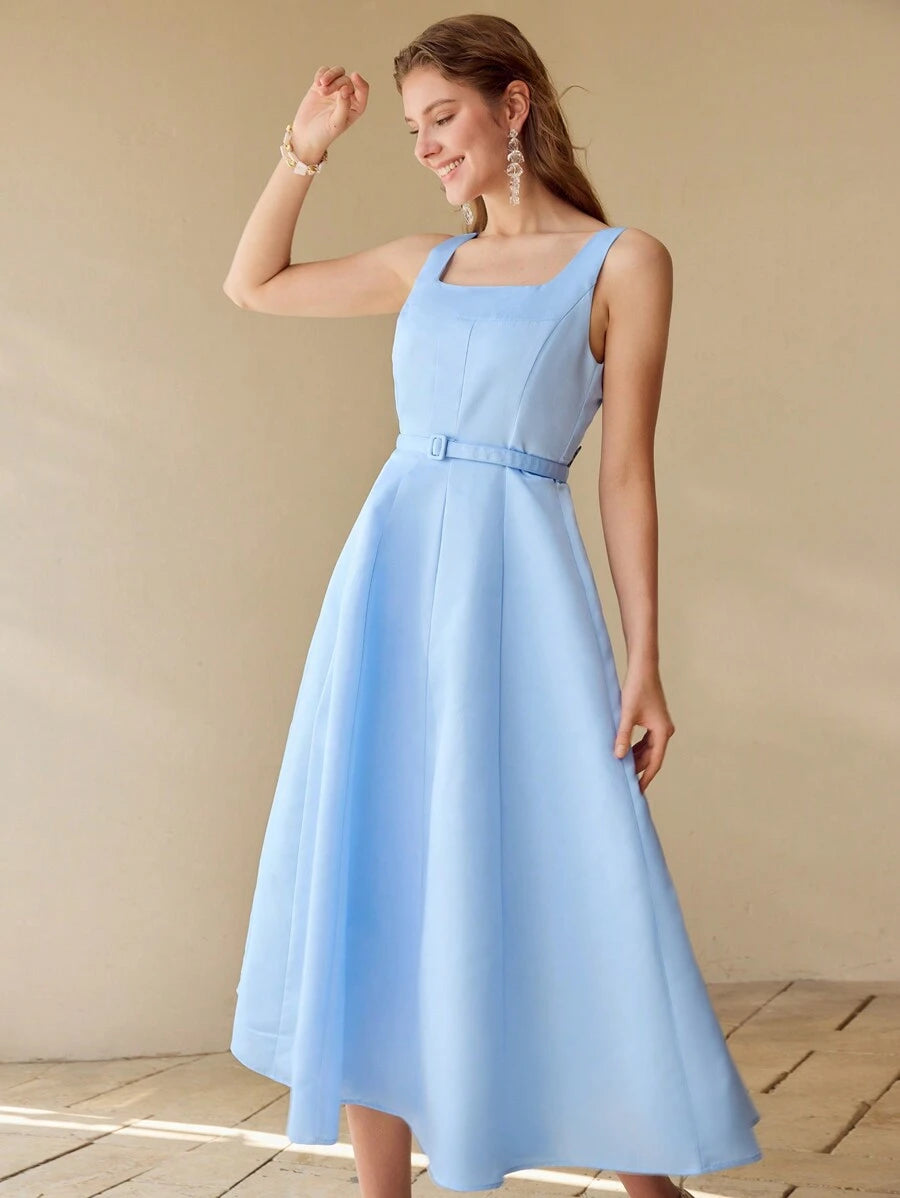 MIU PREMIUM BELTED FOLD PLEATED TANK DRESS