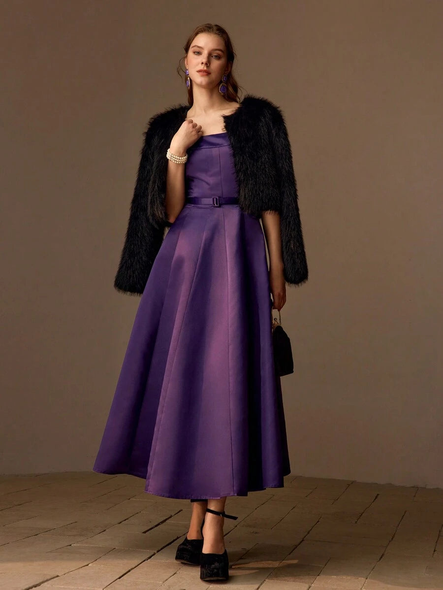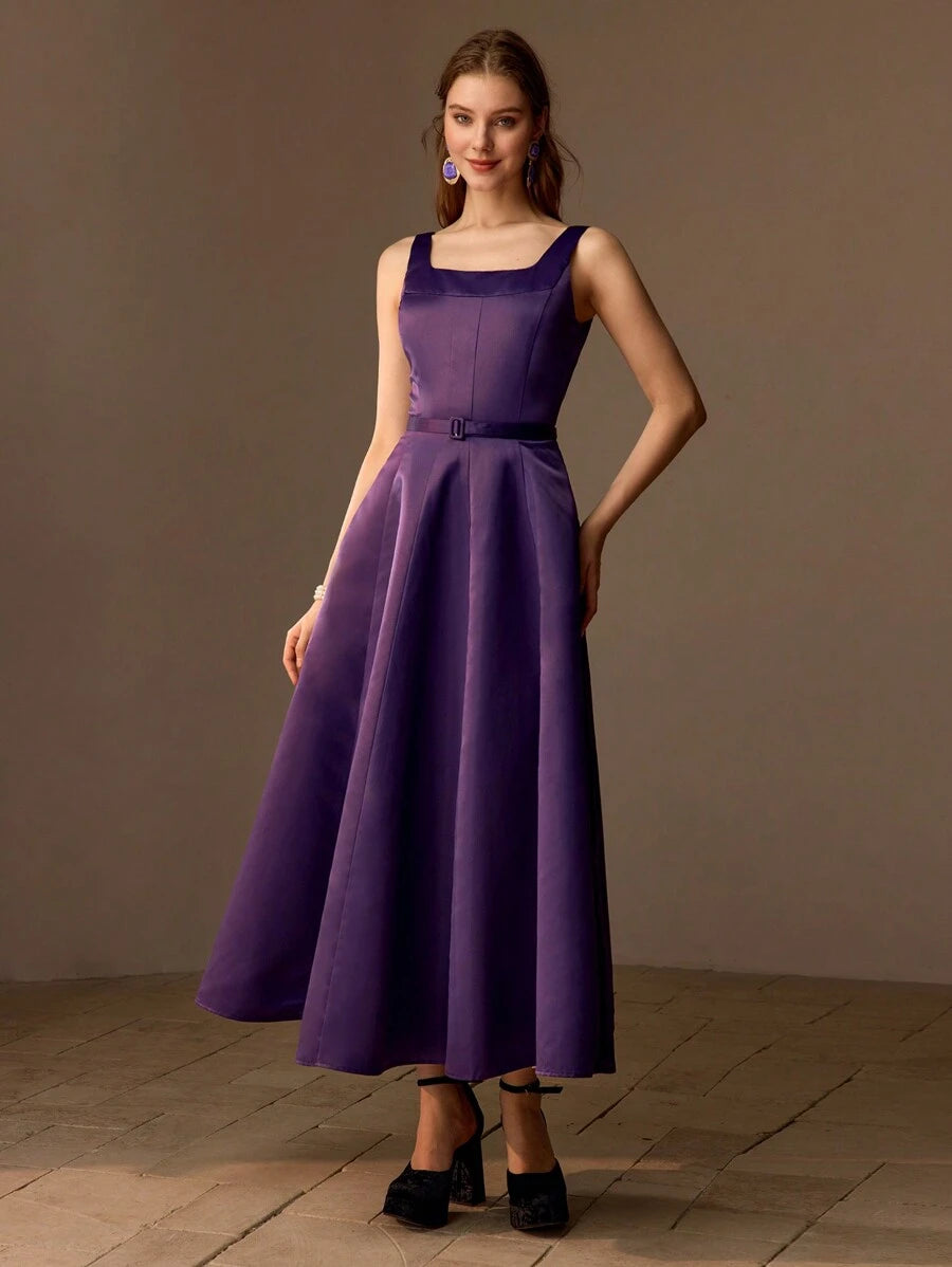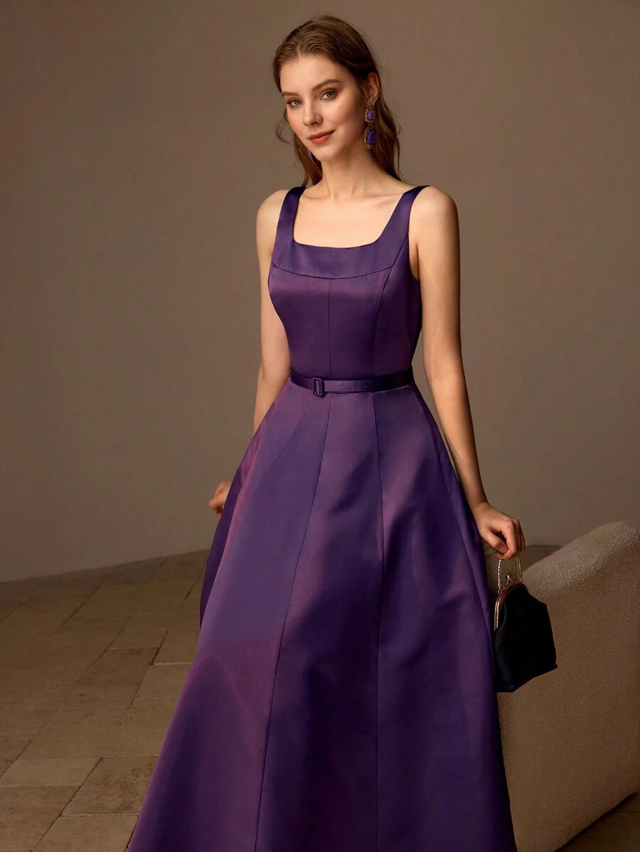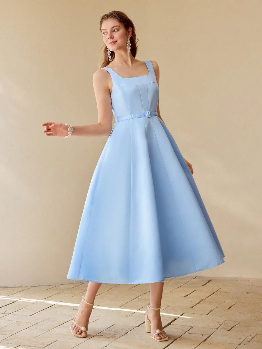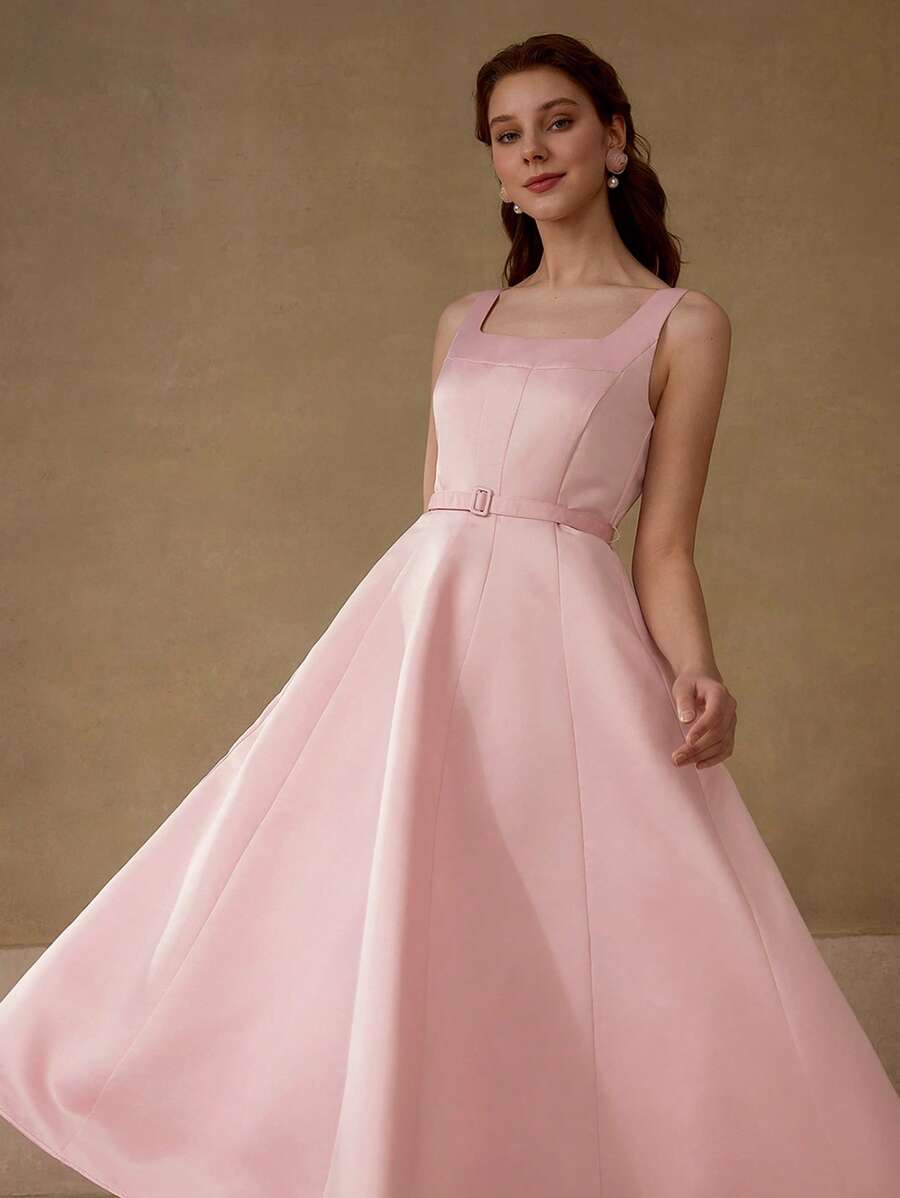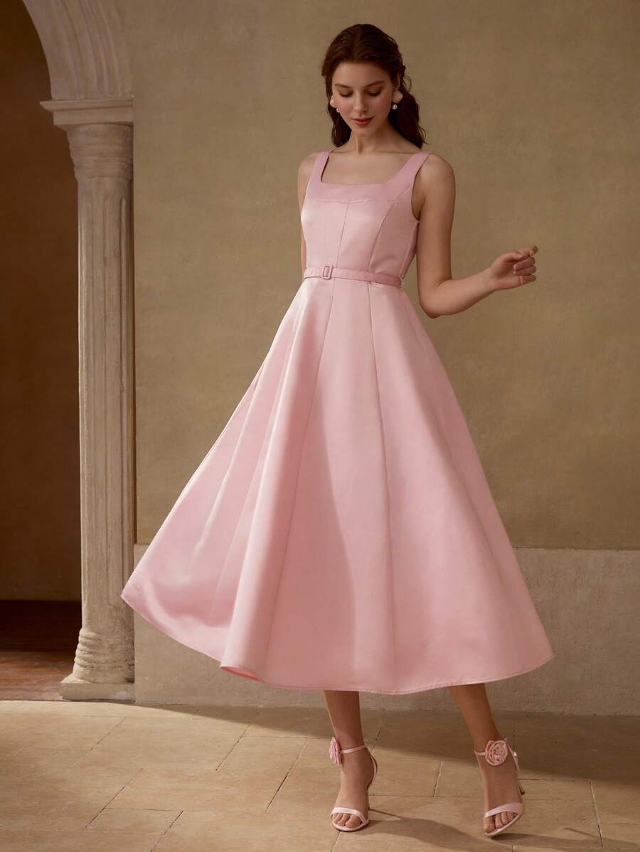 MIU PREMIUM BELTED FOLD PLEATED TANK DRESS