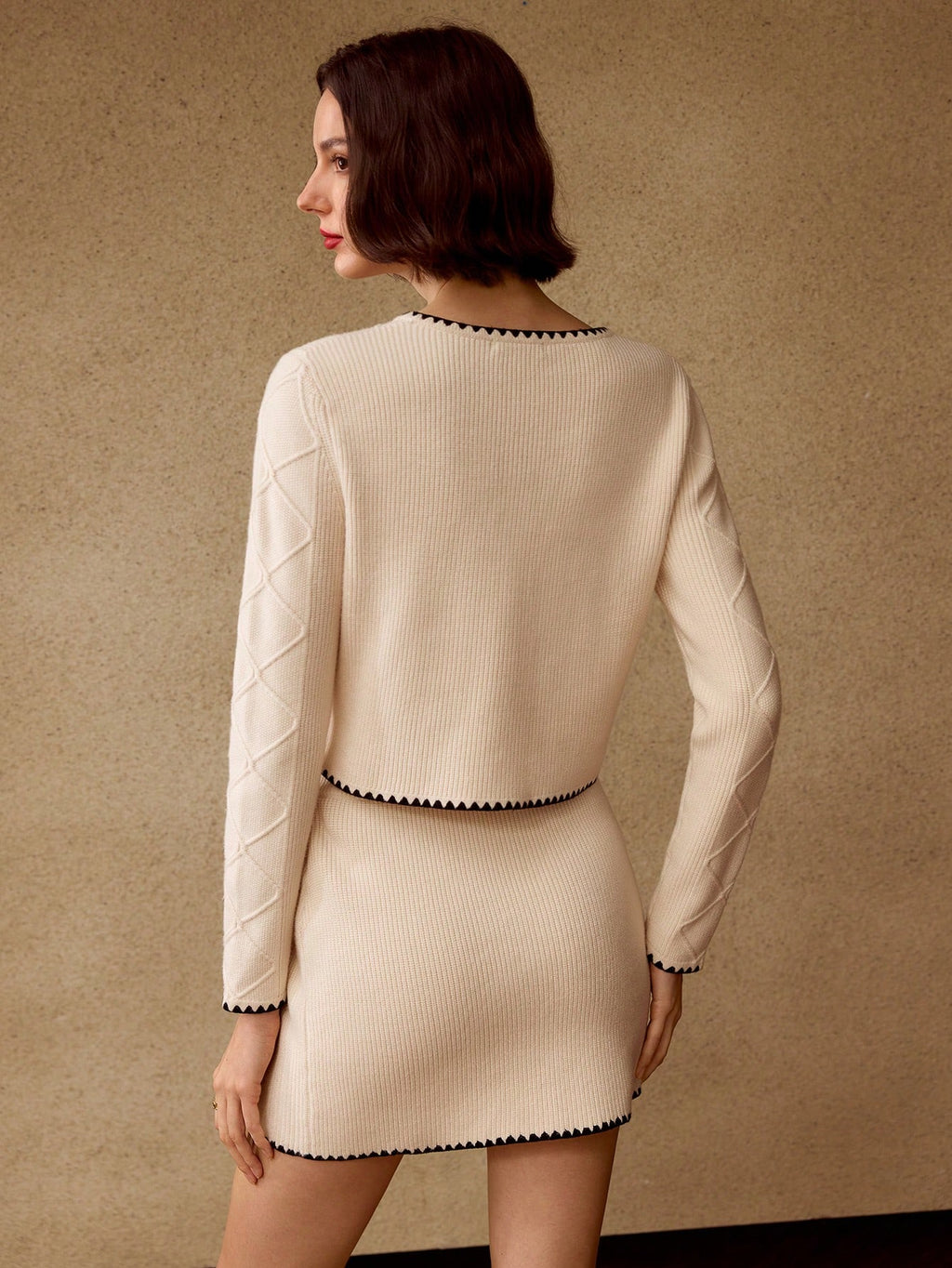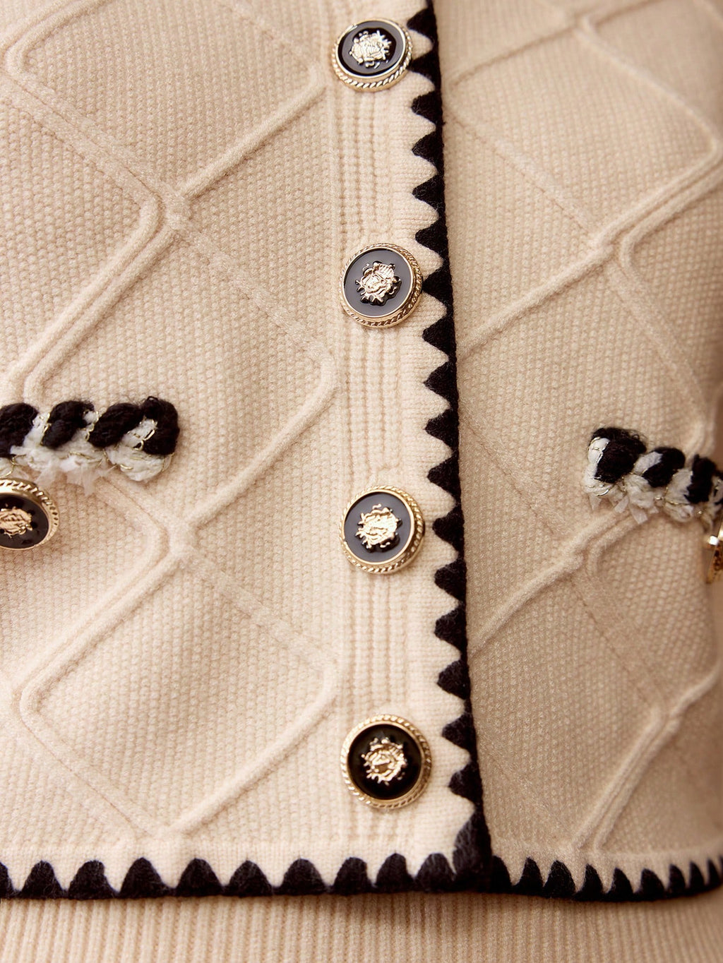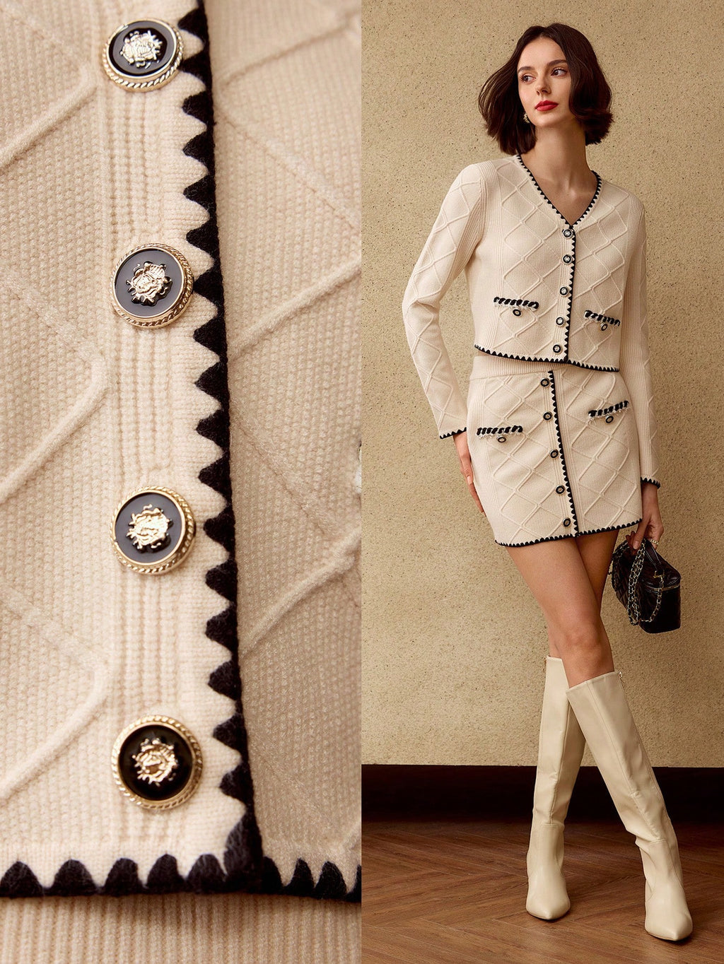 MIU PREMIUM CONTRAST PIPING V-NECK SINGLE BREASTED PLACKET CARDIGAN