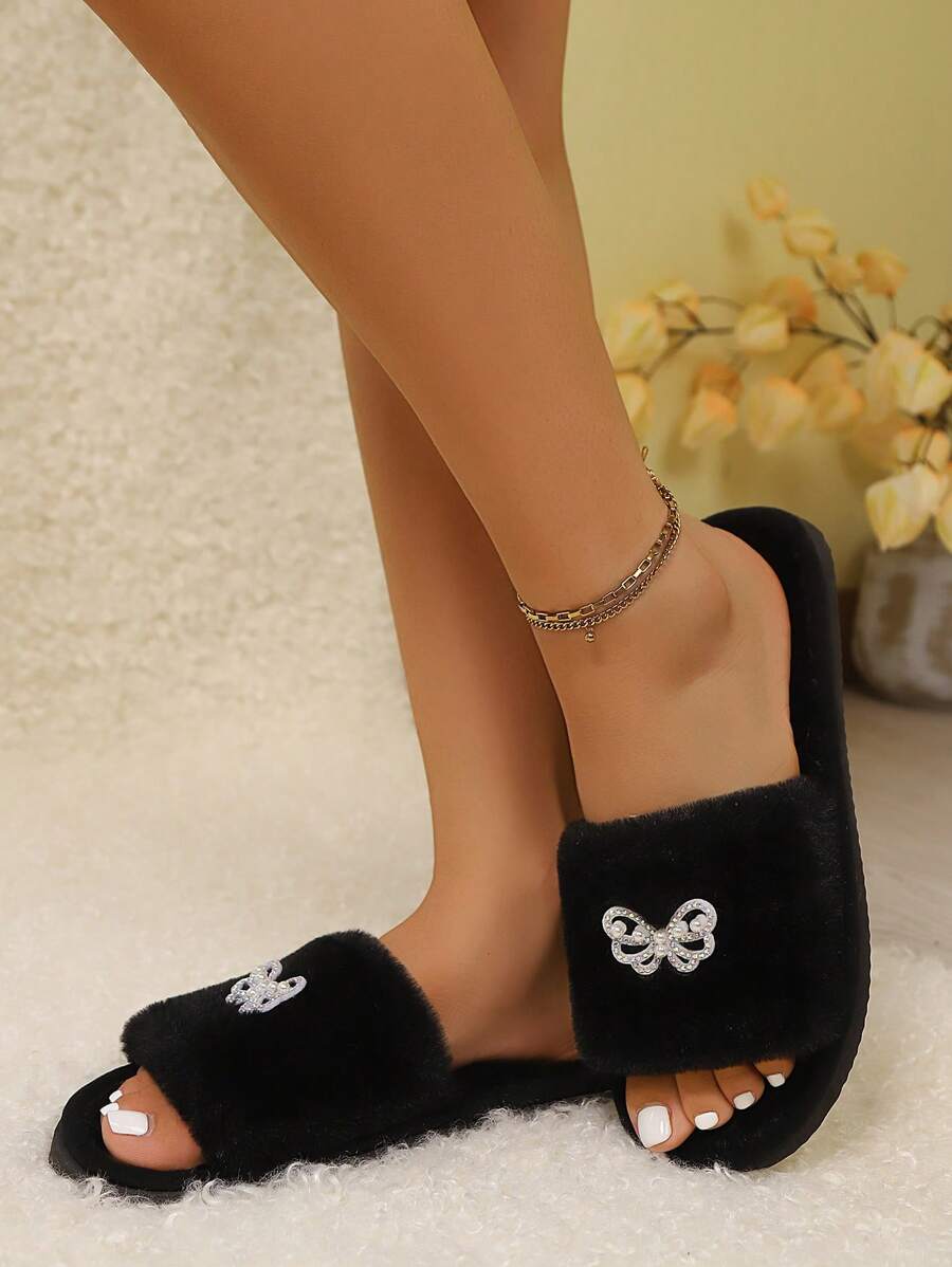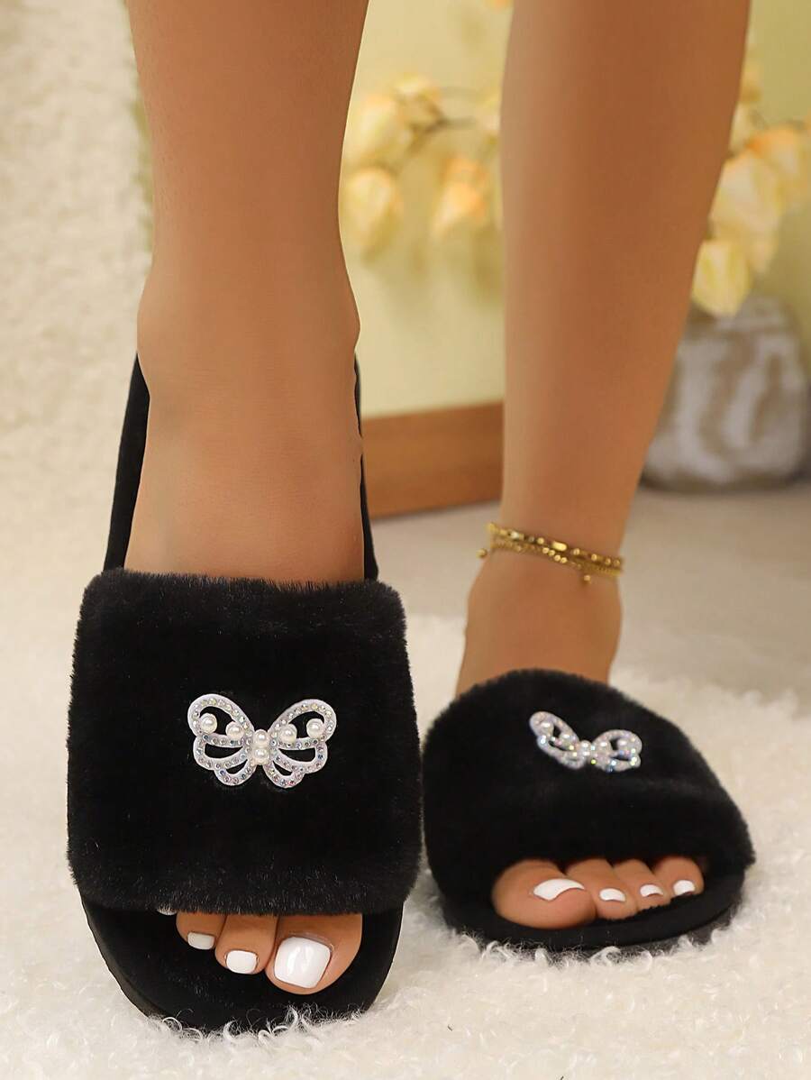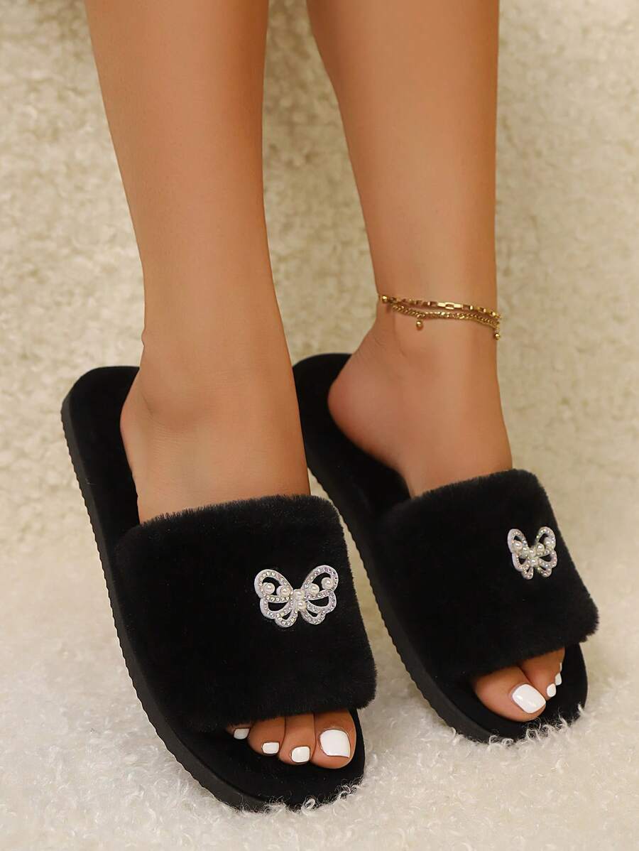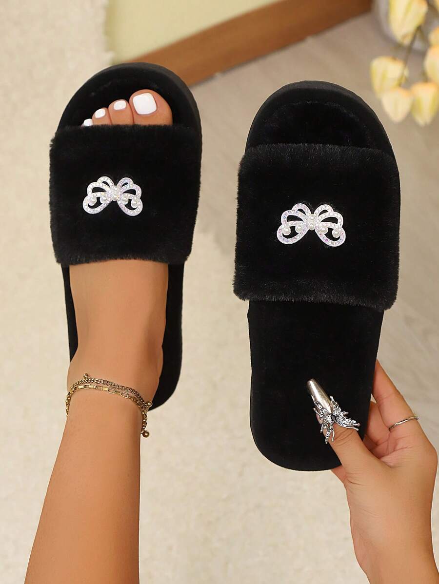 MIU Premium Fashion Heart Decor Plush Women Slippers, Soft Comfortable Lightweight Soft Bottom, Suitable For Living Room And Bedroom, All Seasons