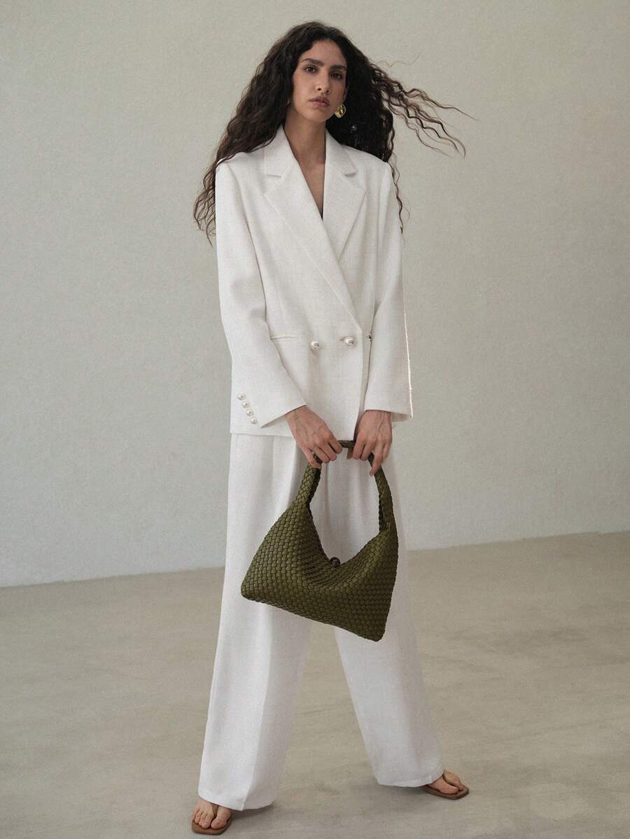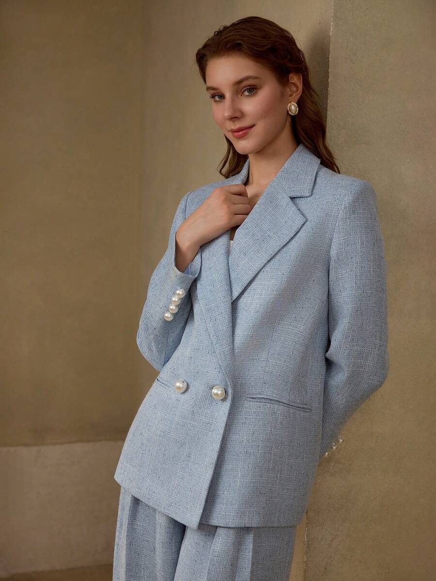 MIU PREMIUM FAUX PEARL DOUBLE BREASTED BLAZER