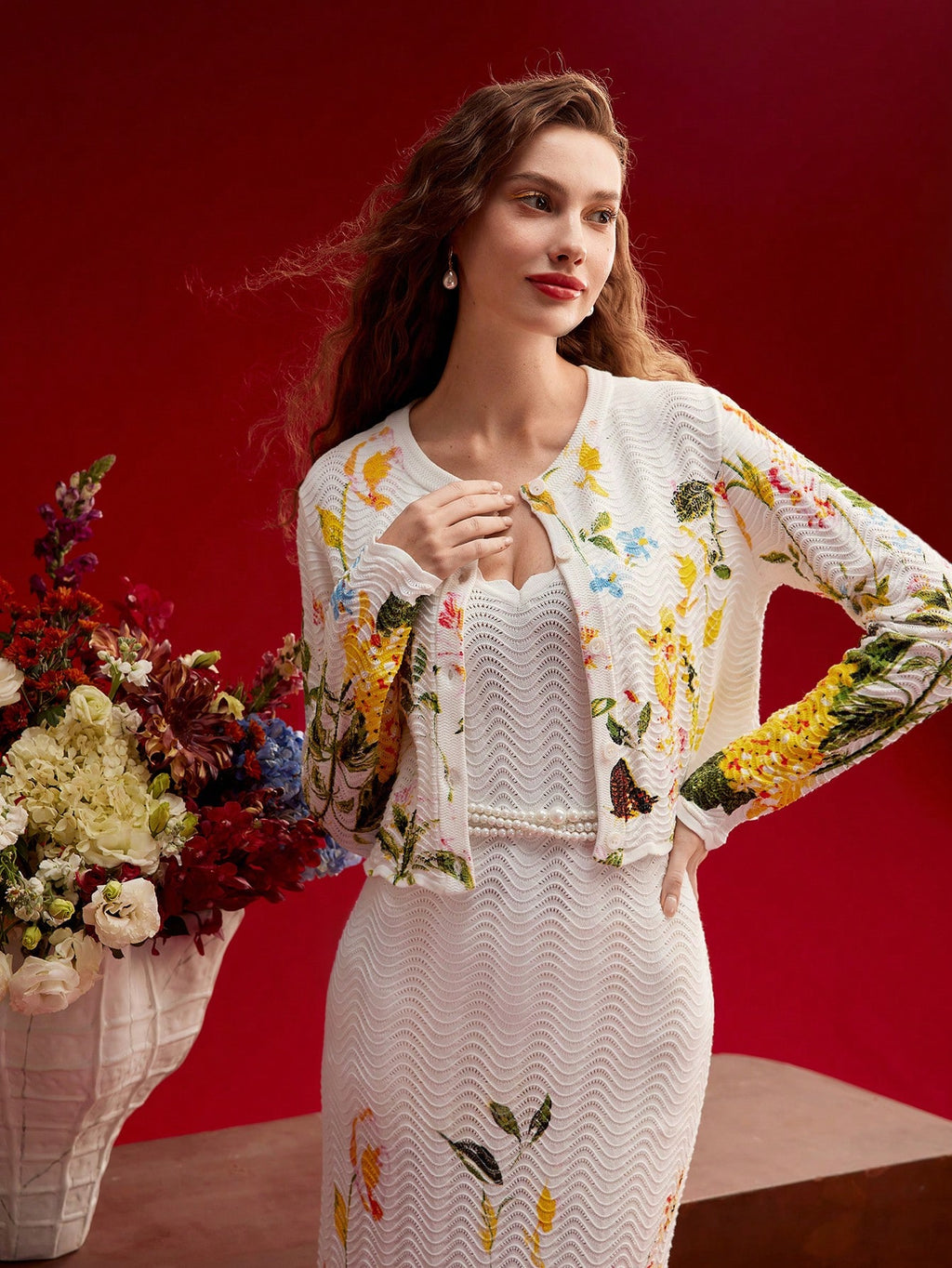 MIU PREMIUM FLORAL PATTERN BUTTON UP CARDIGAN,SPRING/SUMMER