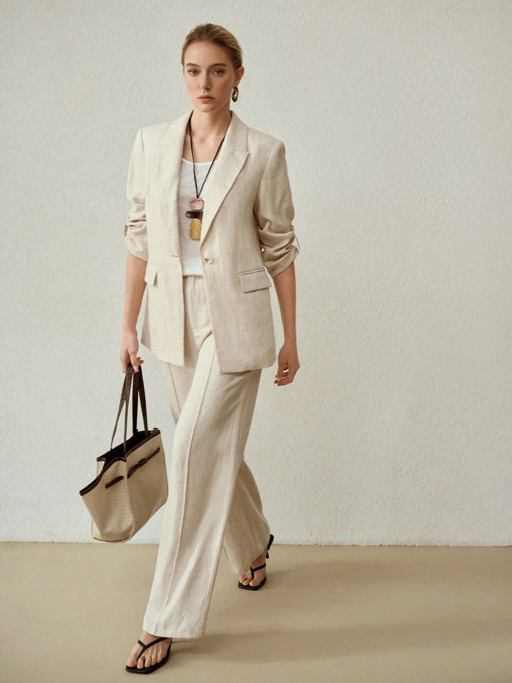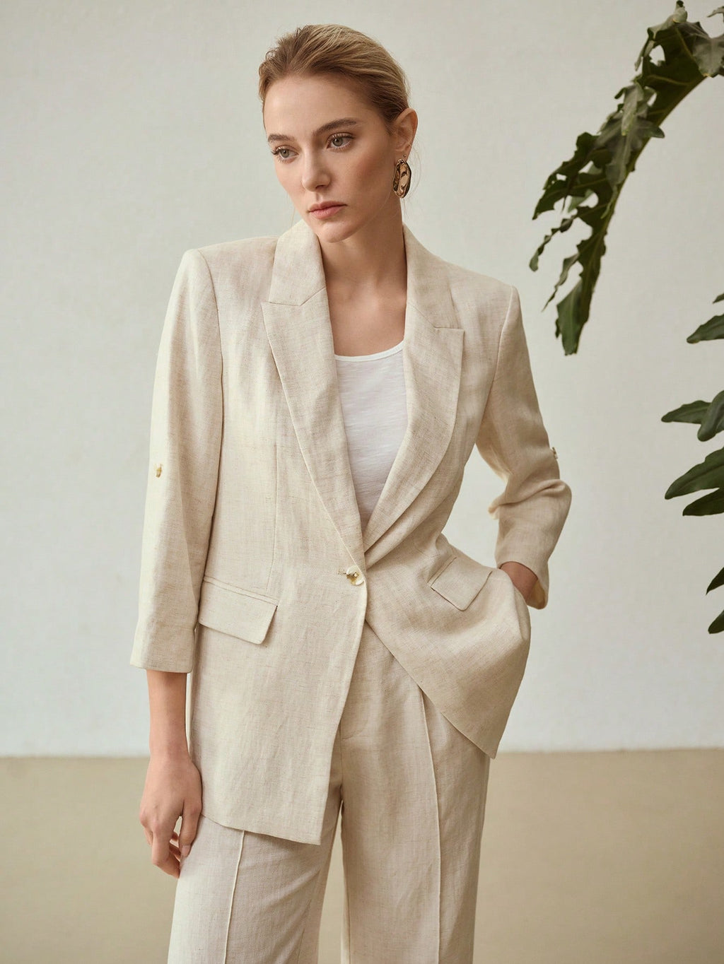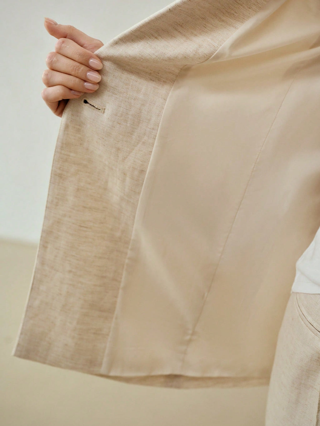 MIU PREMIUM LINEN BLEND SINGLE BUTTON BLAZER