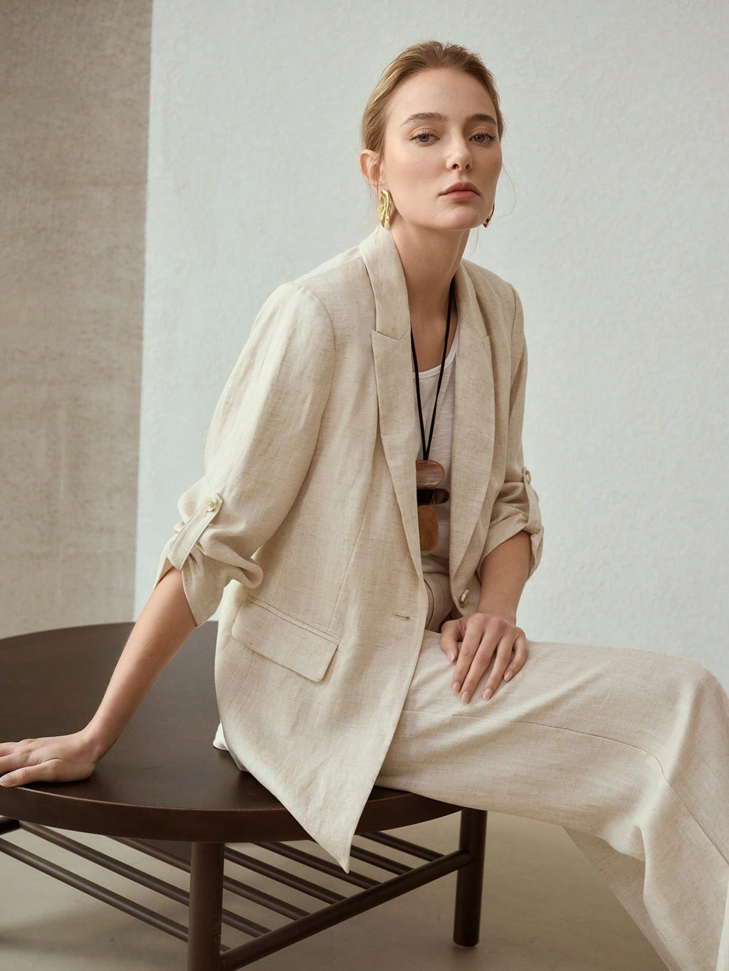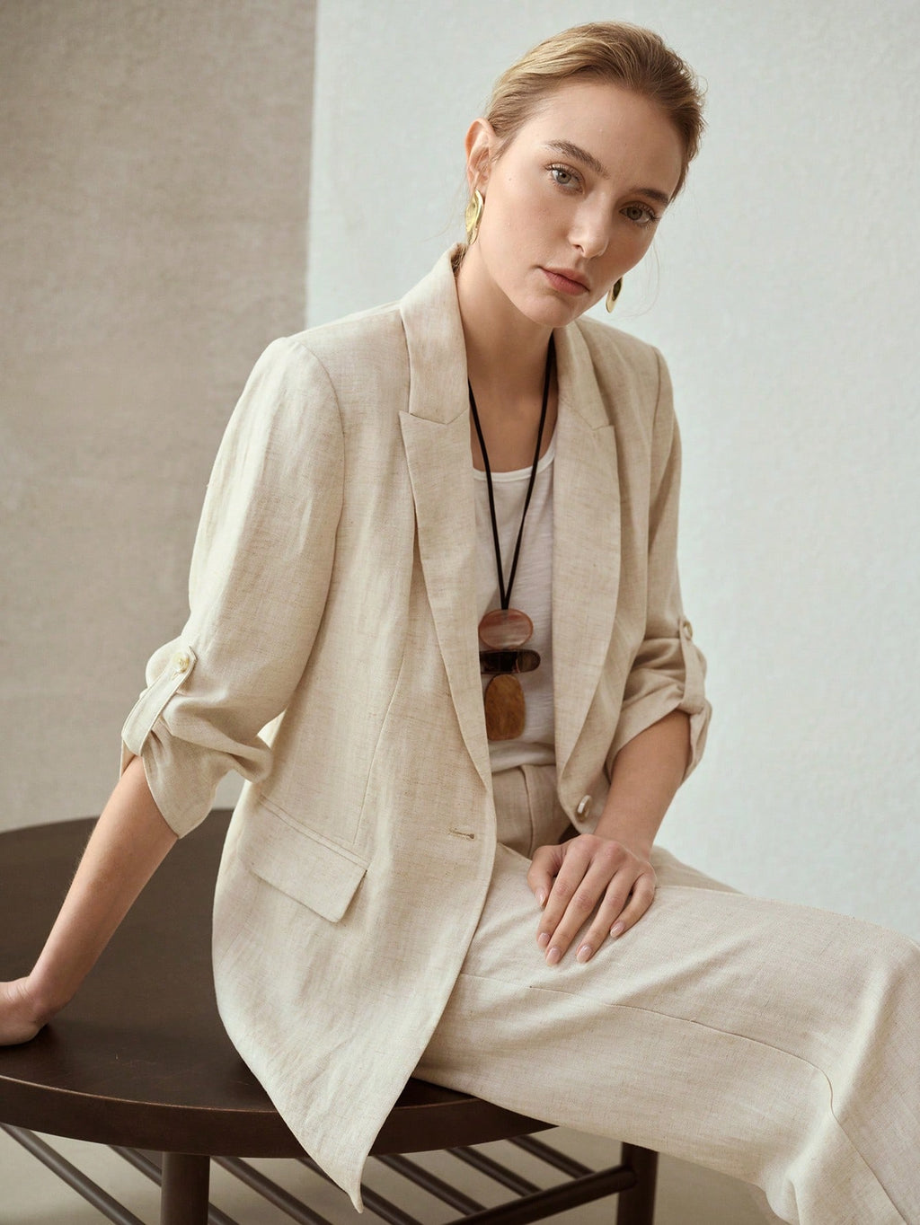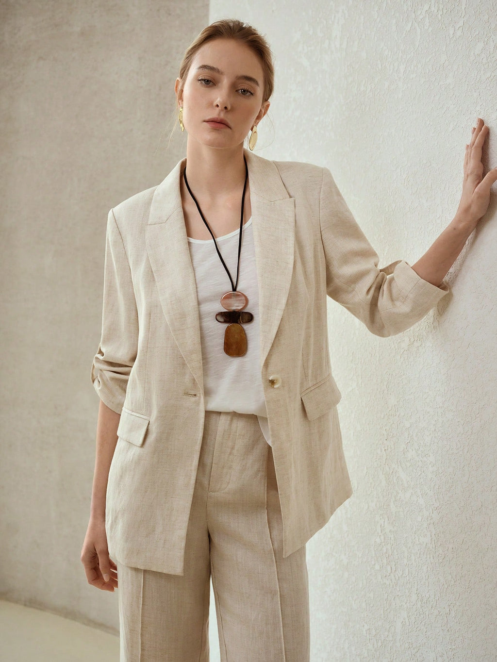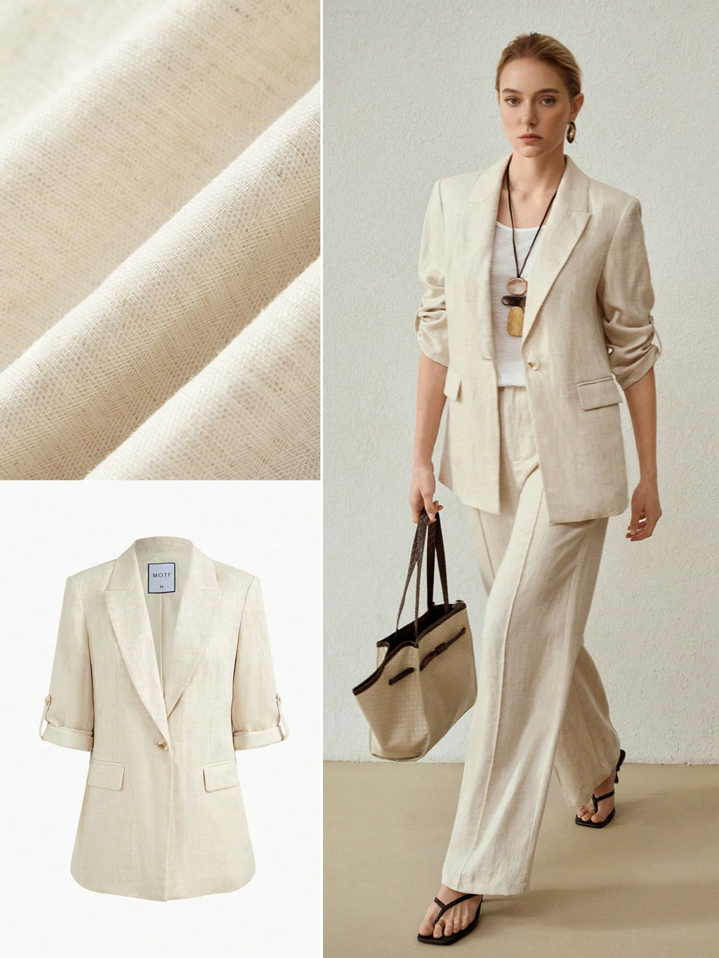 MIU PREMIUM LINEN BLEND SINGLE BUTTON BLAZER