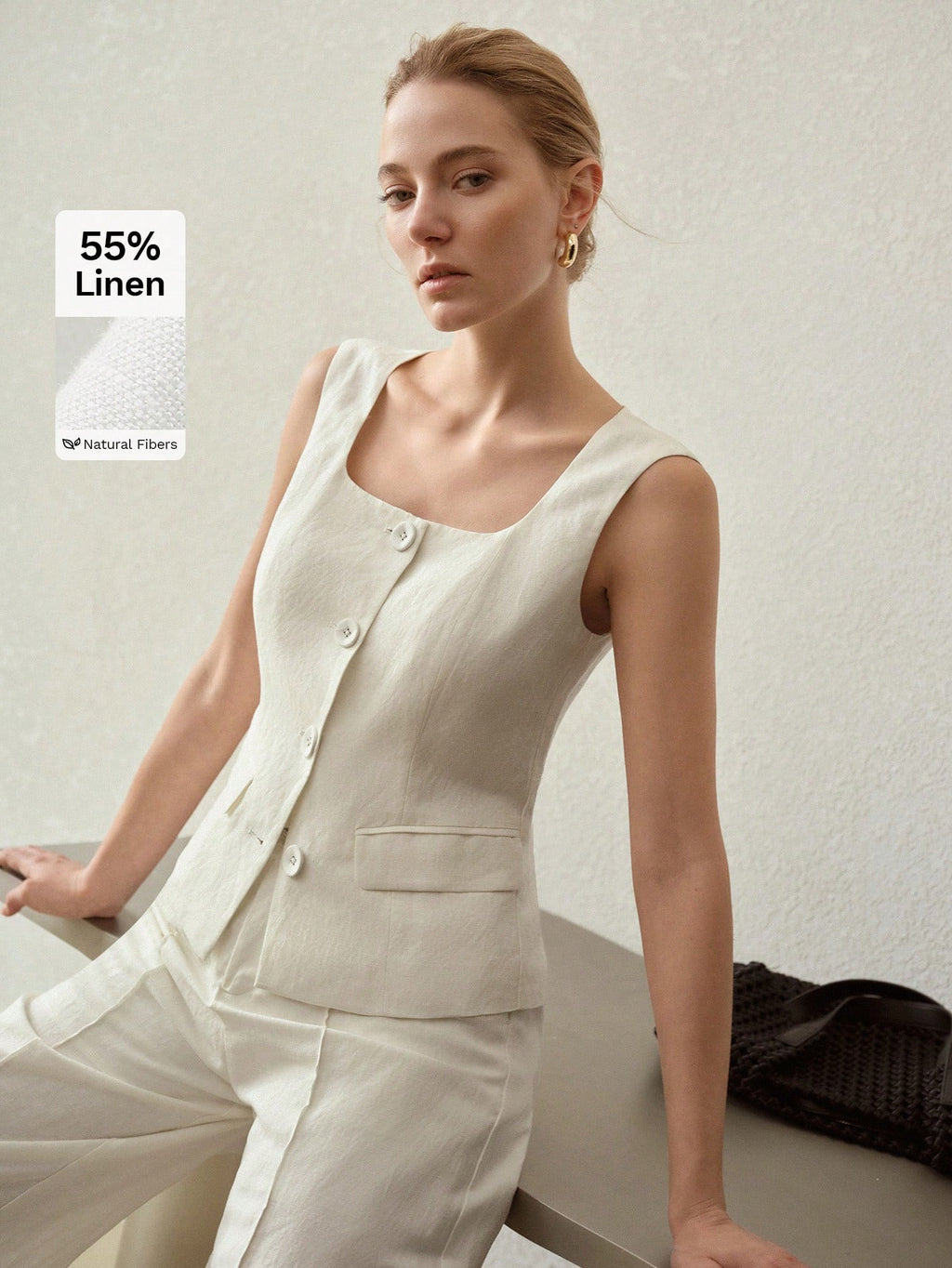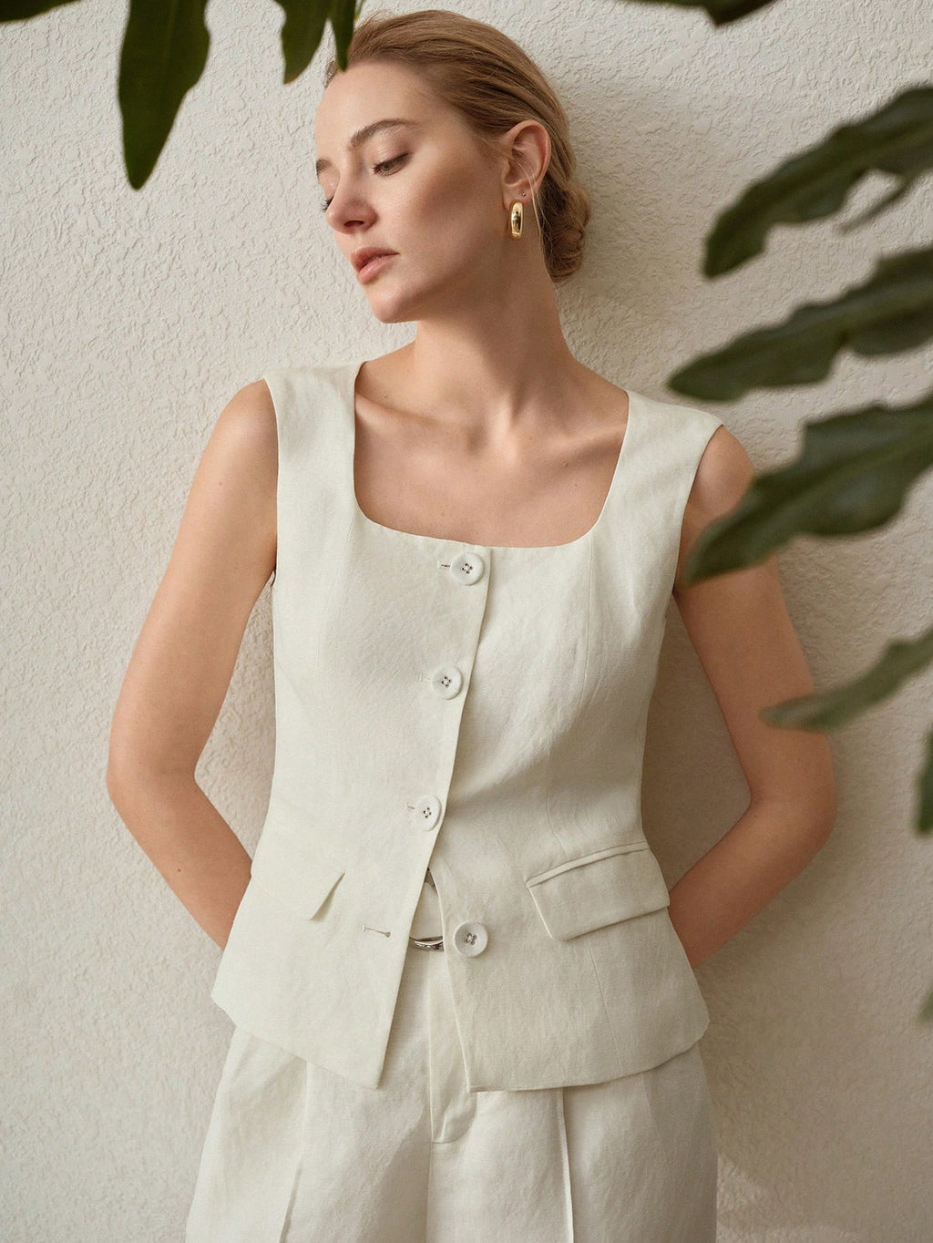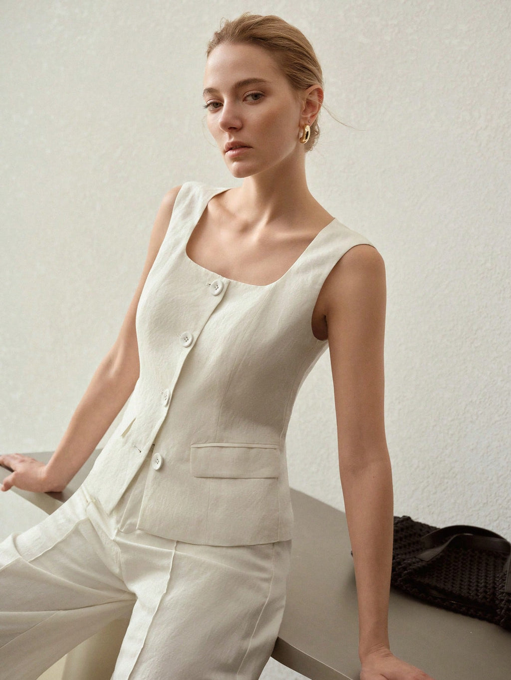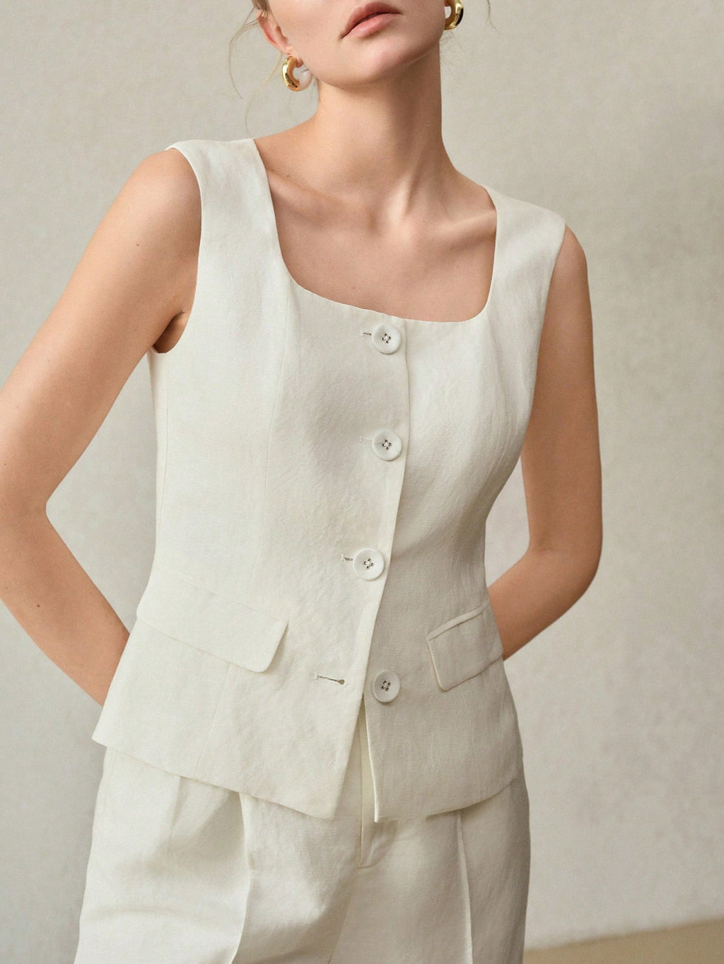 MIU PREMIUM LINEN BUTTON UP SLEEVELESS WAISTCOAT