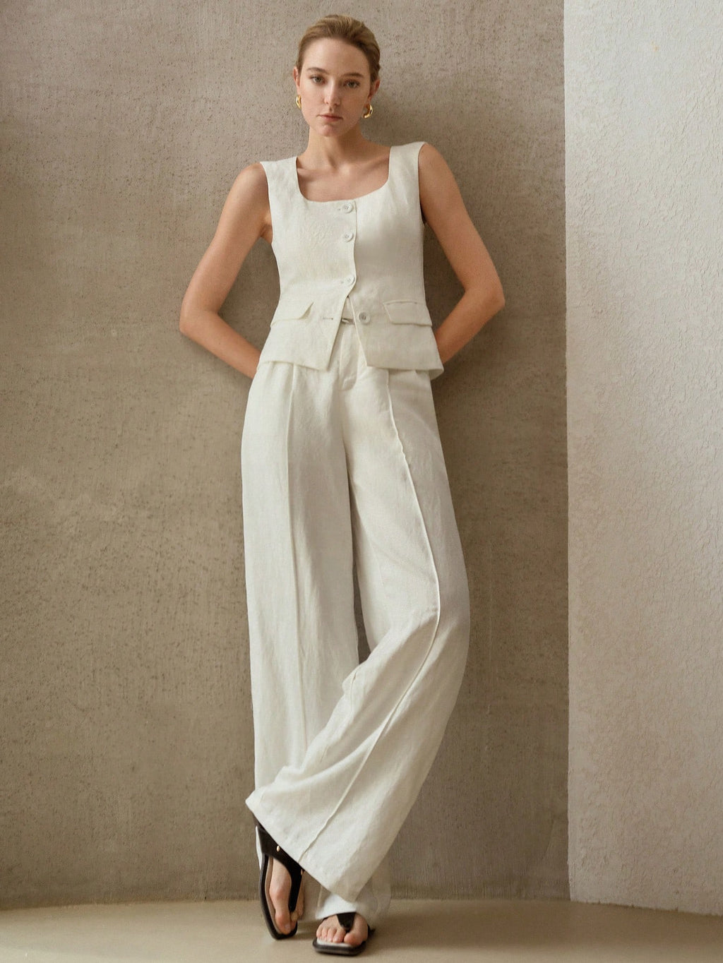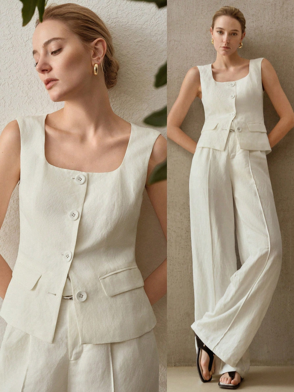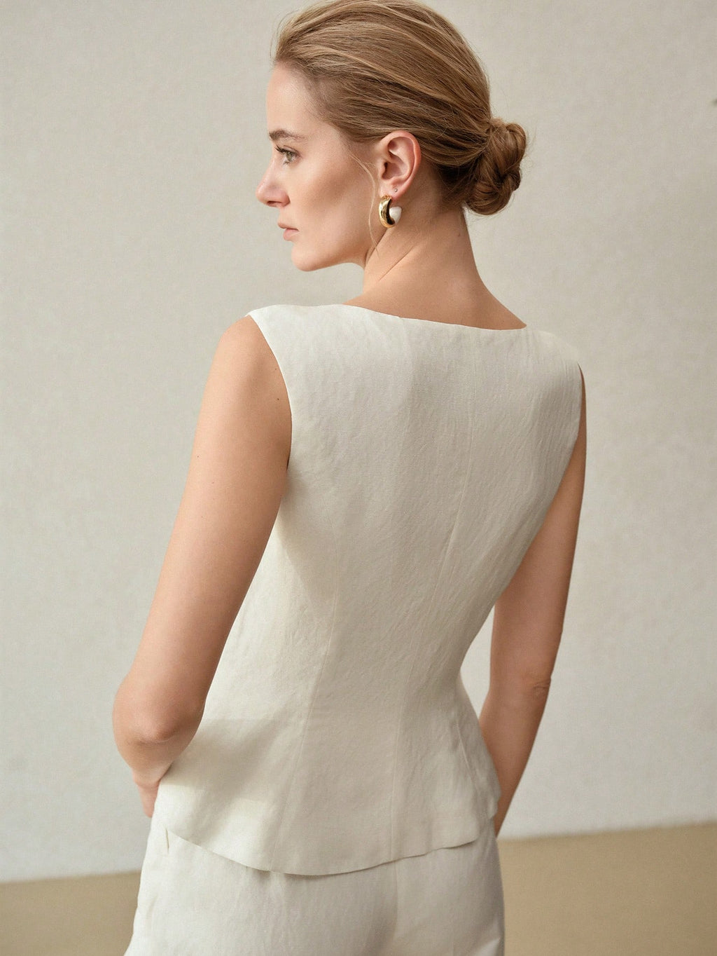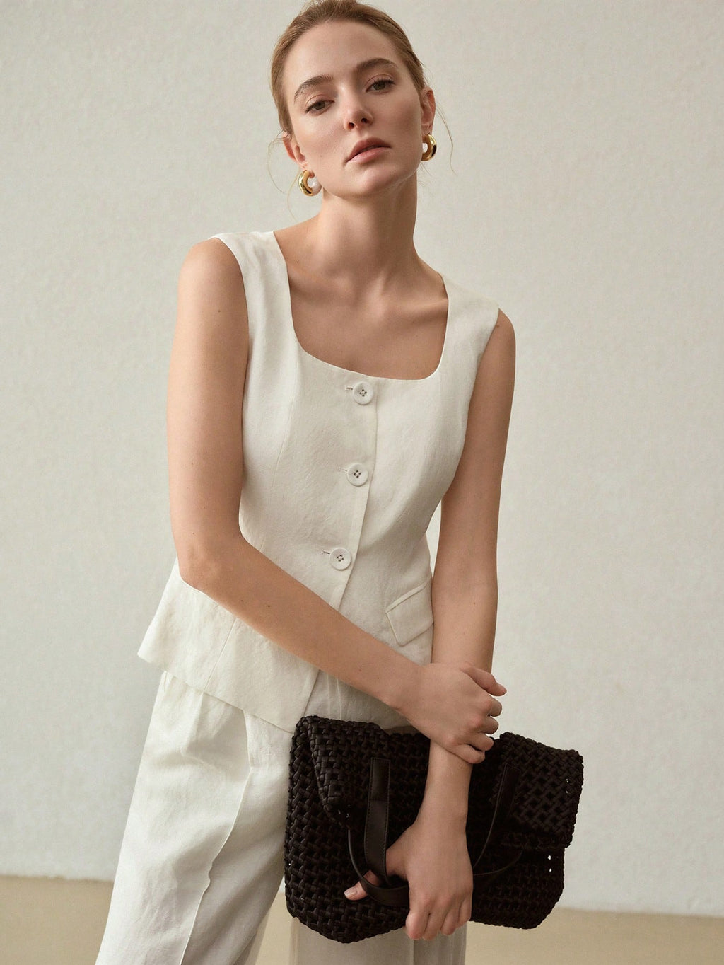 MIU PREMIUM LINEN BUTTON UP SLEEVELESS WAISTCOAT
