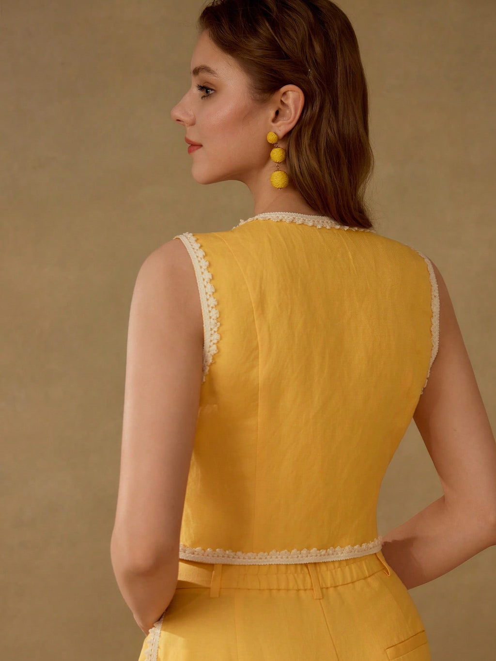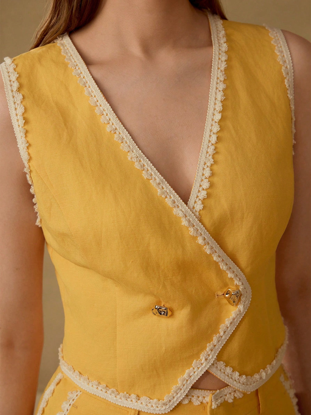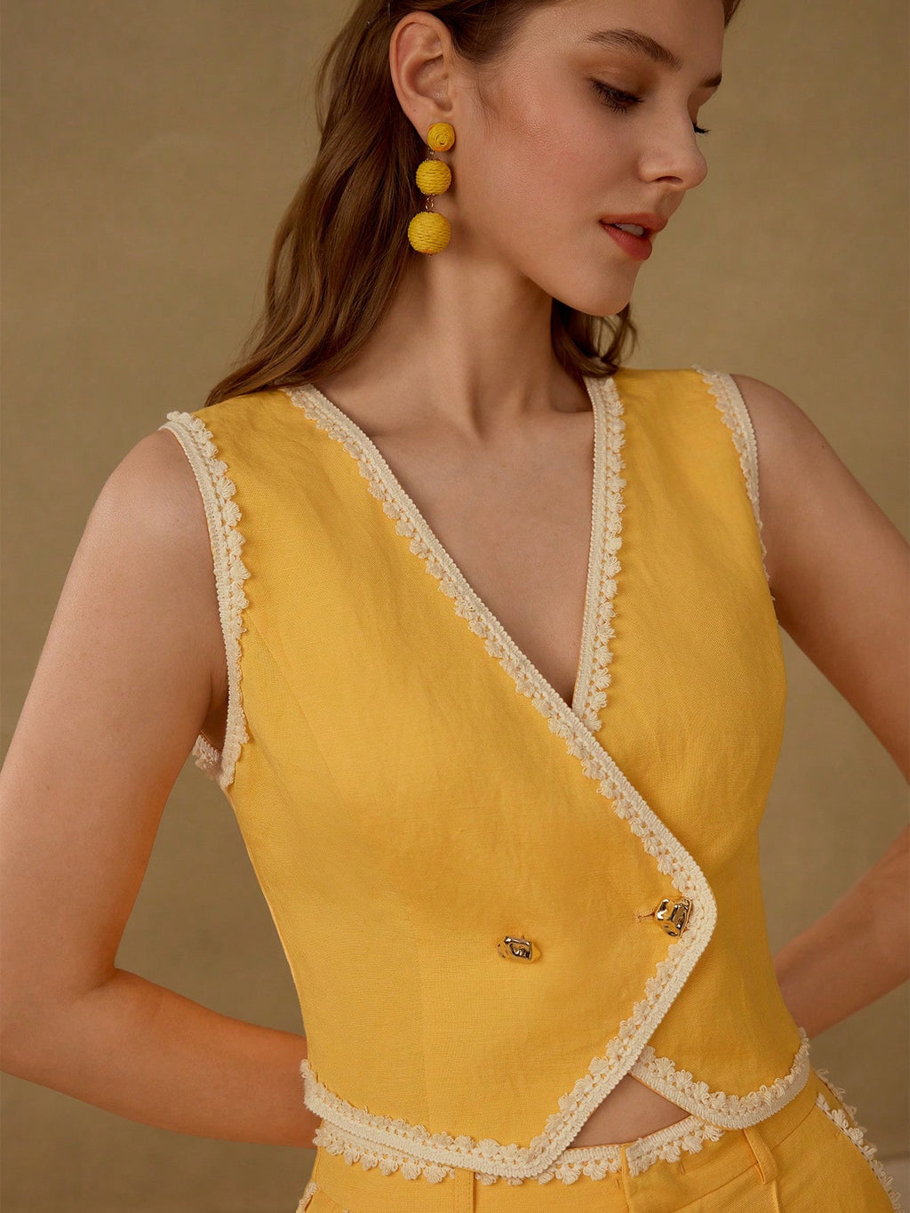 MIU PREMIUM LINEN CONTRAST LACE WAISTCOAT