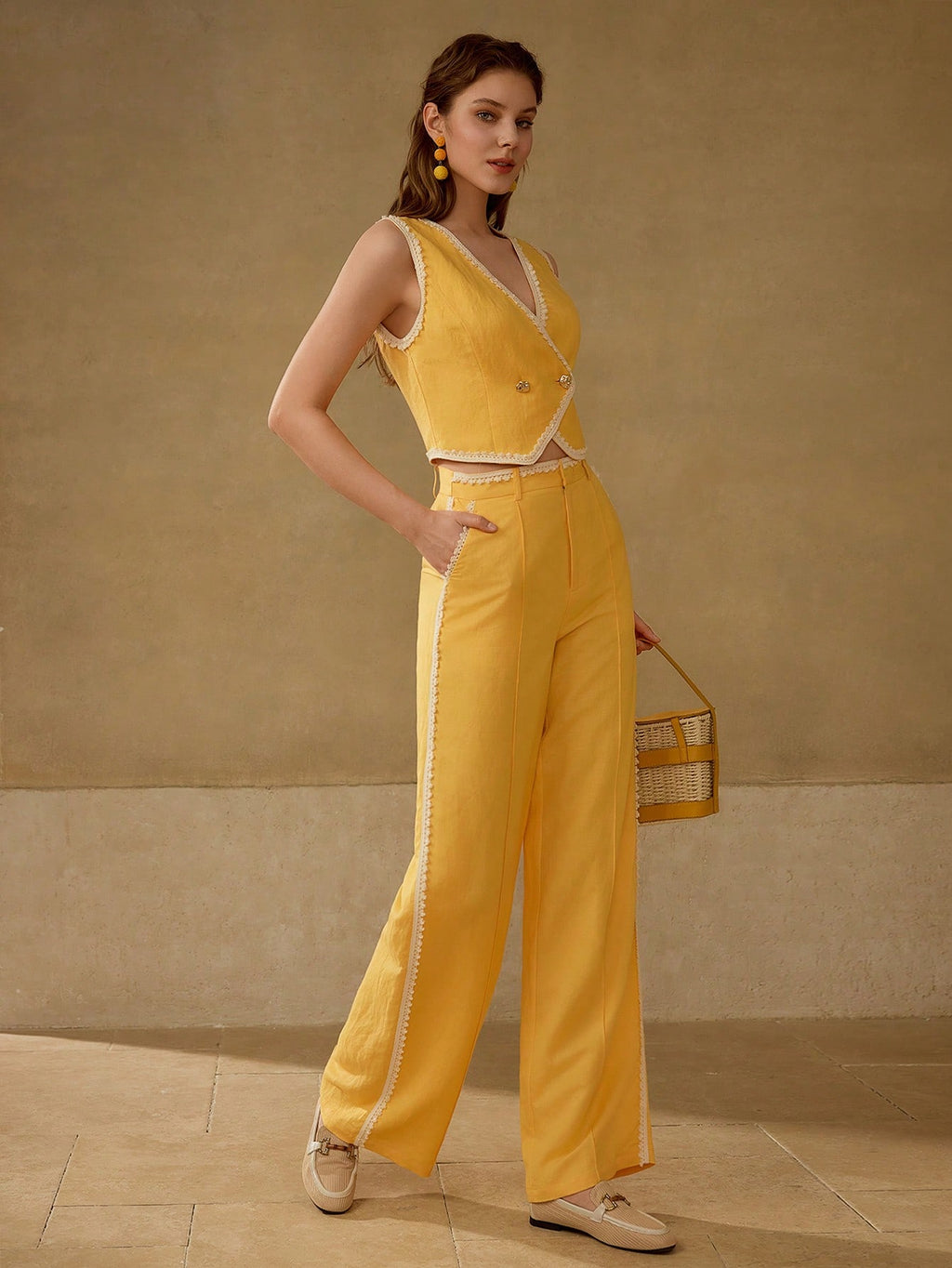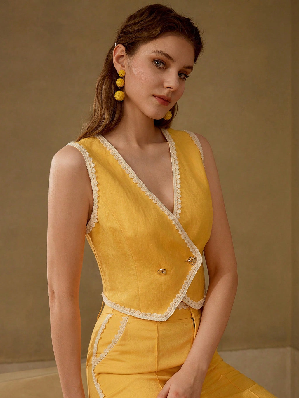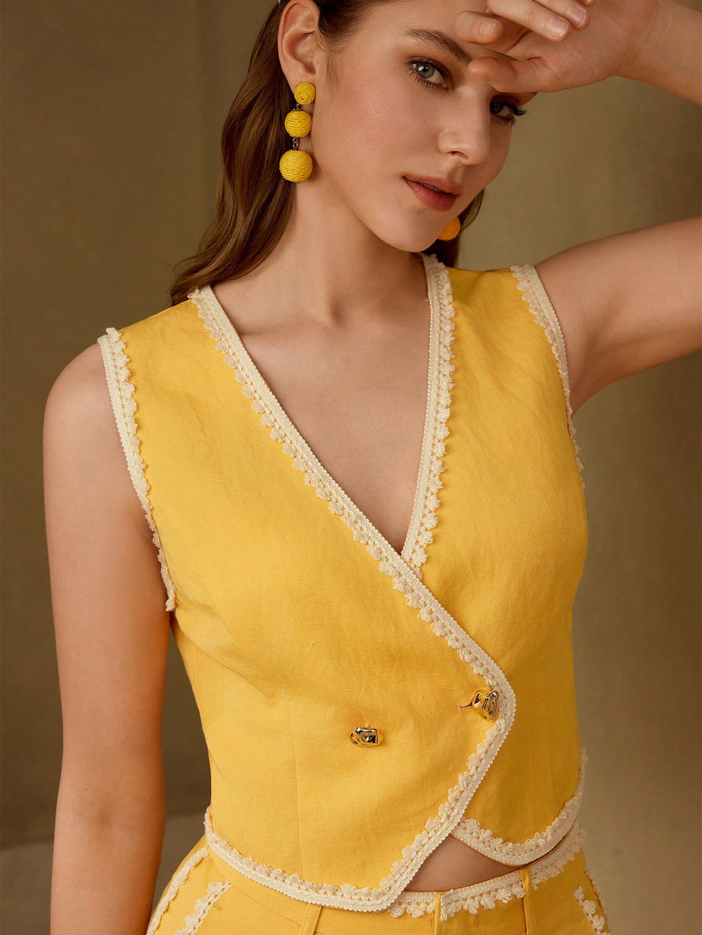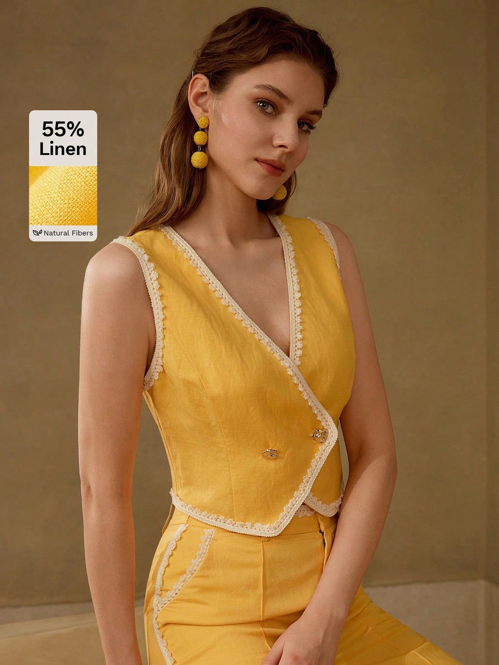 MIU PREMIUM LINEN CONTRAST LACE WAISTCOAT