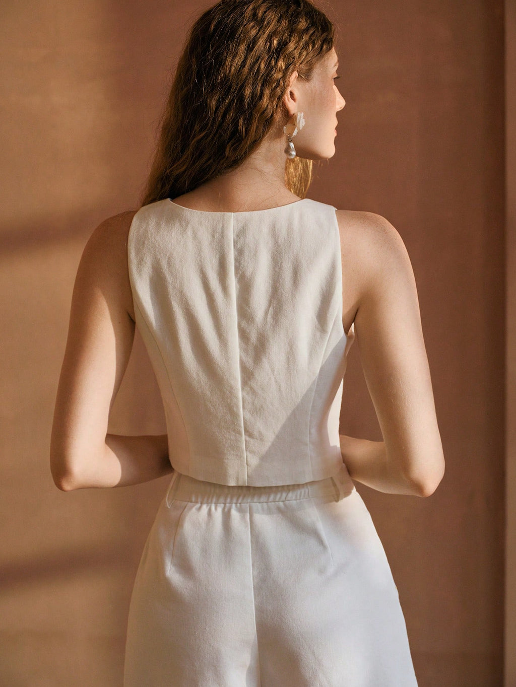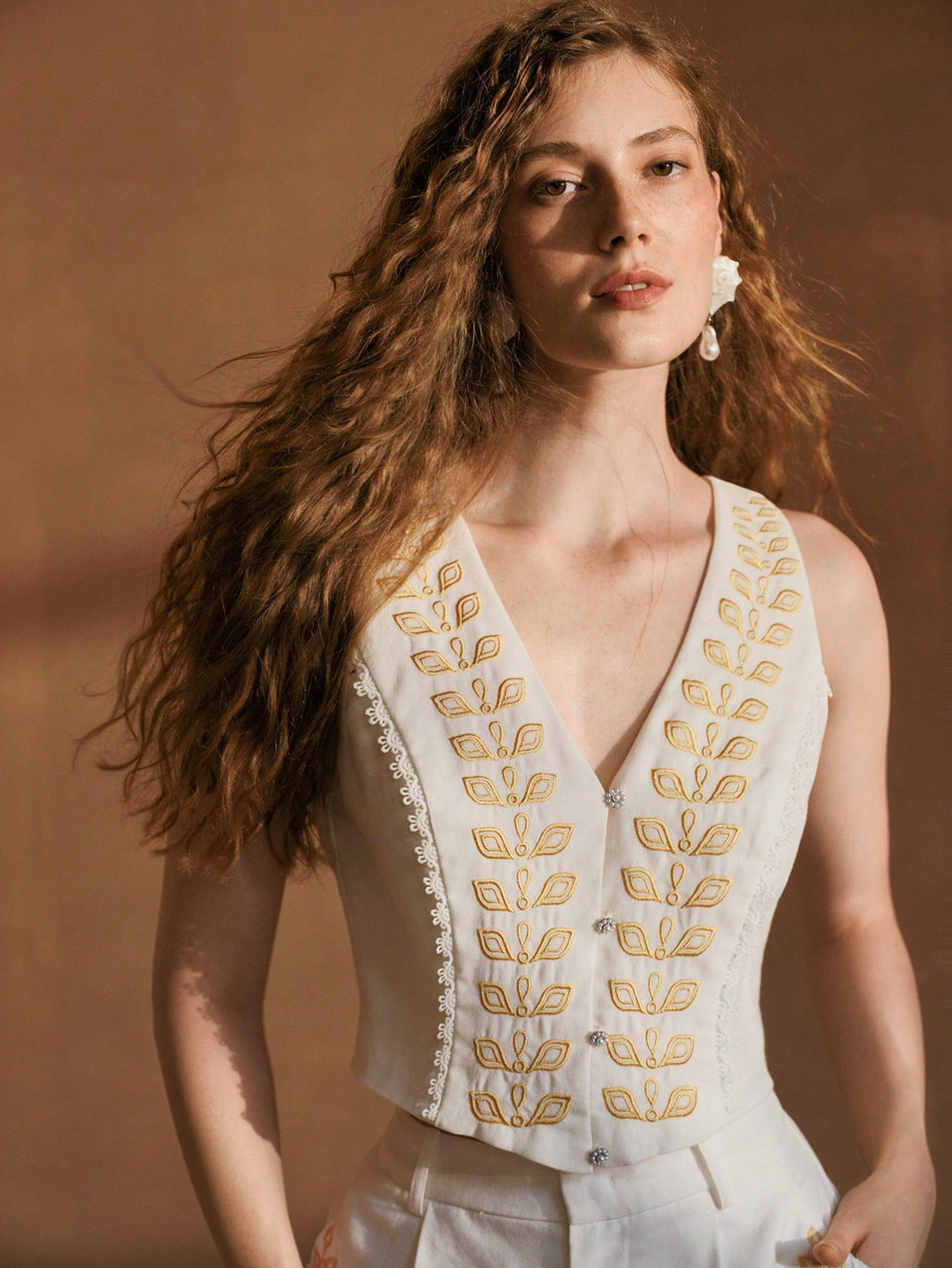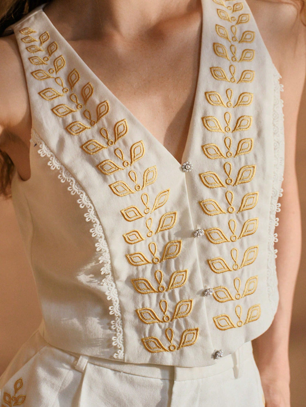 MIU PREMIUM LINEN EMBROIDERY WAISTCOAT