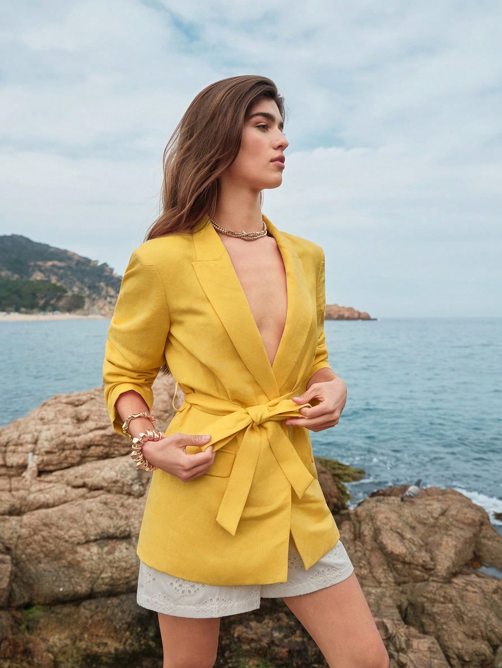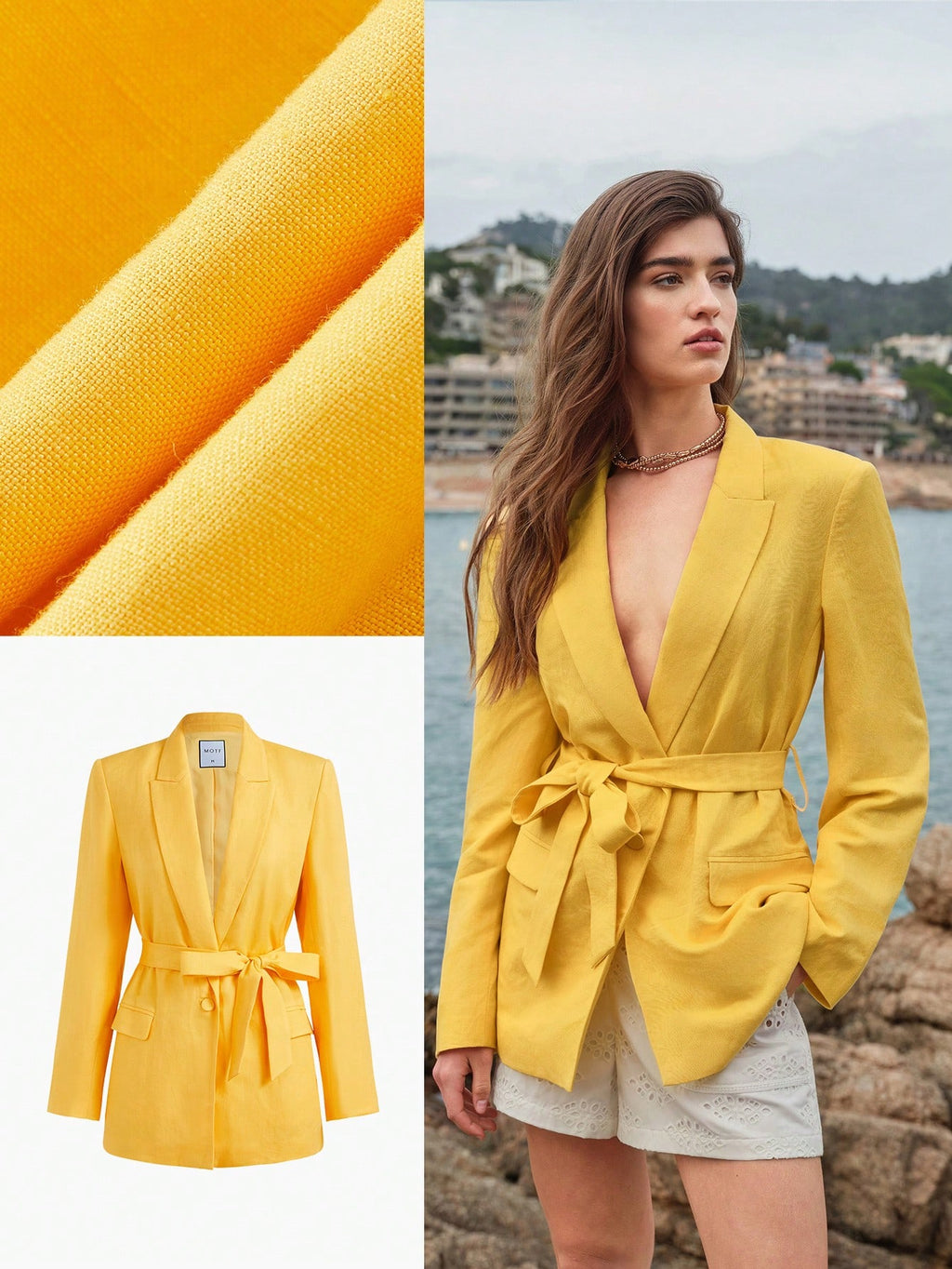 MIU PREMIUM LINEN STRUCTURED LIGHTWEIGHT BLAZER