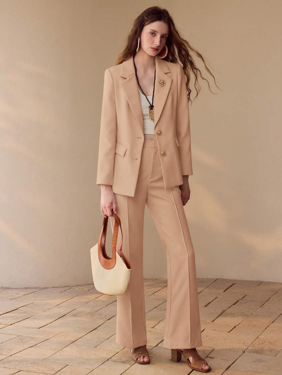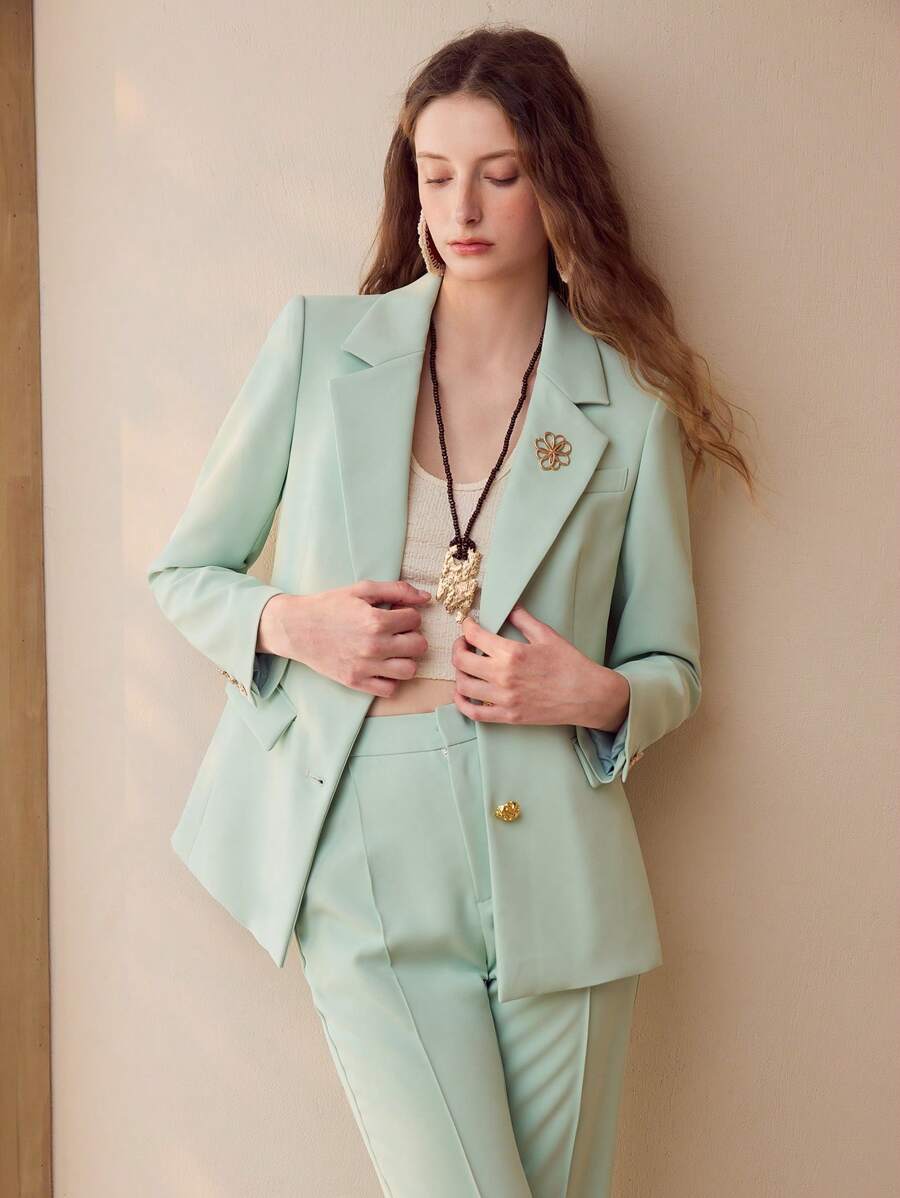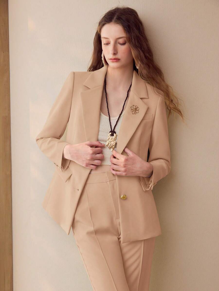 MIU PREMIUM METAL FLORAL DECOR STRUCTURED BLAZER