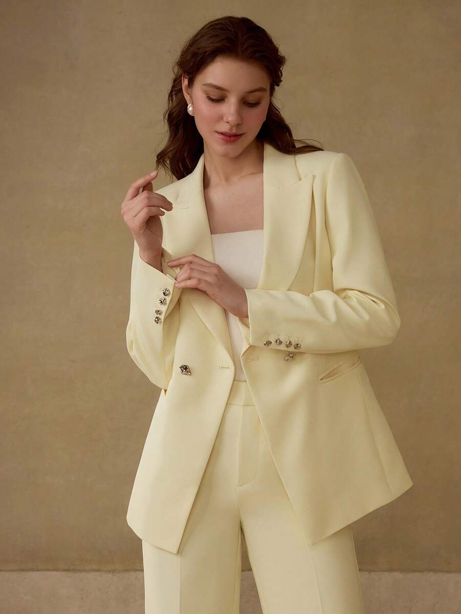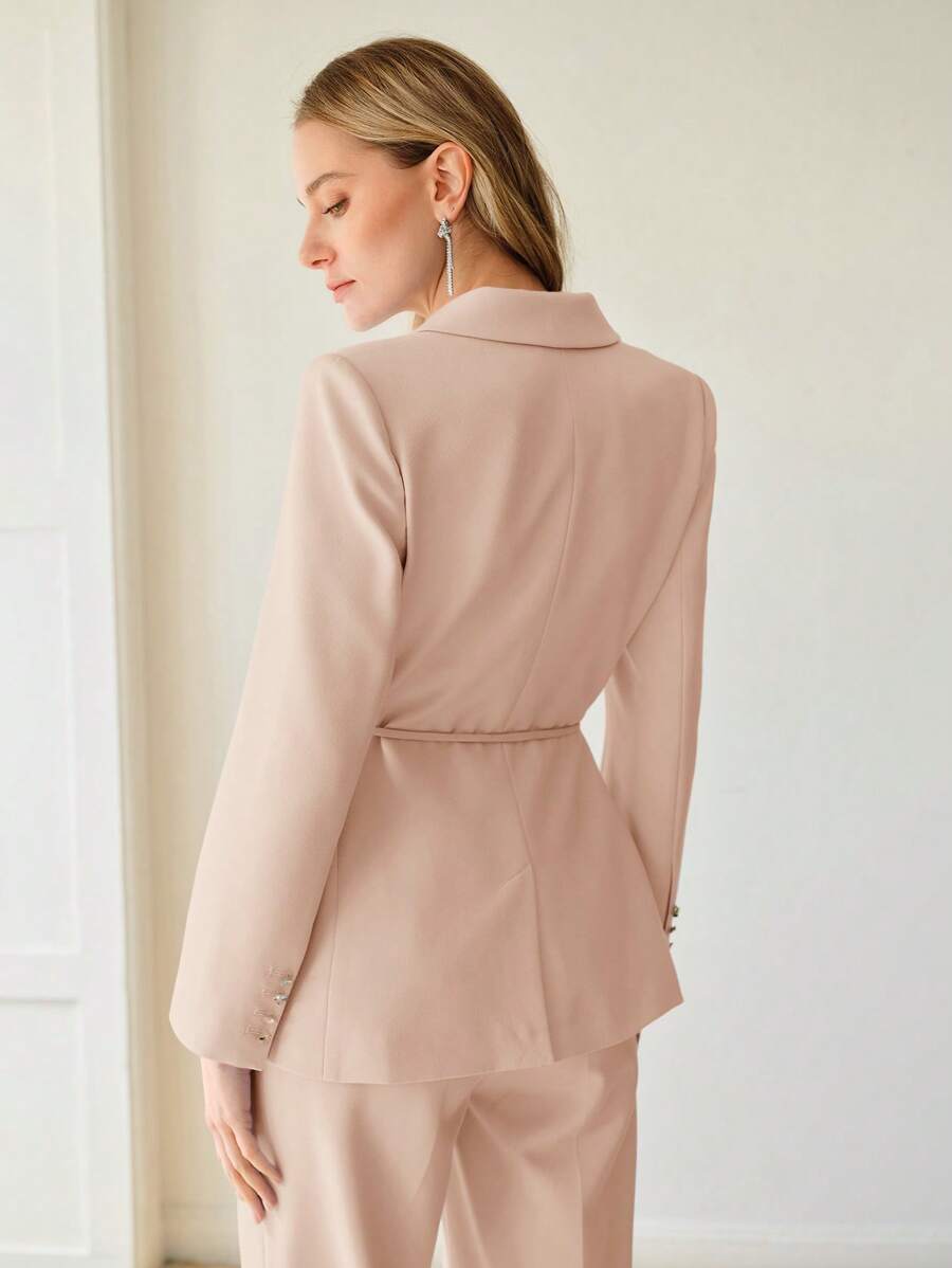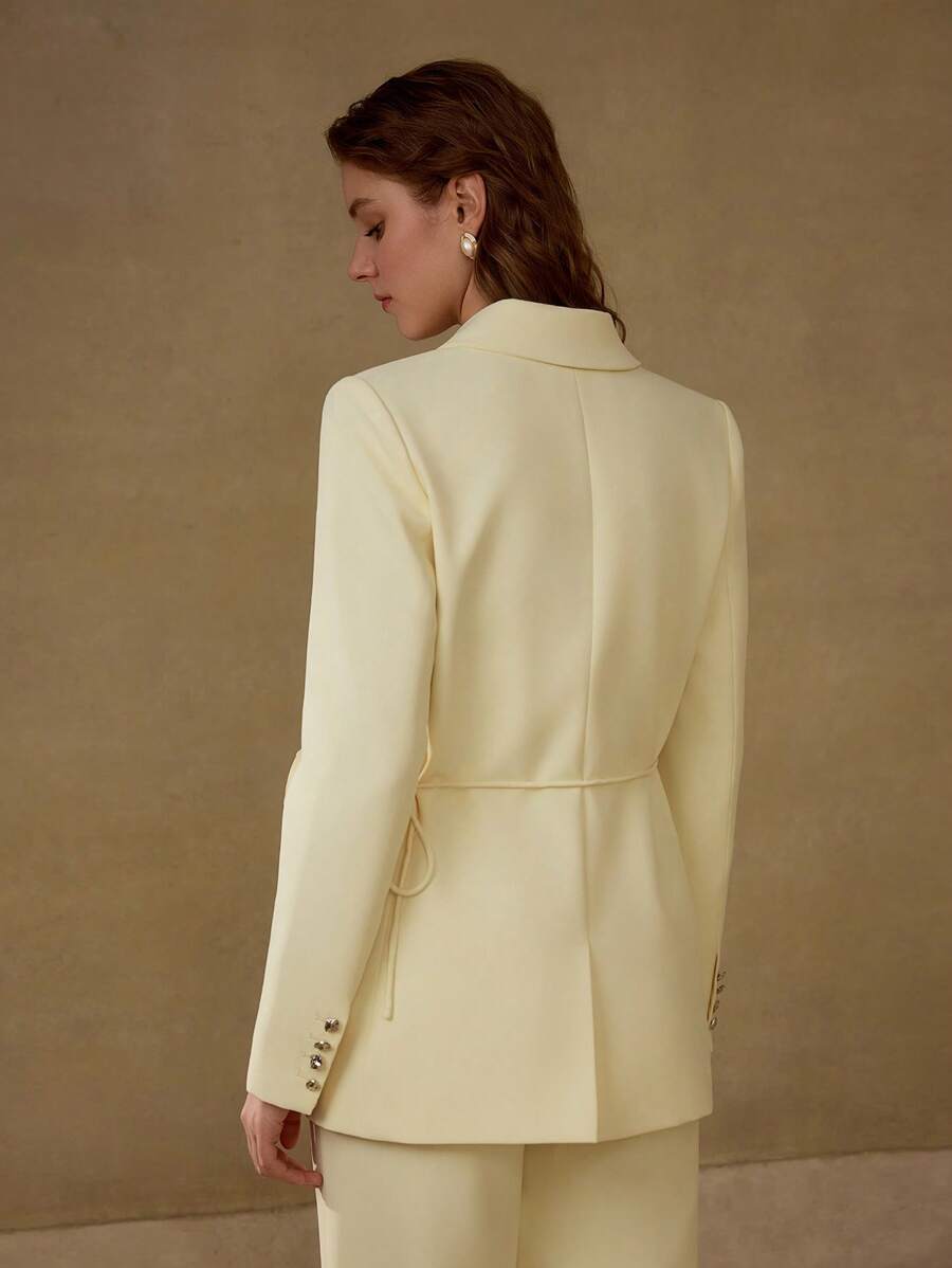 MIU PREMIUM PEAK LAPEL DOUBLE BREASTED BLAZER, BELTED BLAZER,SPRING/SUMMER
