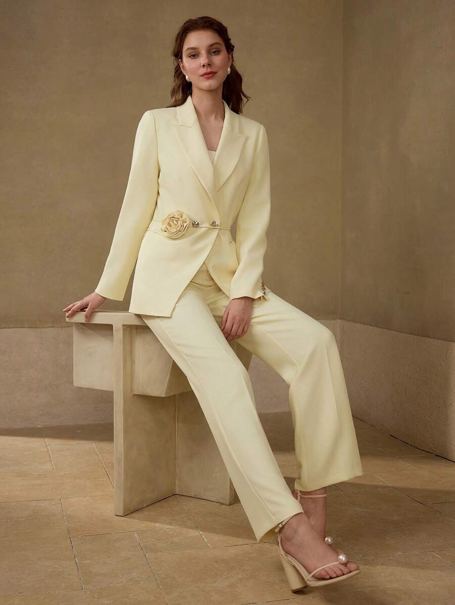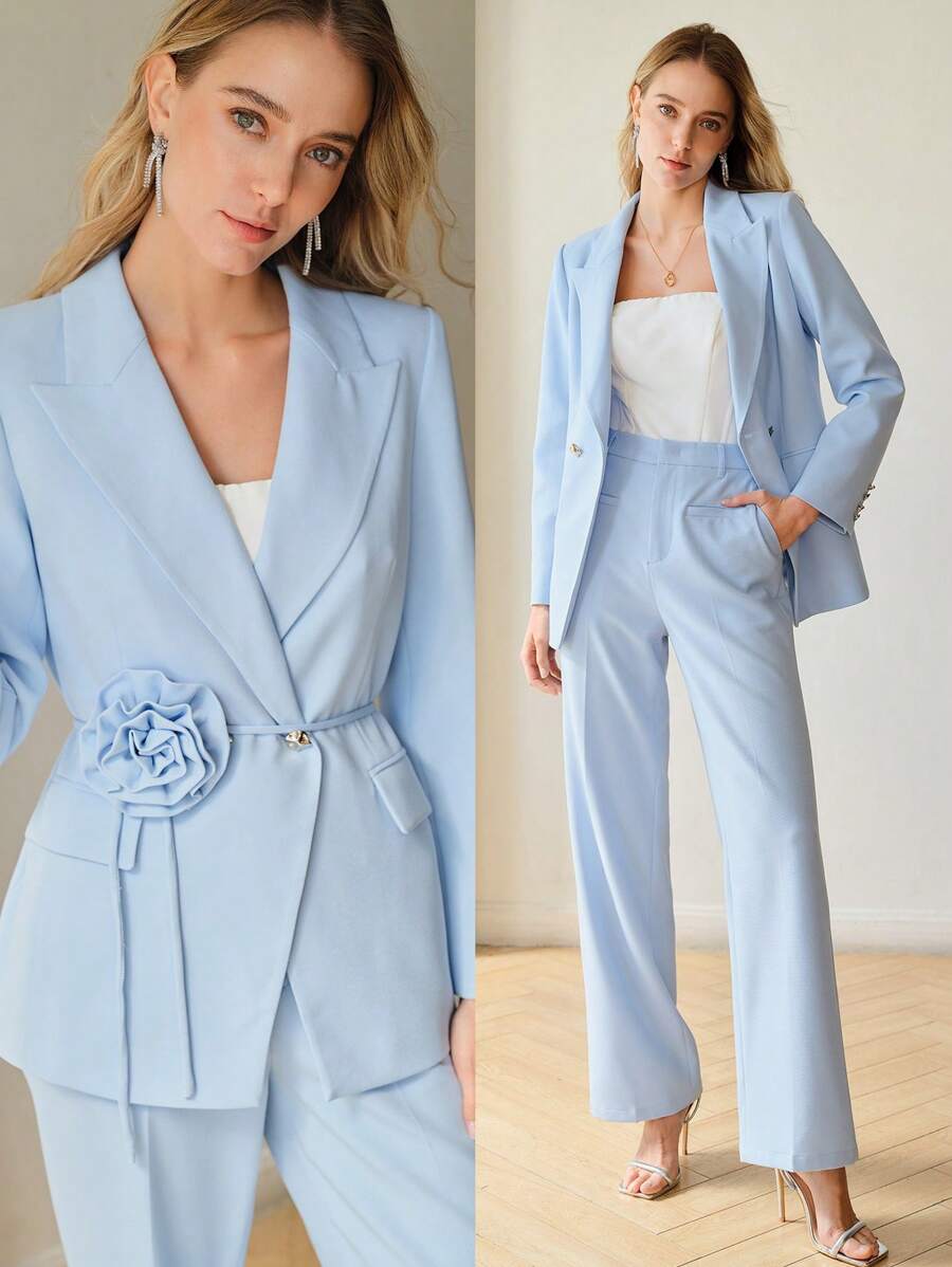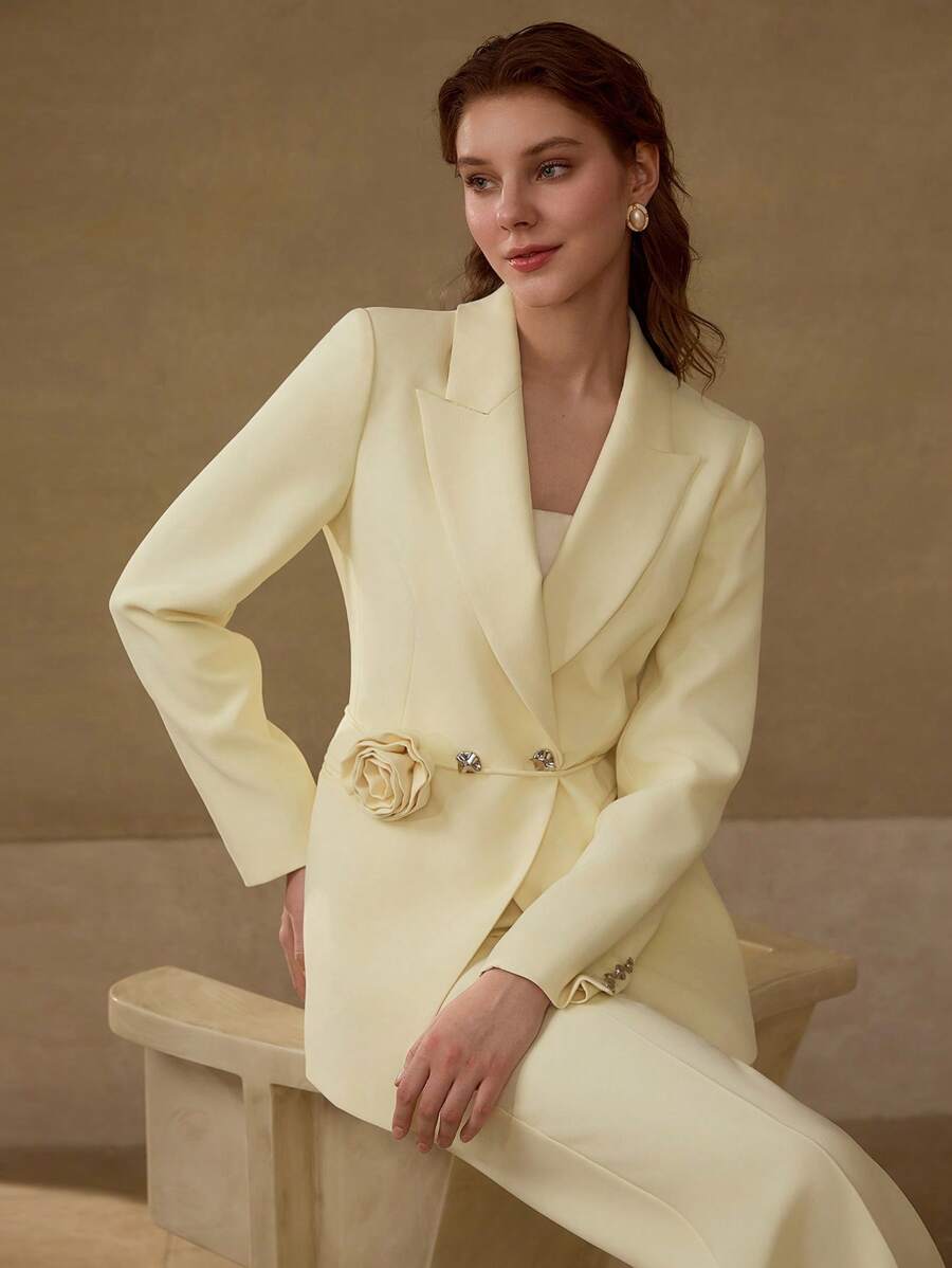 MIU PREMIUM PEAK LAPEL DOUBLE BREASTED BLAZER, BELTED BLAZER,SPRING/SUMMER