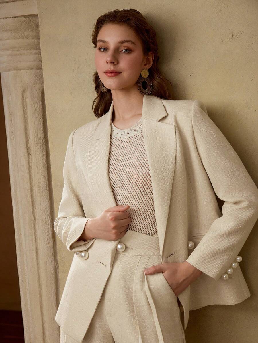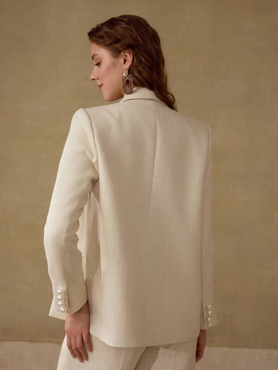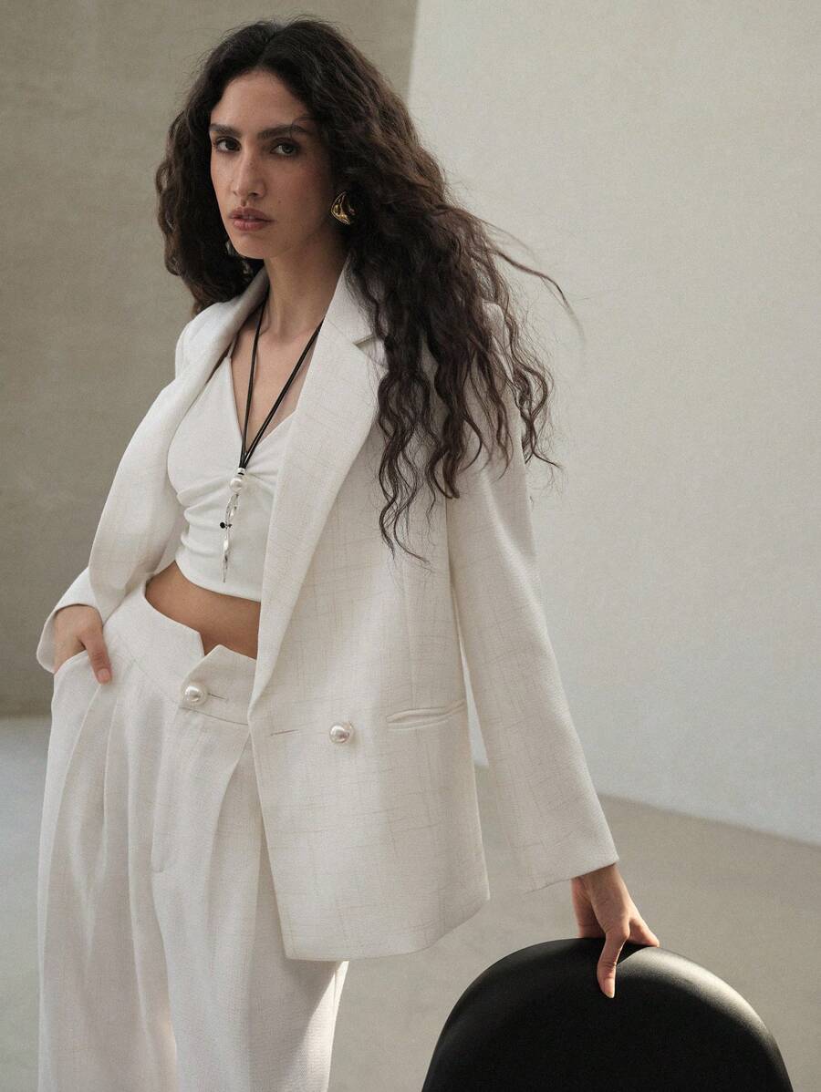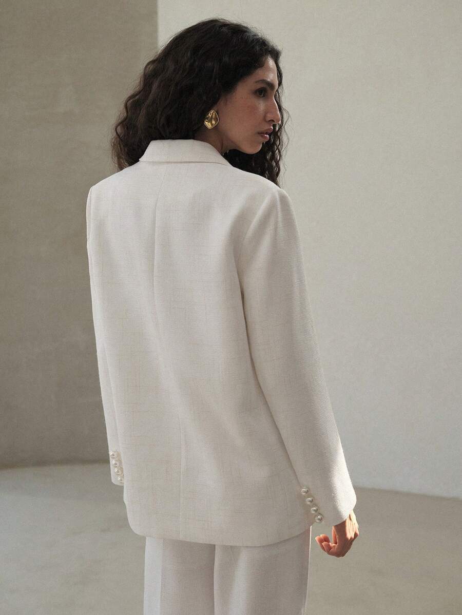MIU PREMIUM PLAID DOUBLE BREASTED STRUCTURED BLAZER, PEARL BUTTON, OVERSIZED BLAZER, WORK,SPRING SUMMER