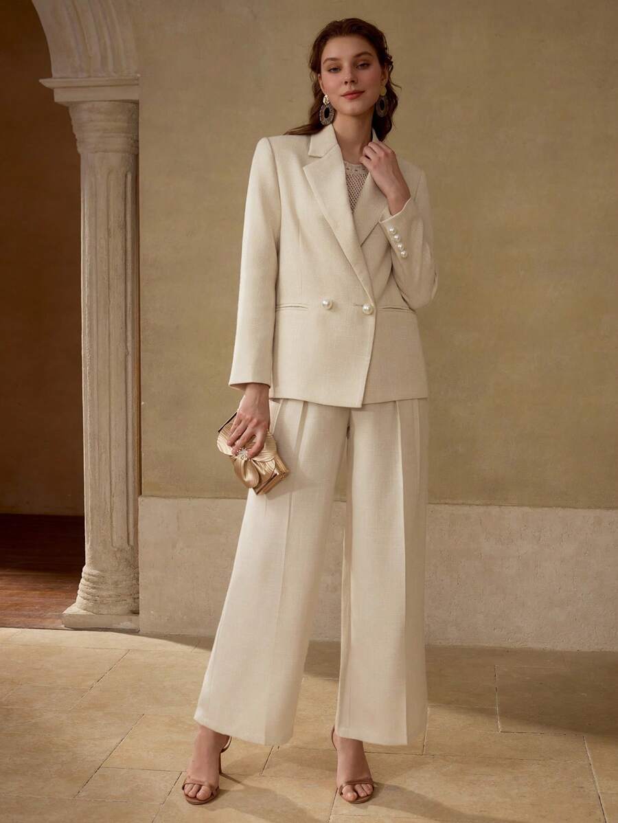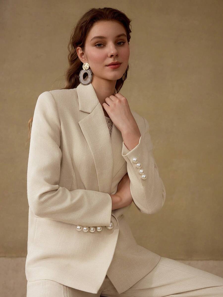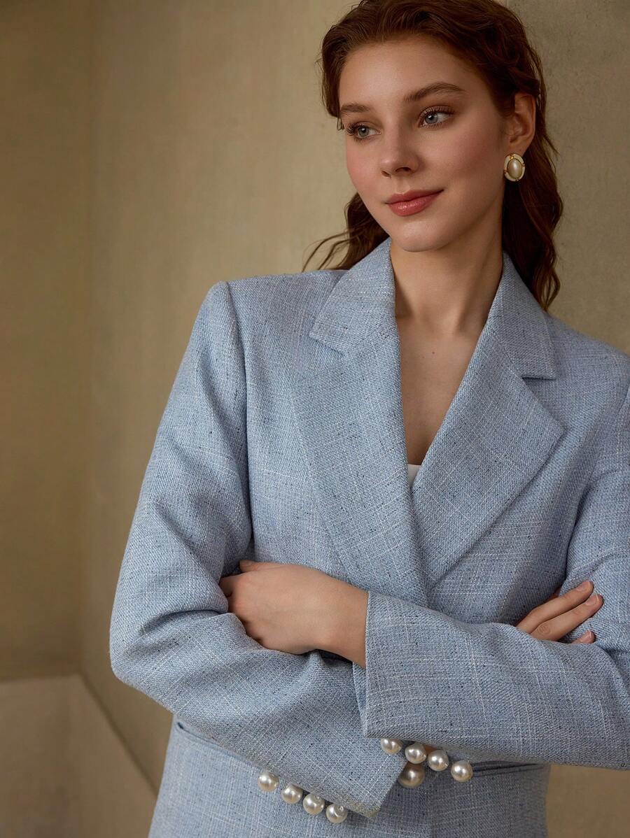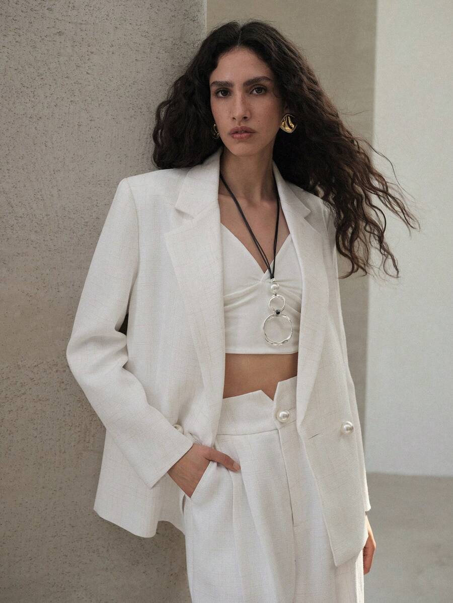 MIU PREMIUM PLAID DOUBLE BREASTED STRUCTURED BLAZER, PEARL BUTTON, OVERSIZED BLAZER, WORK,SPRING SUMMER