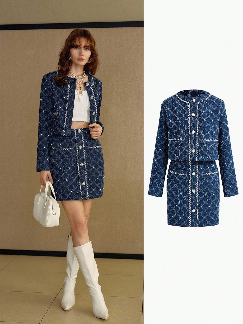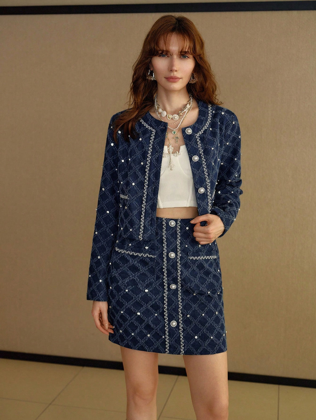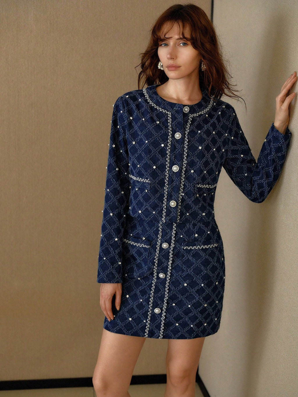 MIU AZRA Elegantna mini suknja s perlama u crvenom tweedu za žene