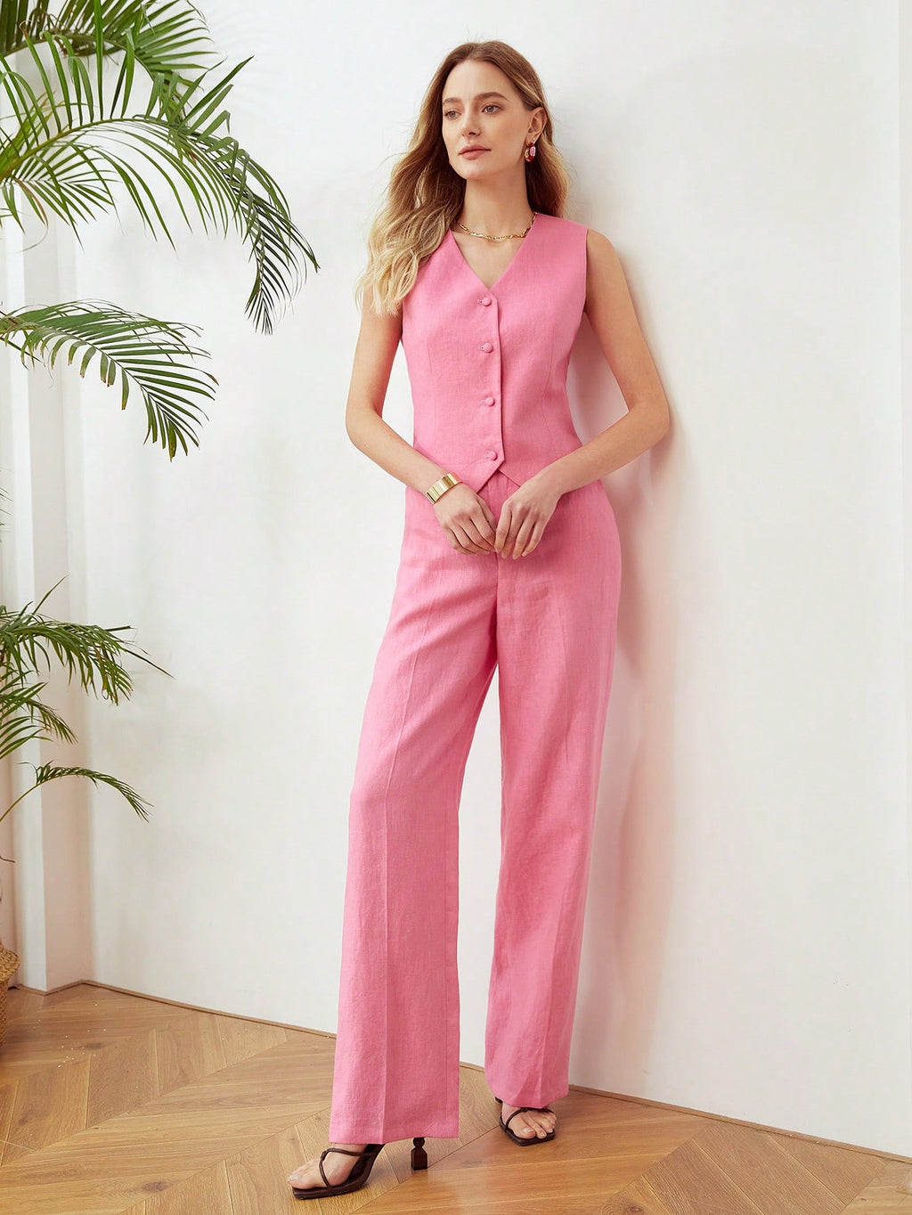 MIU PREMIUM PURE LINEN WAISTCOAT,SUMMER OUTFITS