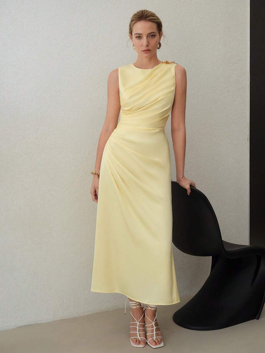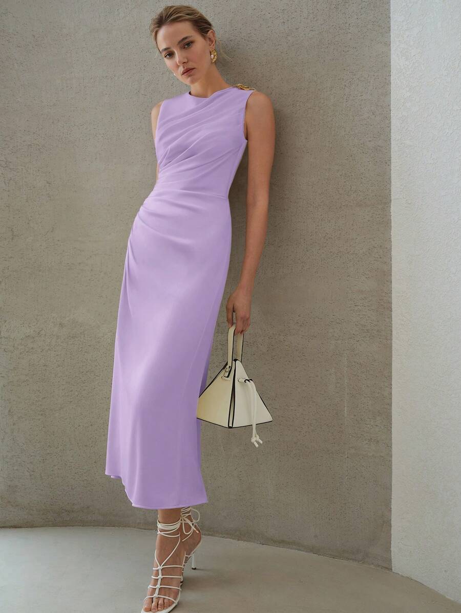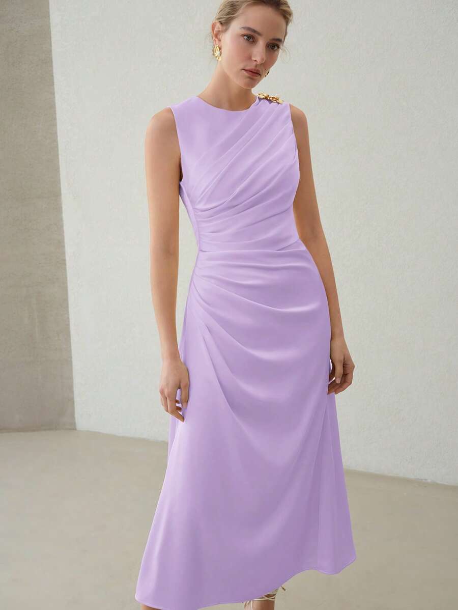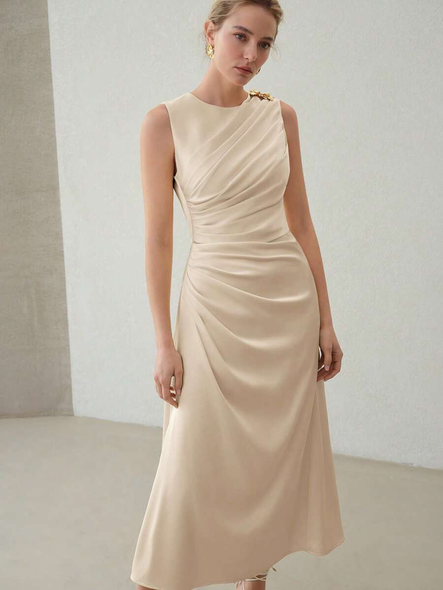 MIU PREMIUM RUCHED METAL BUTTERFLY MIDI DRESS