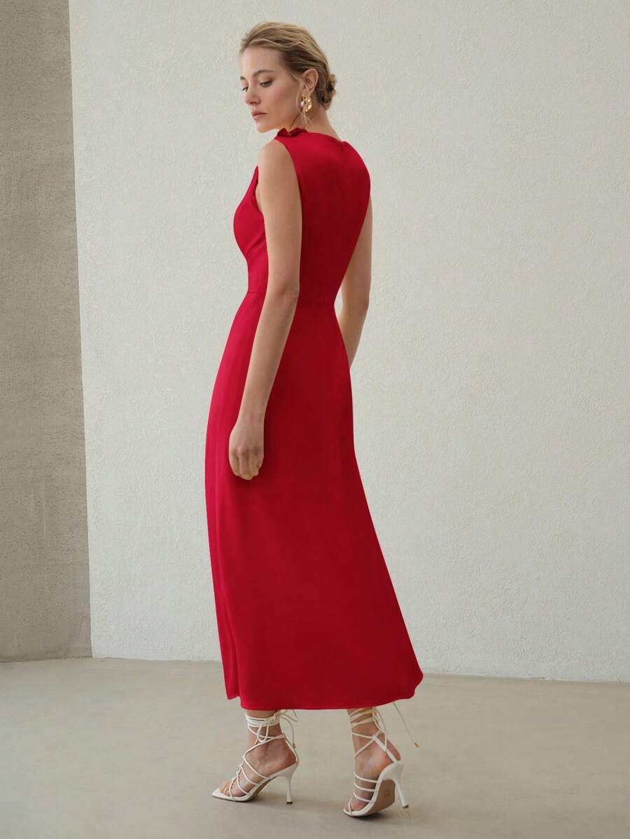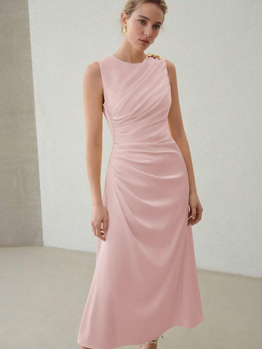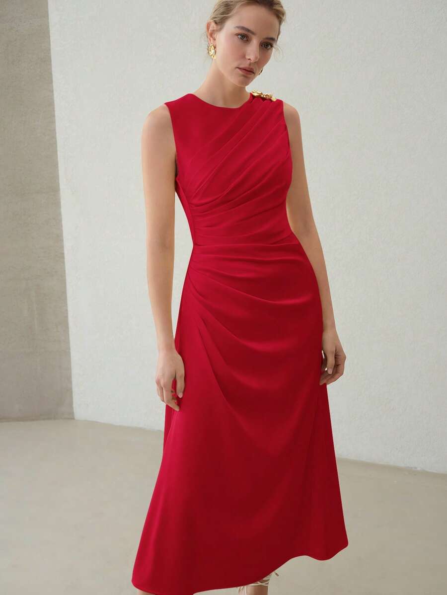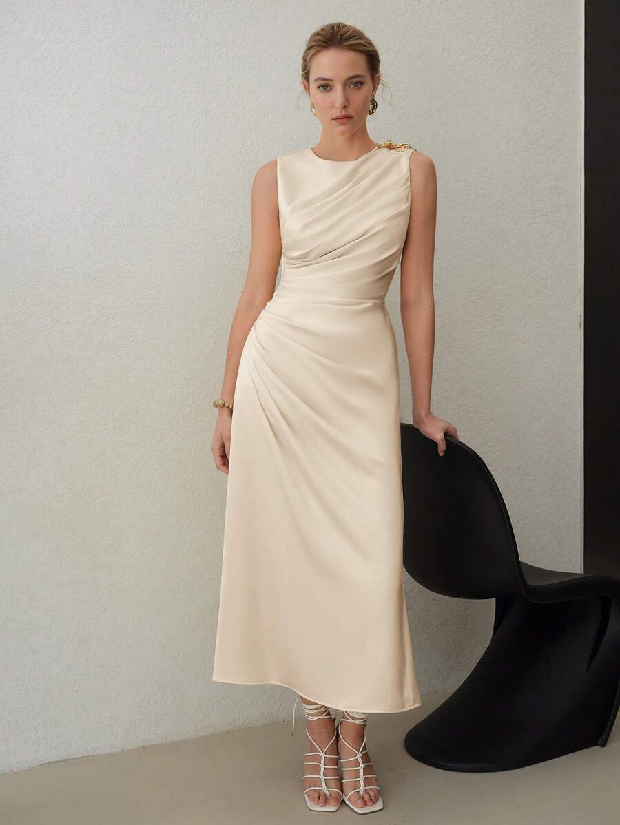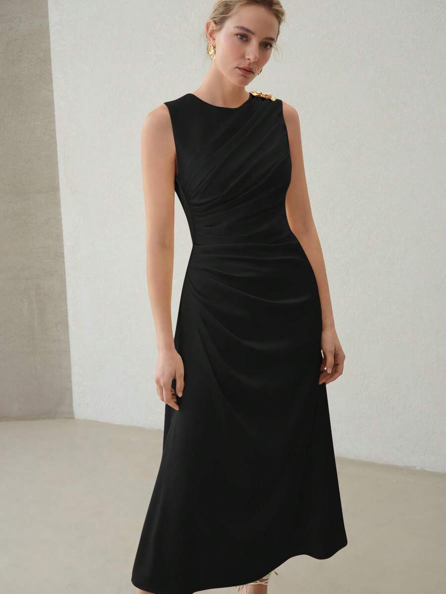 MIU PREMIUM RUCHED METAL BUTTERFLY MIDI DRESS