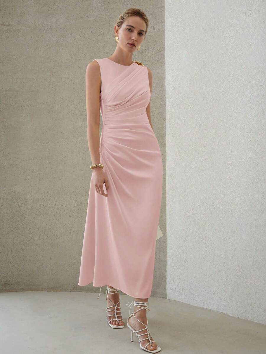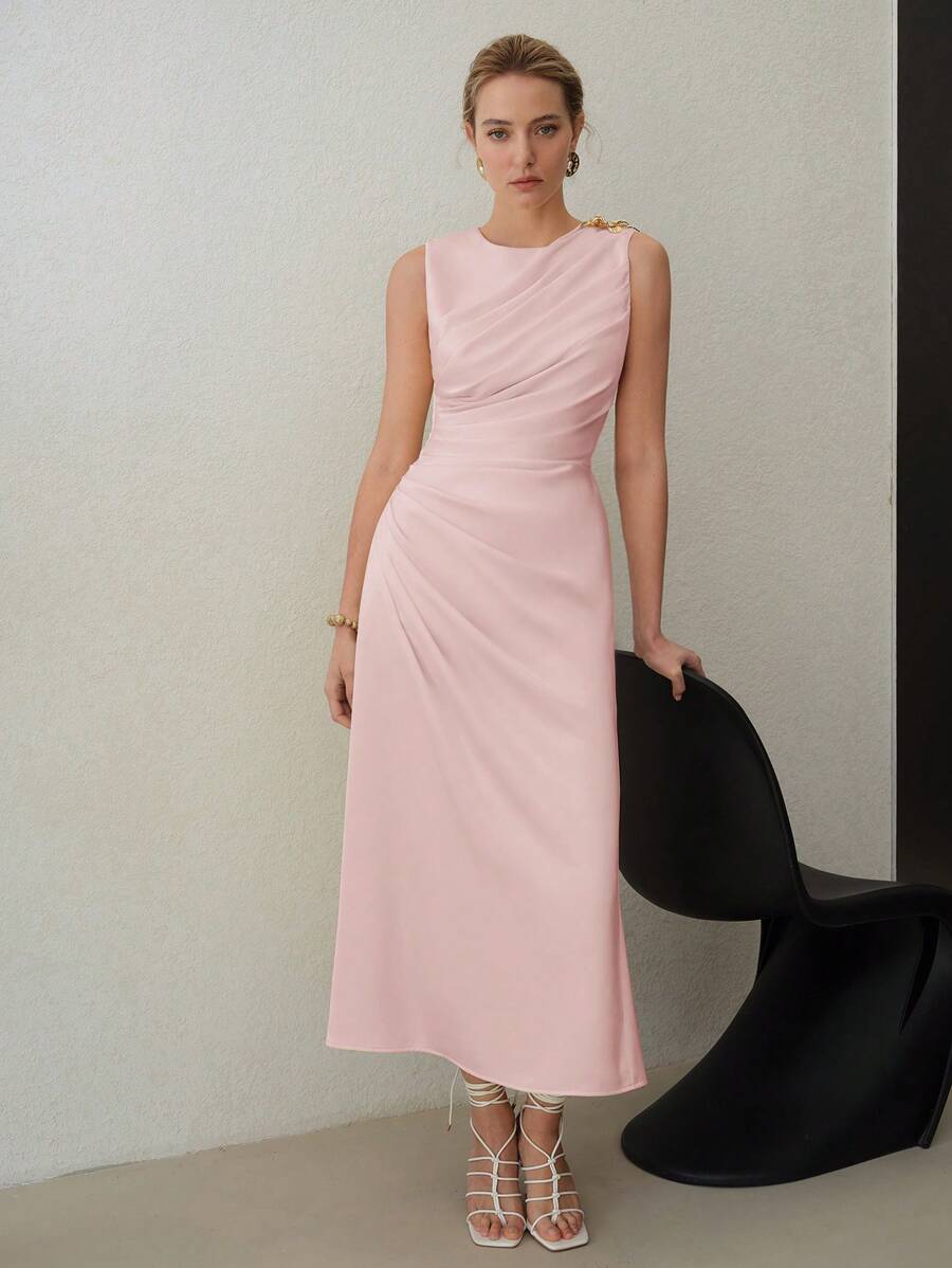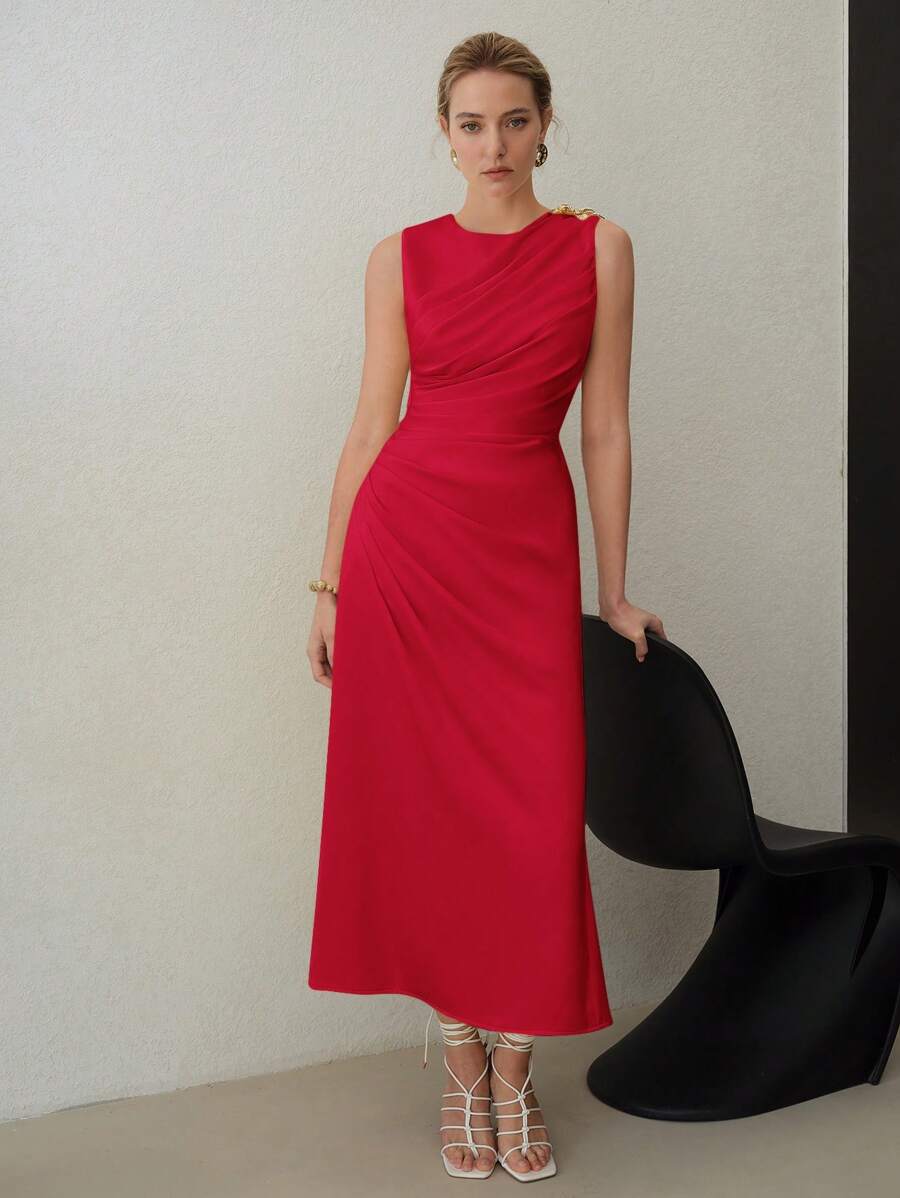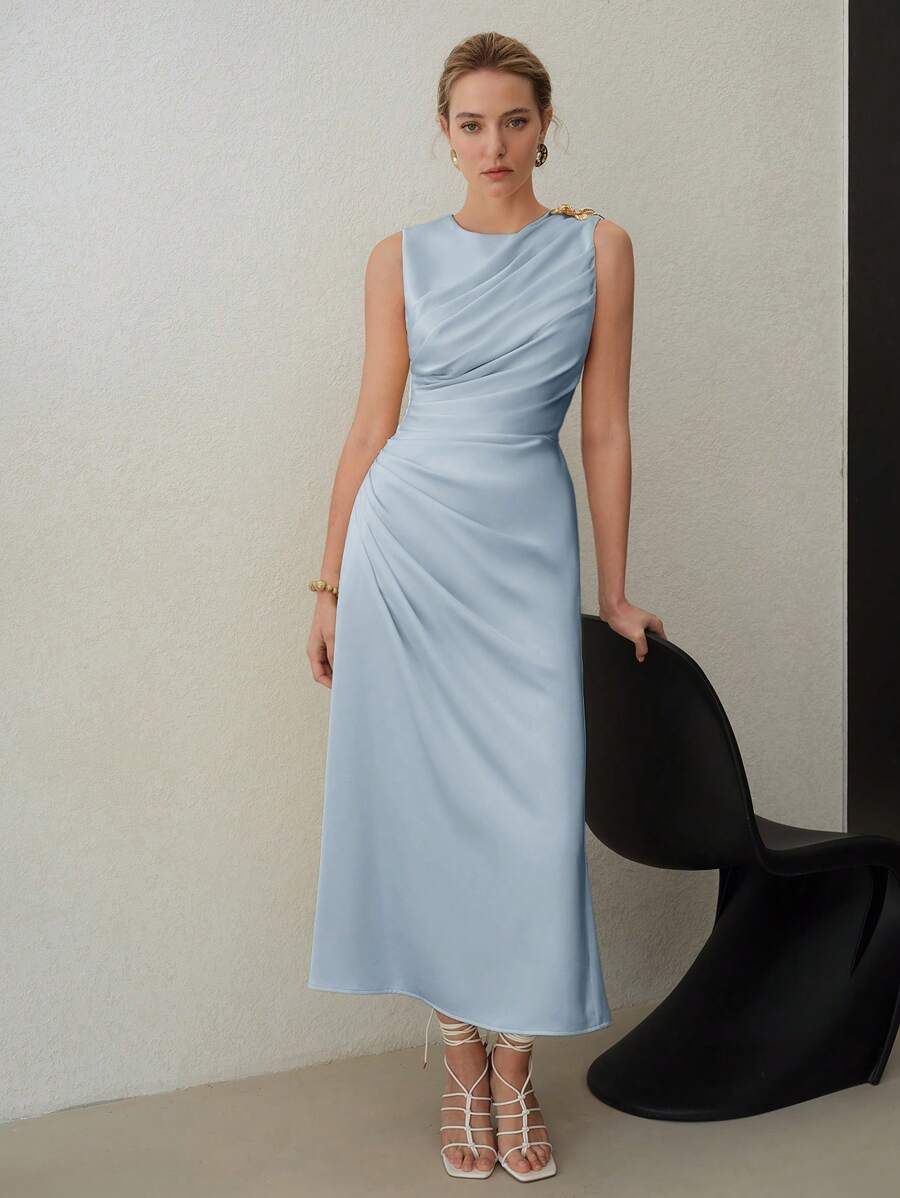 MIU PREMIUM RUCHED METAL BUTTERFLY MIDI DRESS