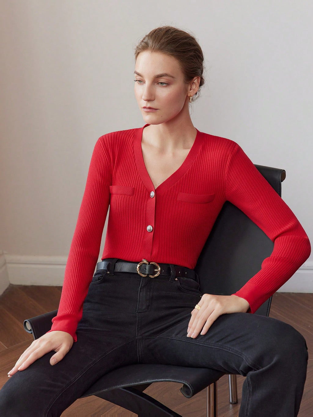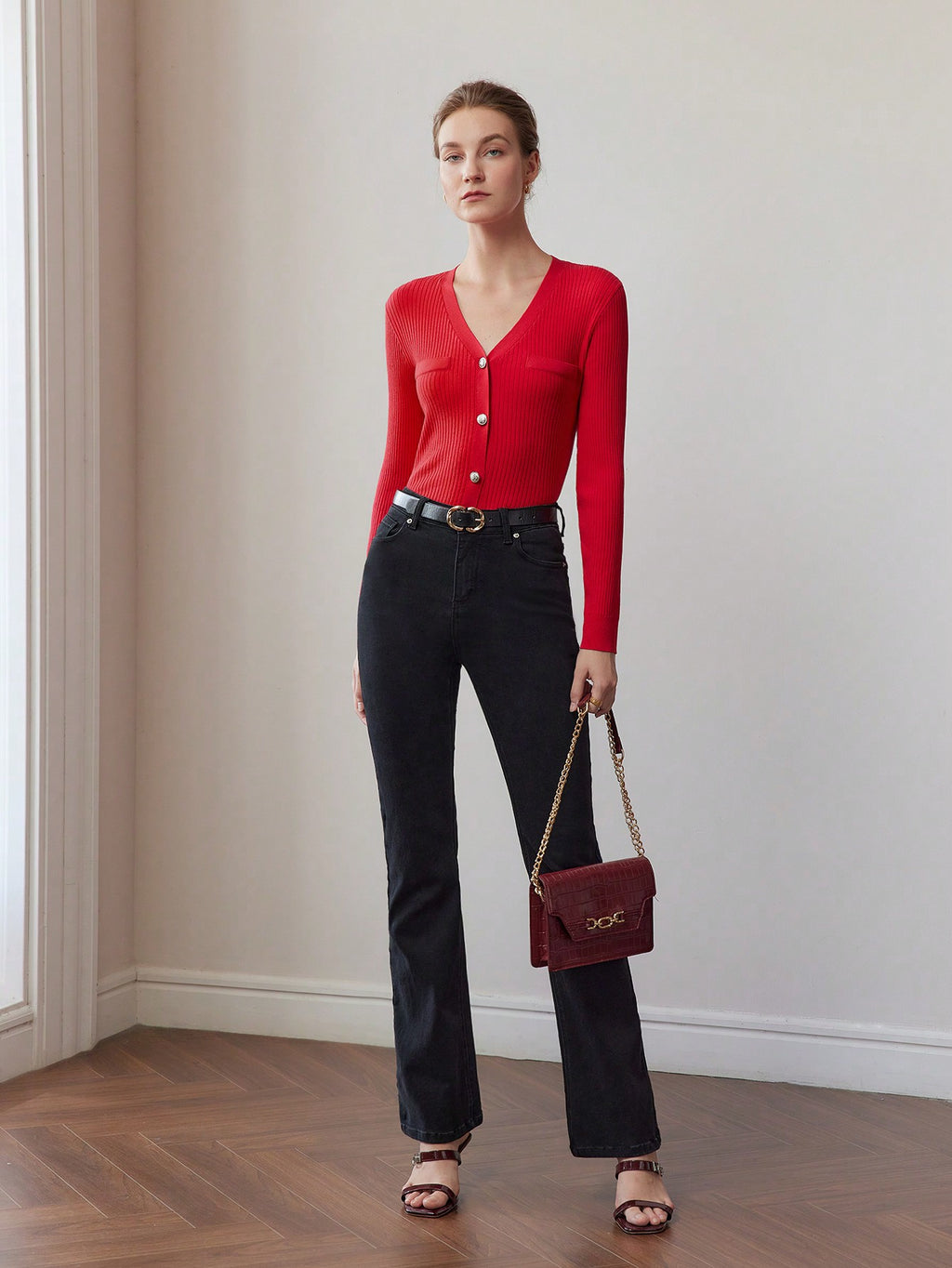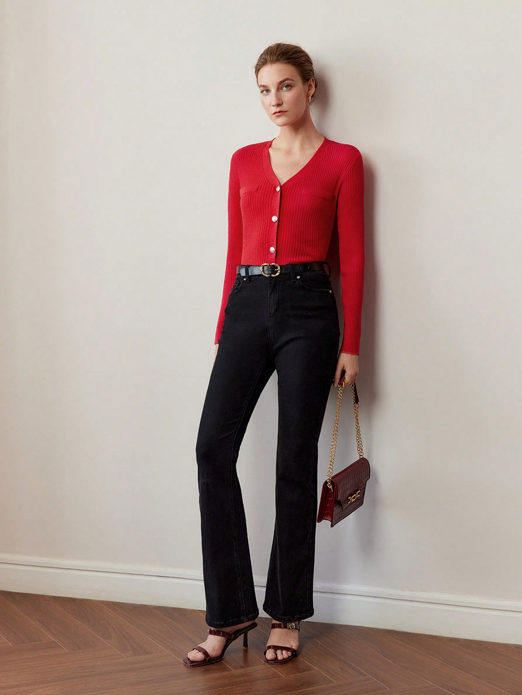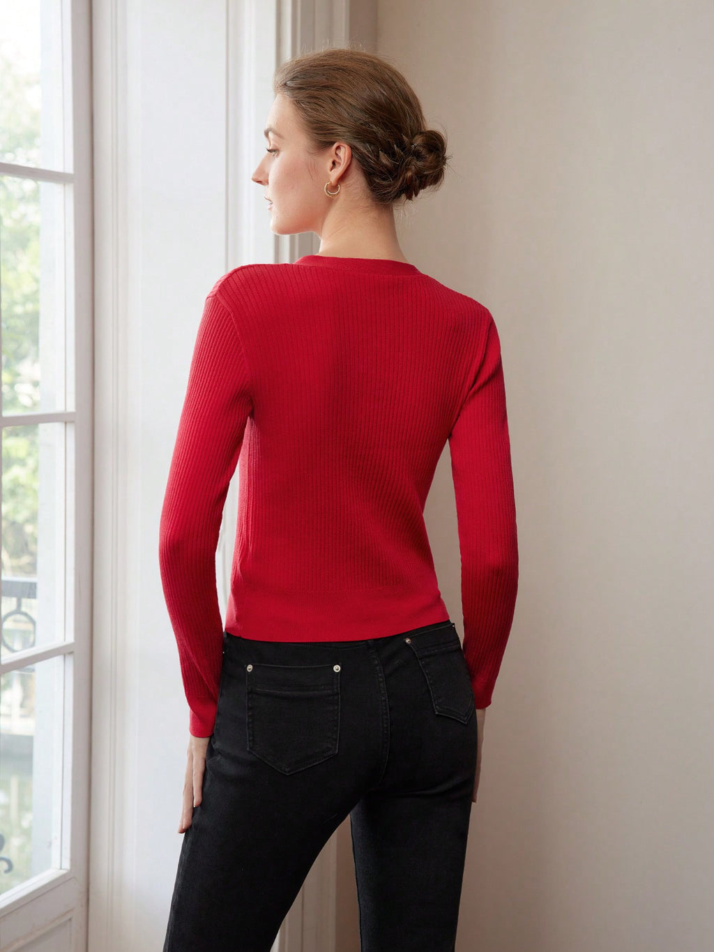 MIU PREMIUM SOLID V-NECK BUTTON PLACKET SLIM FIT CARDIGAN