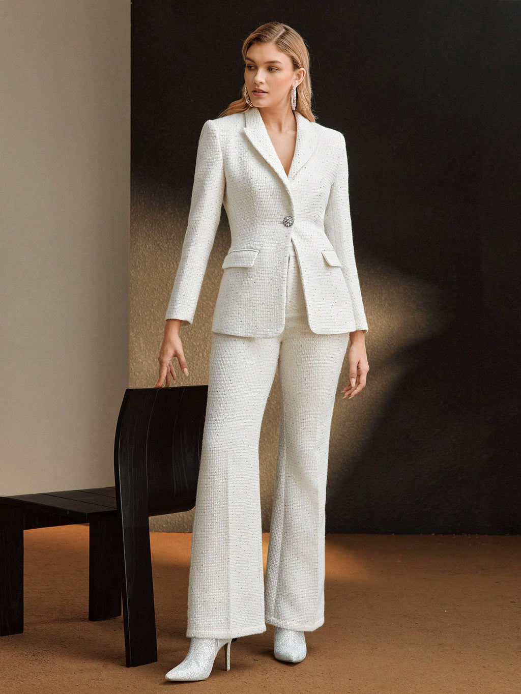 MIU PREMIUM TWEED PEAK COLLAR FLAP DETAIL BLAZER