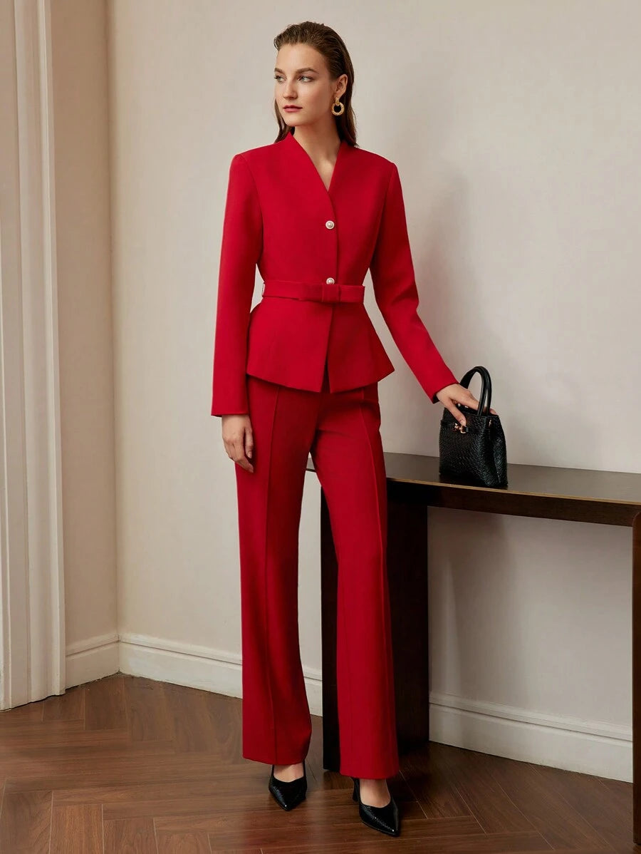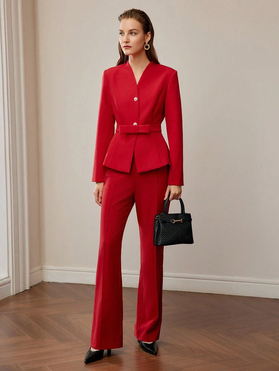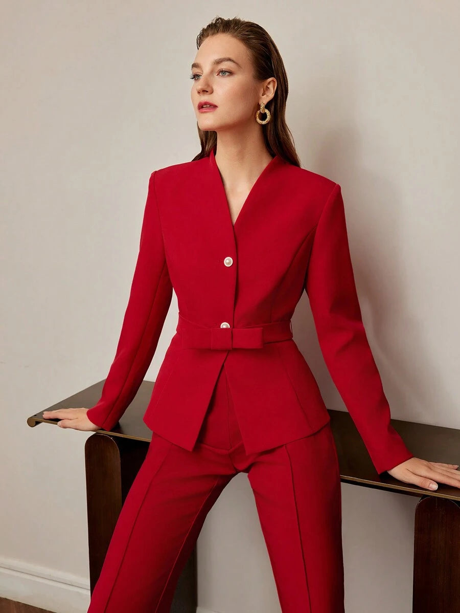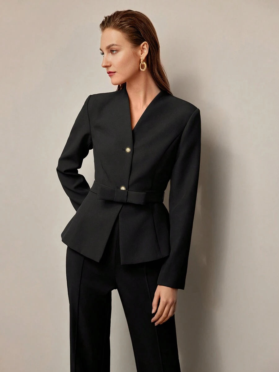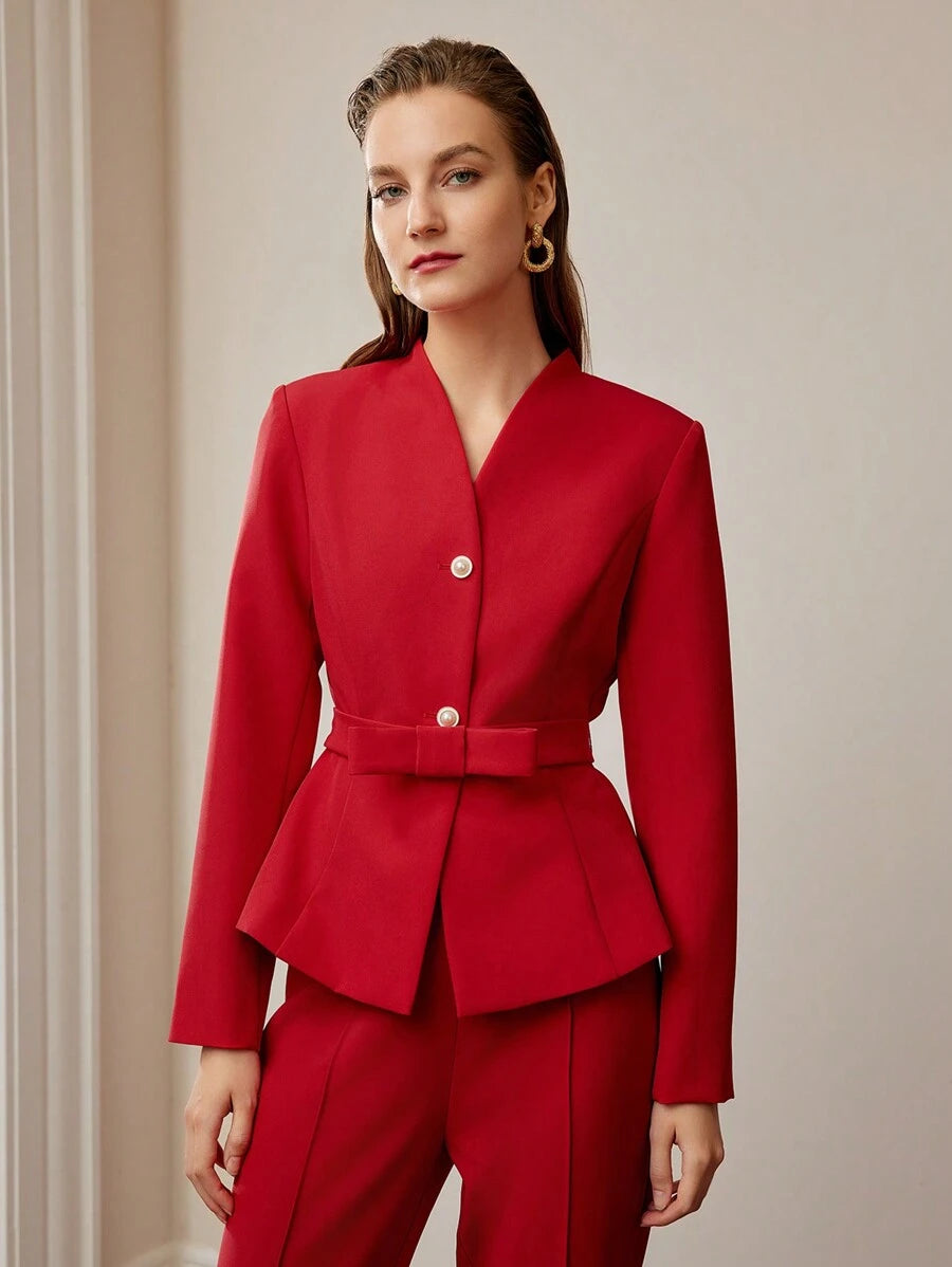 MIU PREMIUM V NECK SINGLE BREASTED STRUCTURED BLAZER