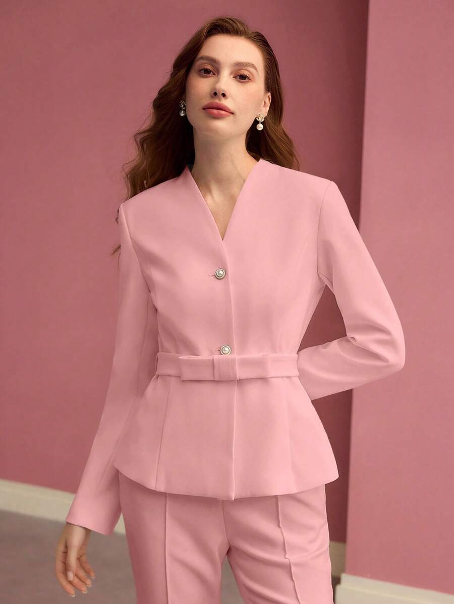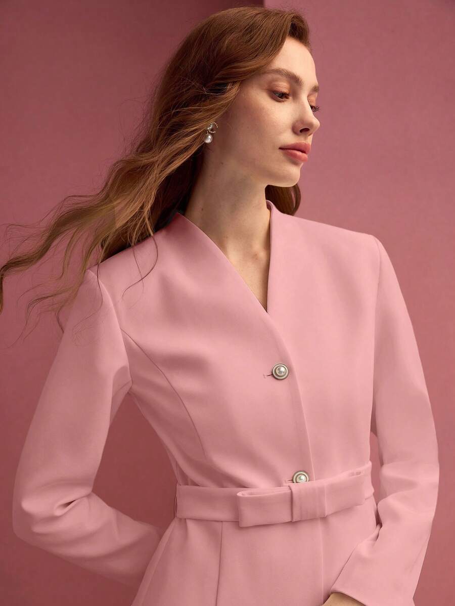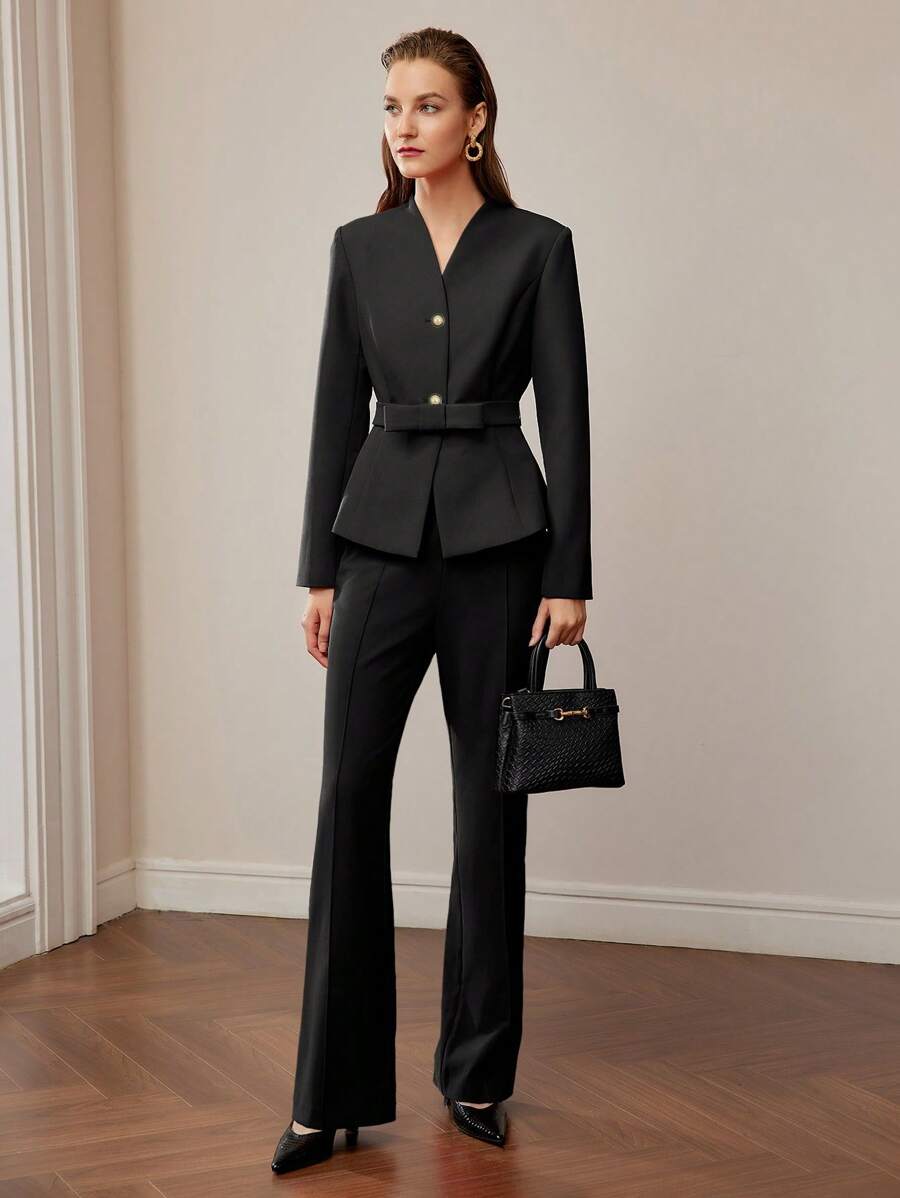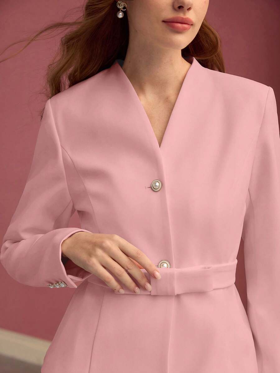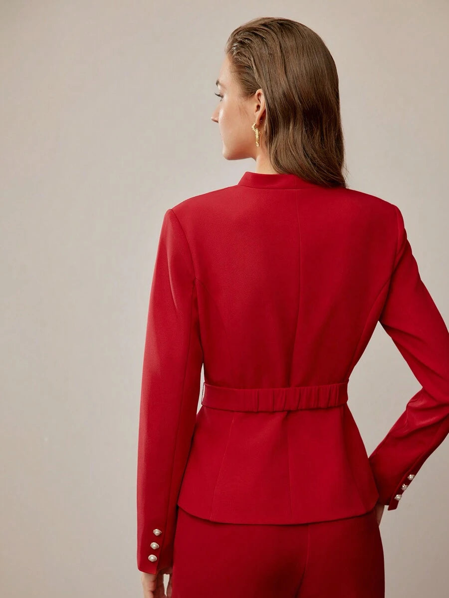 MIU PREMIUM V NECK SINGLE BREASTED STRUCTURED BLAZER