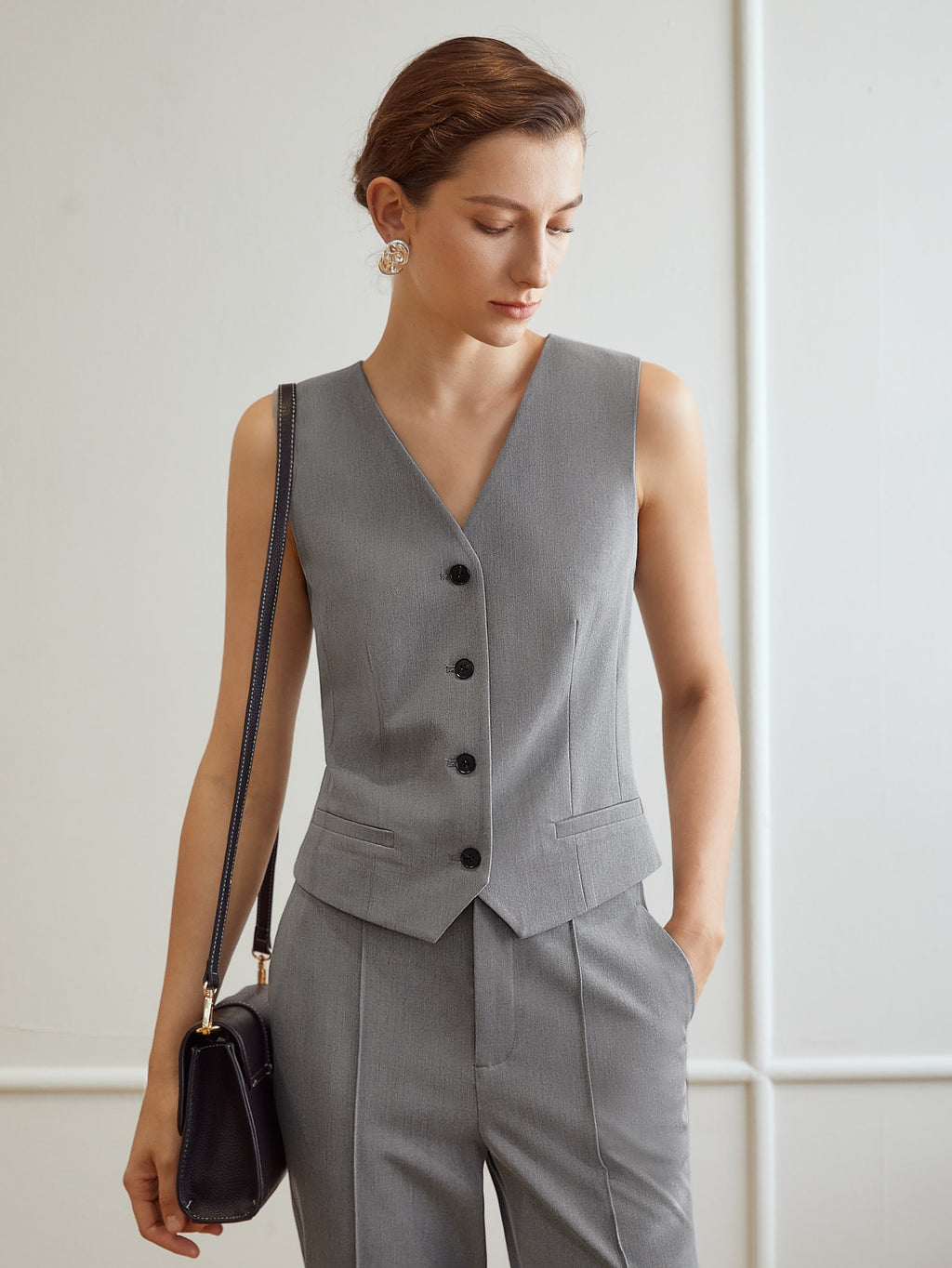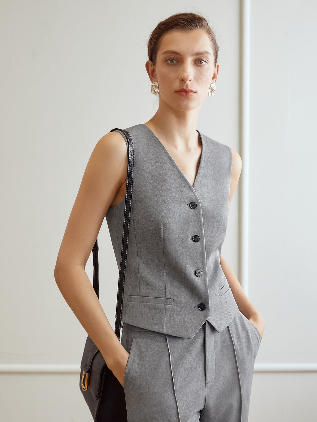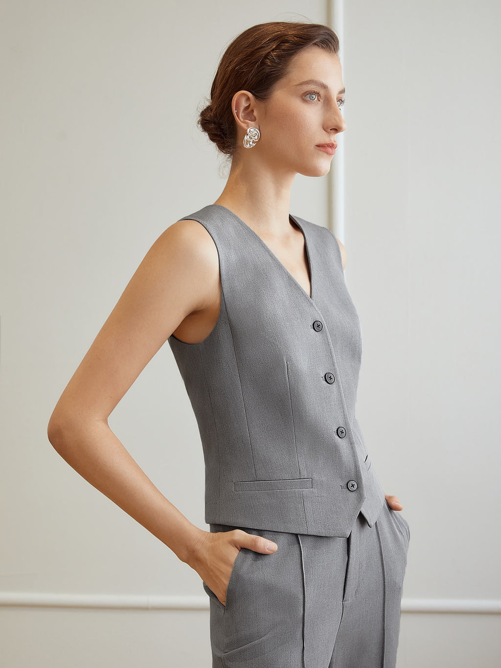 MIU PREMIUM VISCOSE-BLEND WAISTCOAT,OLD MONEY