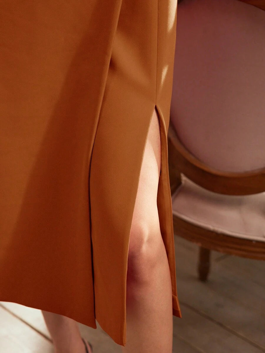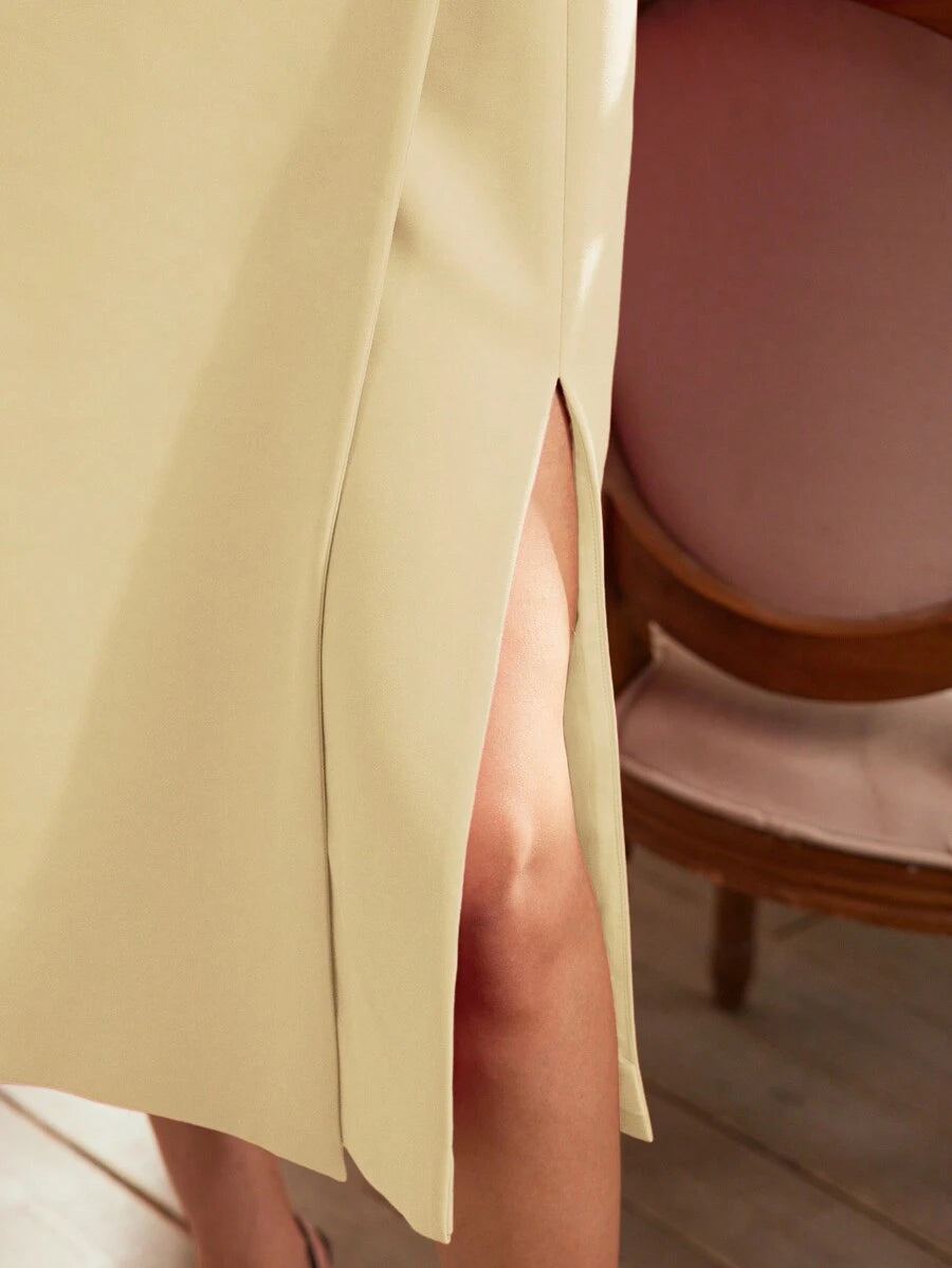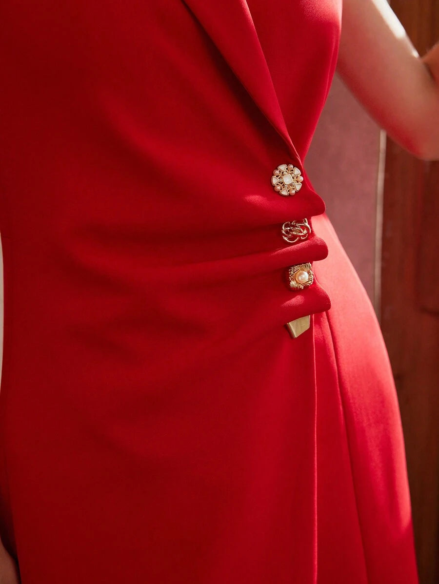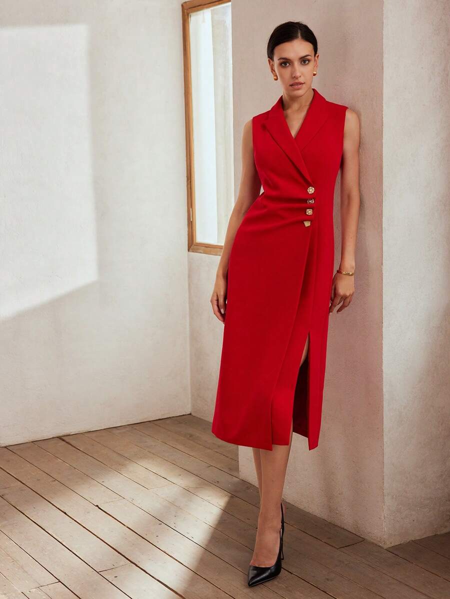 MIU PREMIUM WOMEN SLEEVELESS METAL-BUTTON COLLAR WOVEN DRESS
