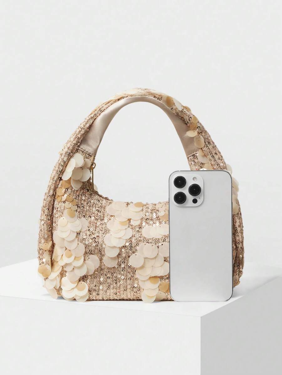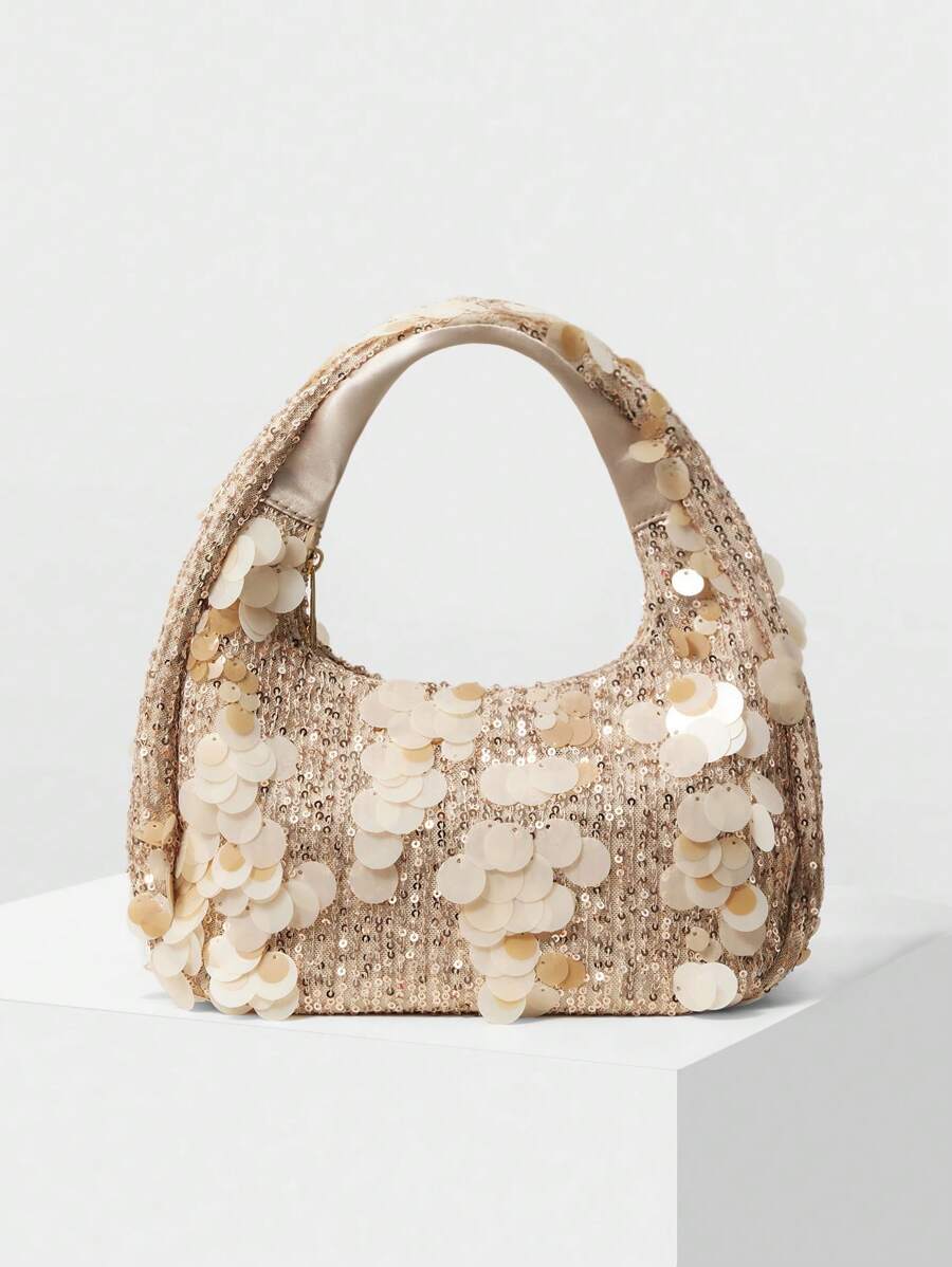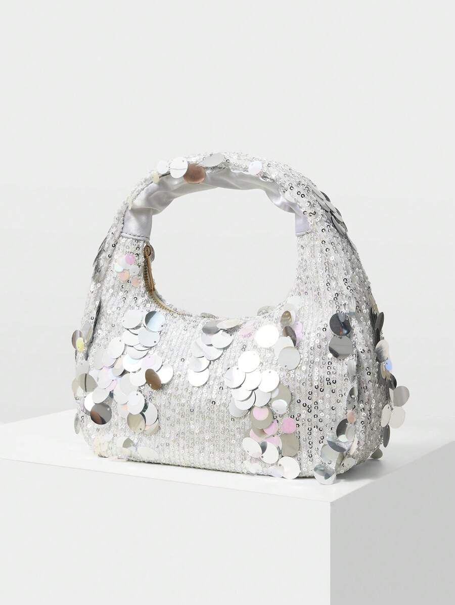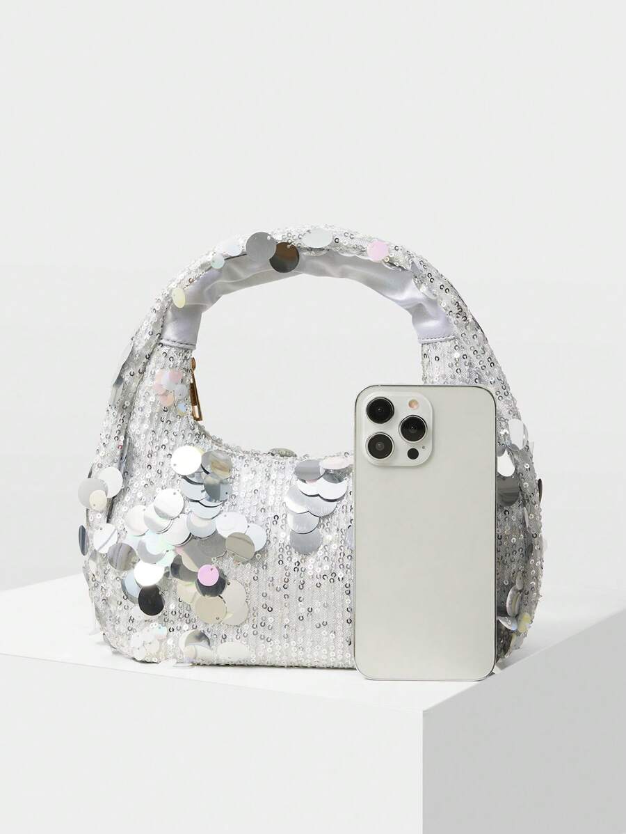 MIU PREMIUM WOMEN'S FASHION SEQUIN ZIPPER TOP HANDLE BAG, SUITABLE FOR PARTIES