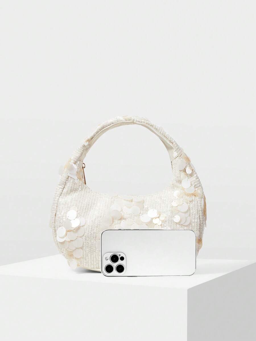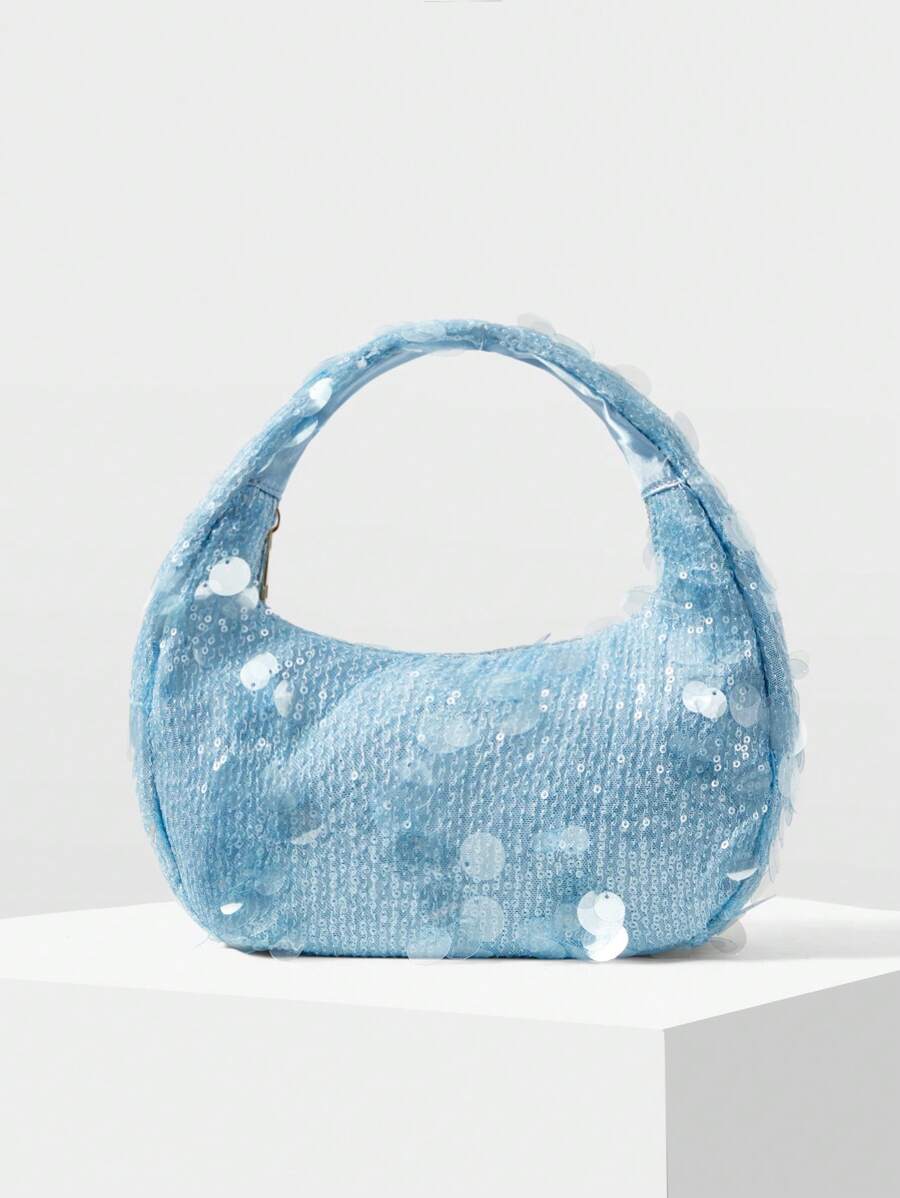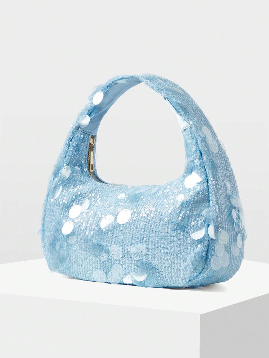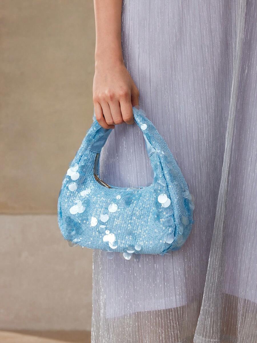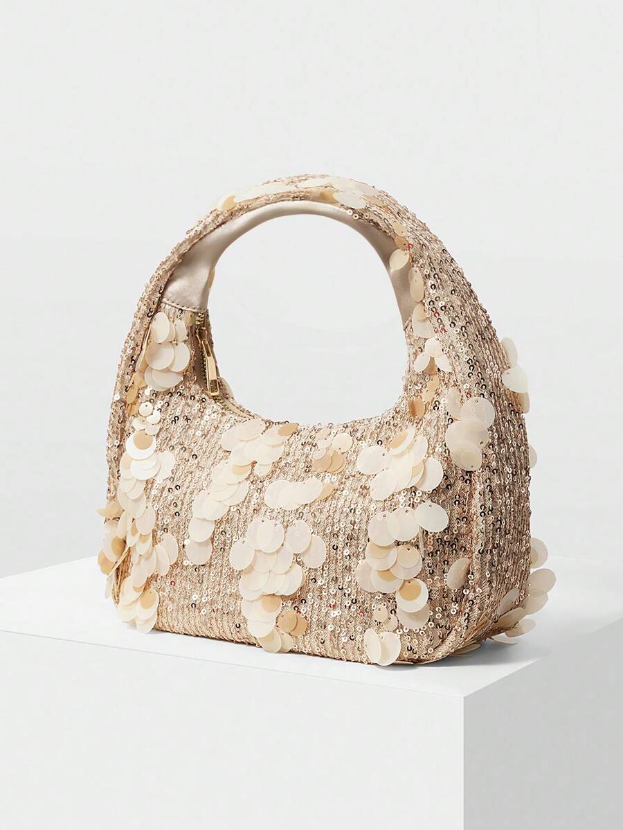 MIU PREMIUM WOMEN'S FASHION SEQUIN ZIPPER TOP HANDLE BAG, SUITABLE FOR PARTIES