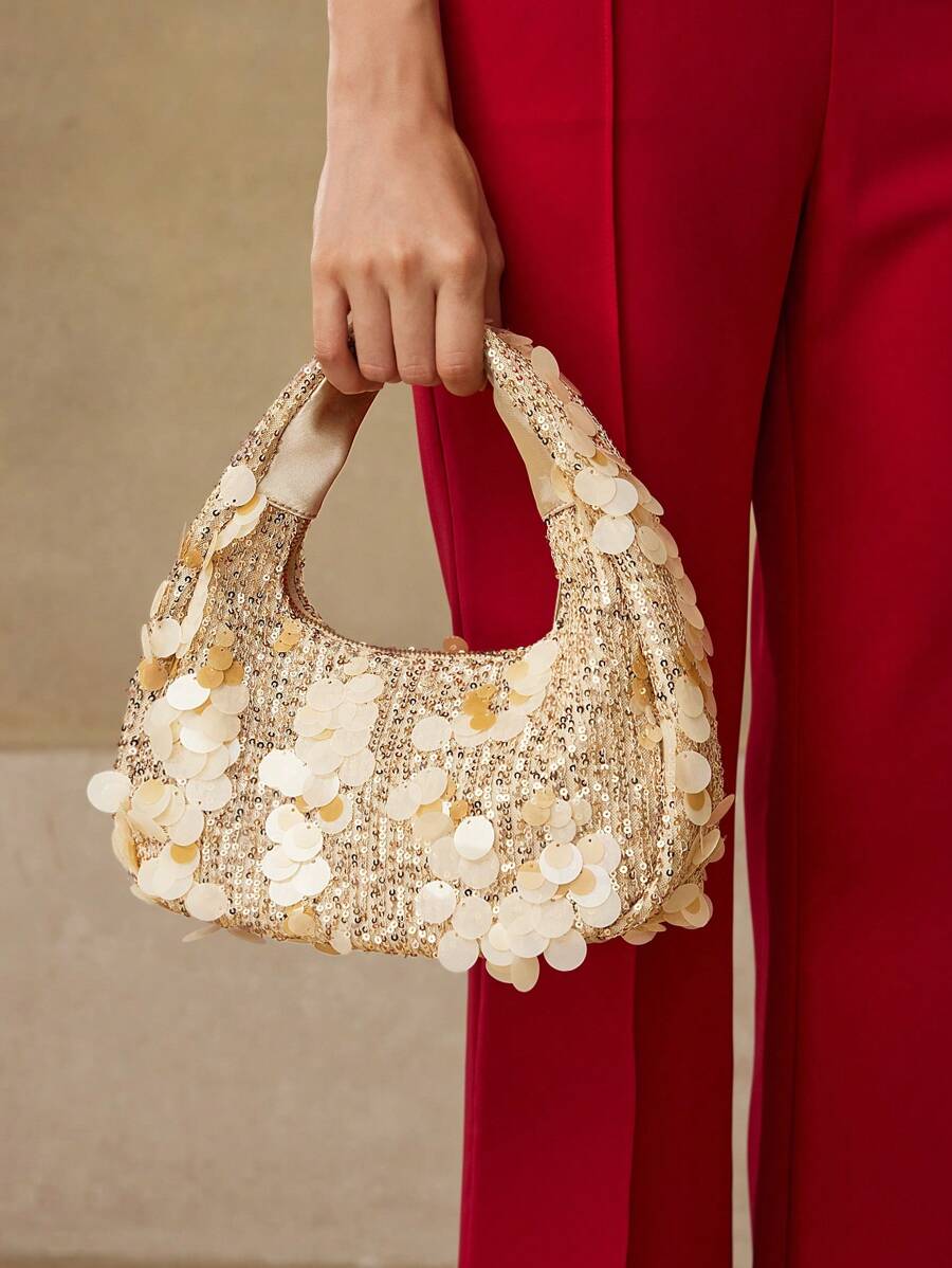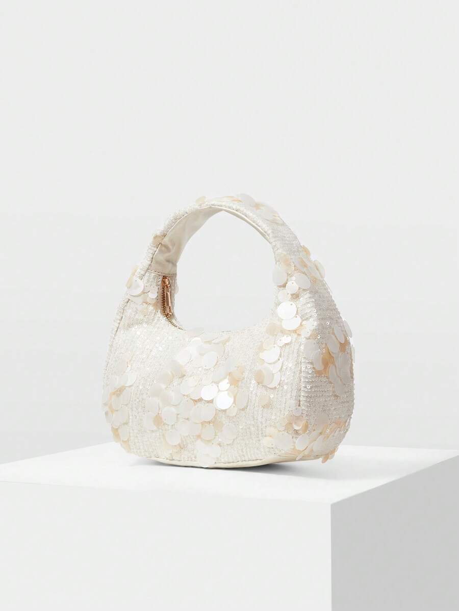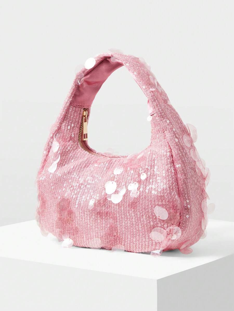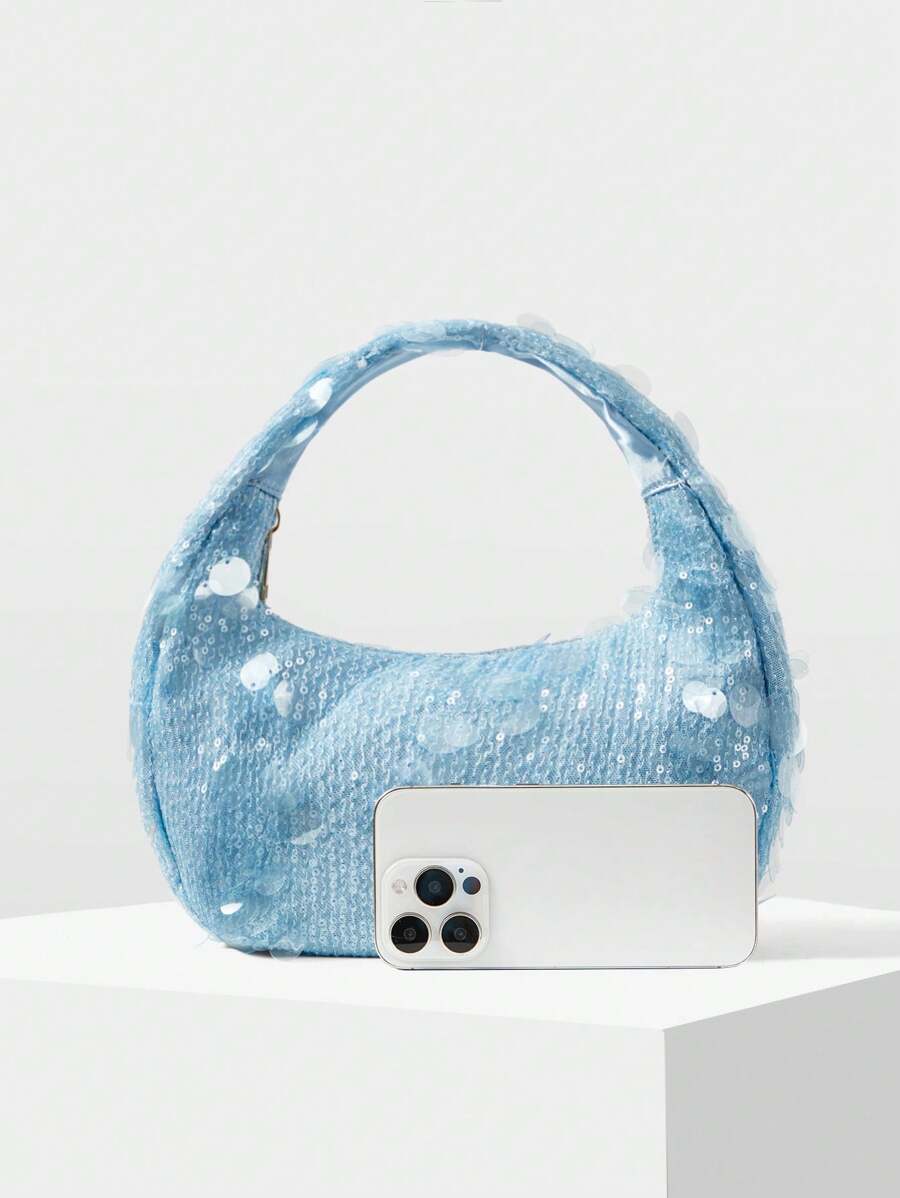 MIU PREMIUM WOMEN'S FASHION SEQUIN ZIPPER TOP HANDLE BAG, SUITABLE FOR PARTIES