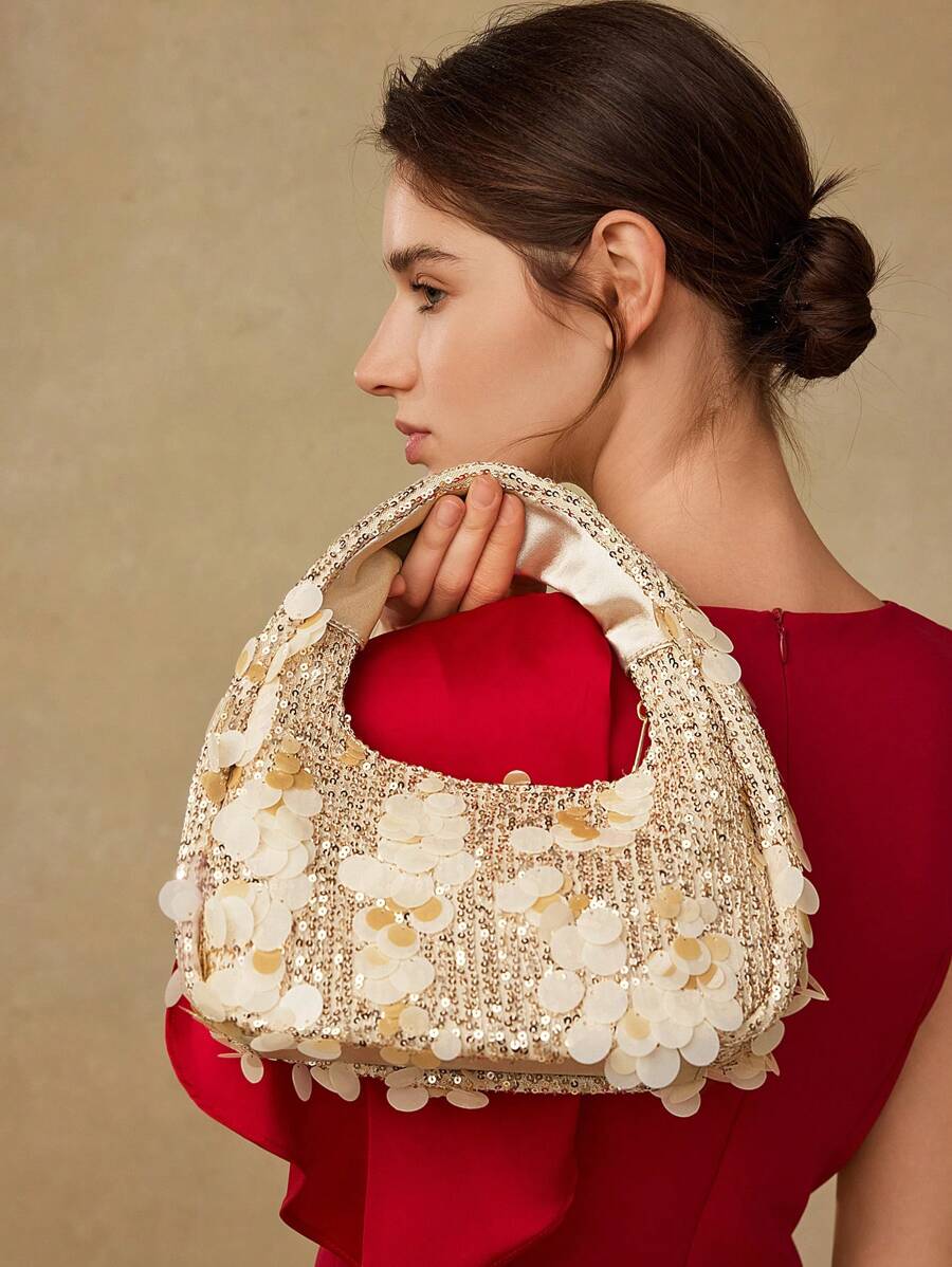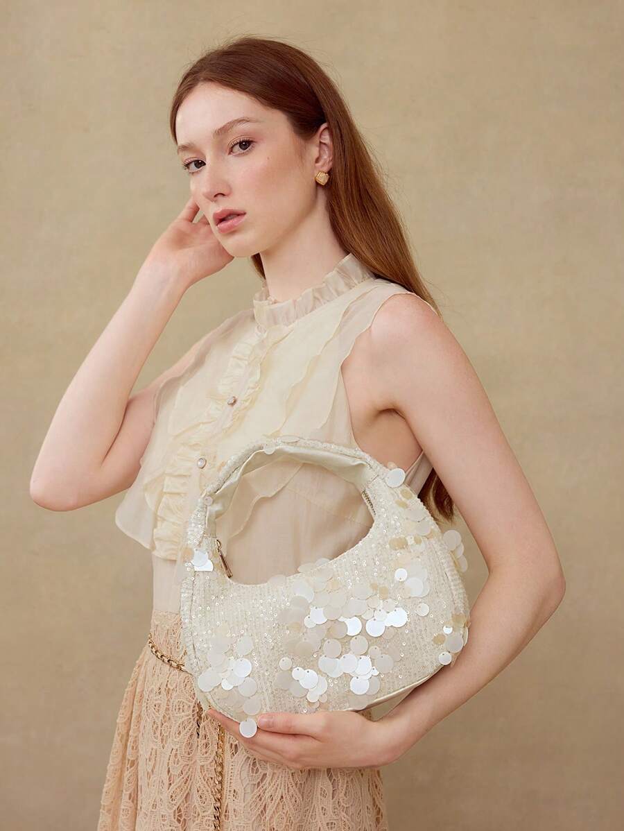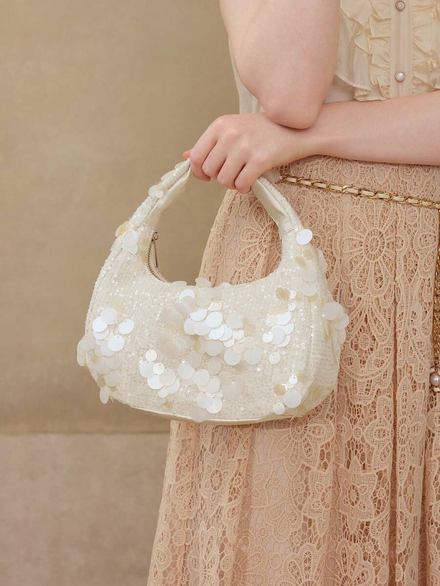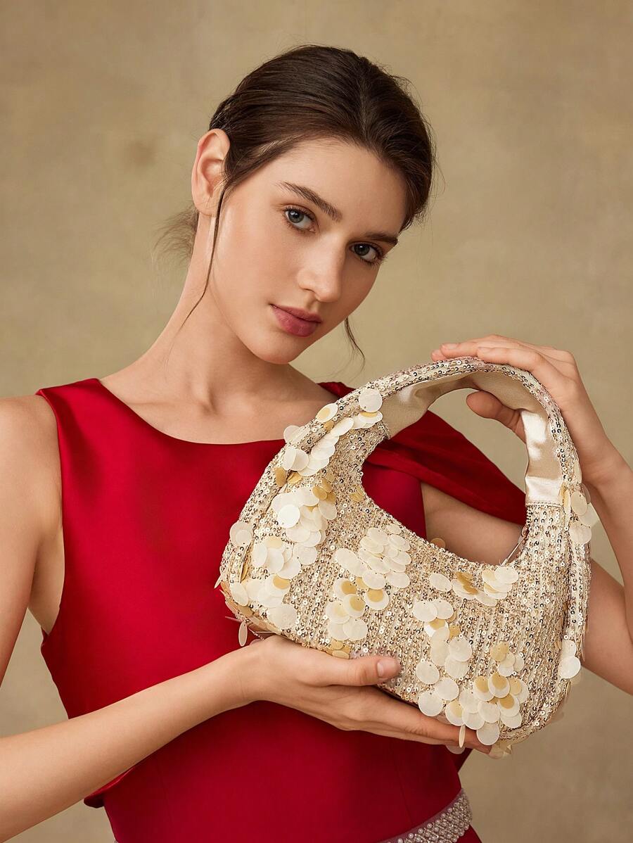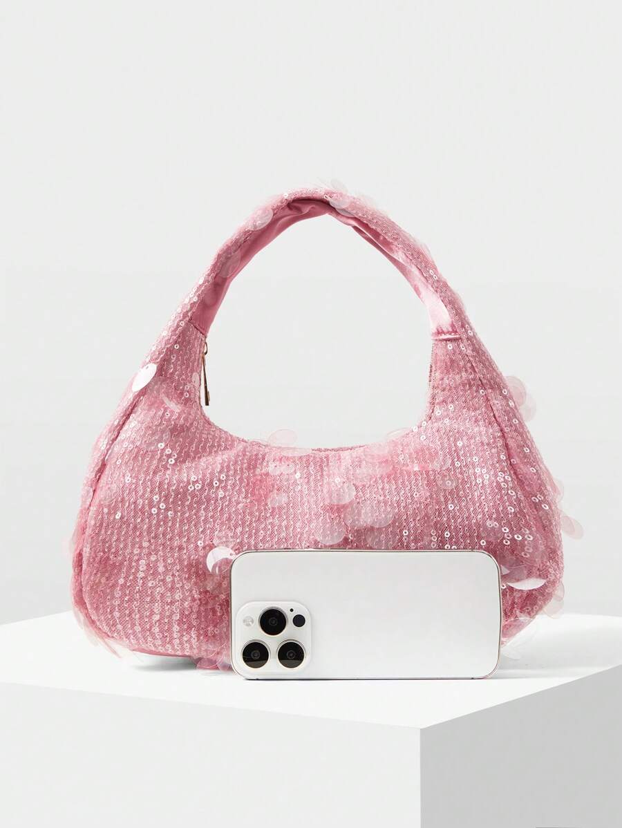 MIU PREMIUM WOMEN'S FASHION SEQUIN ZIPPER TOP HANDLE BAG, SUITABLE FOR PARTIES