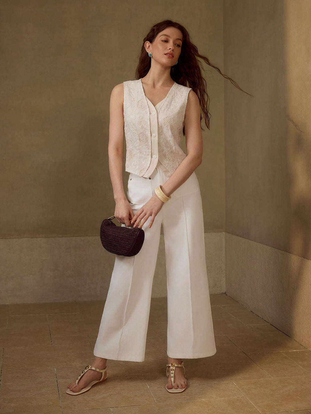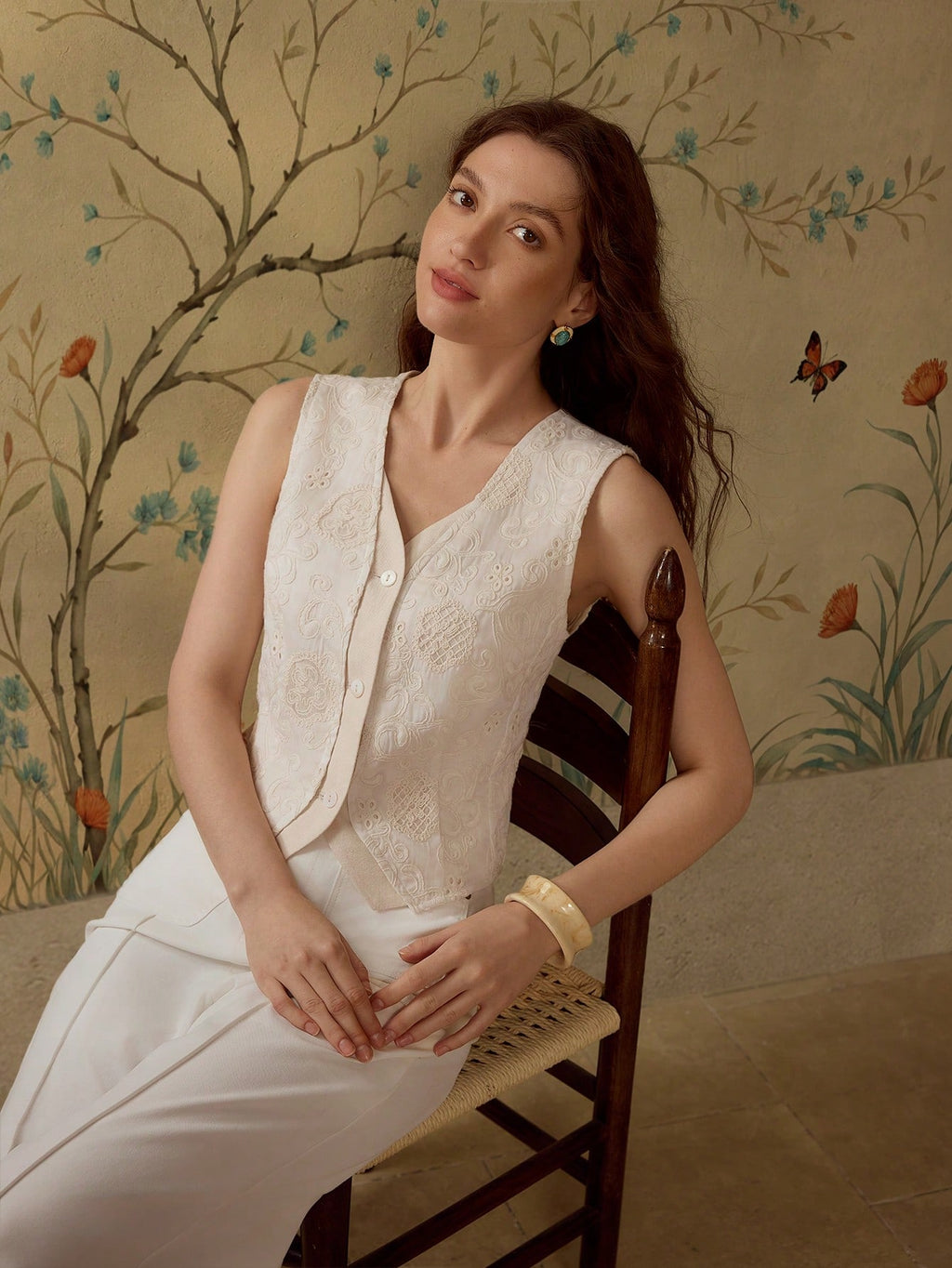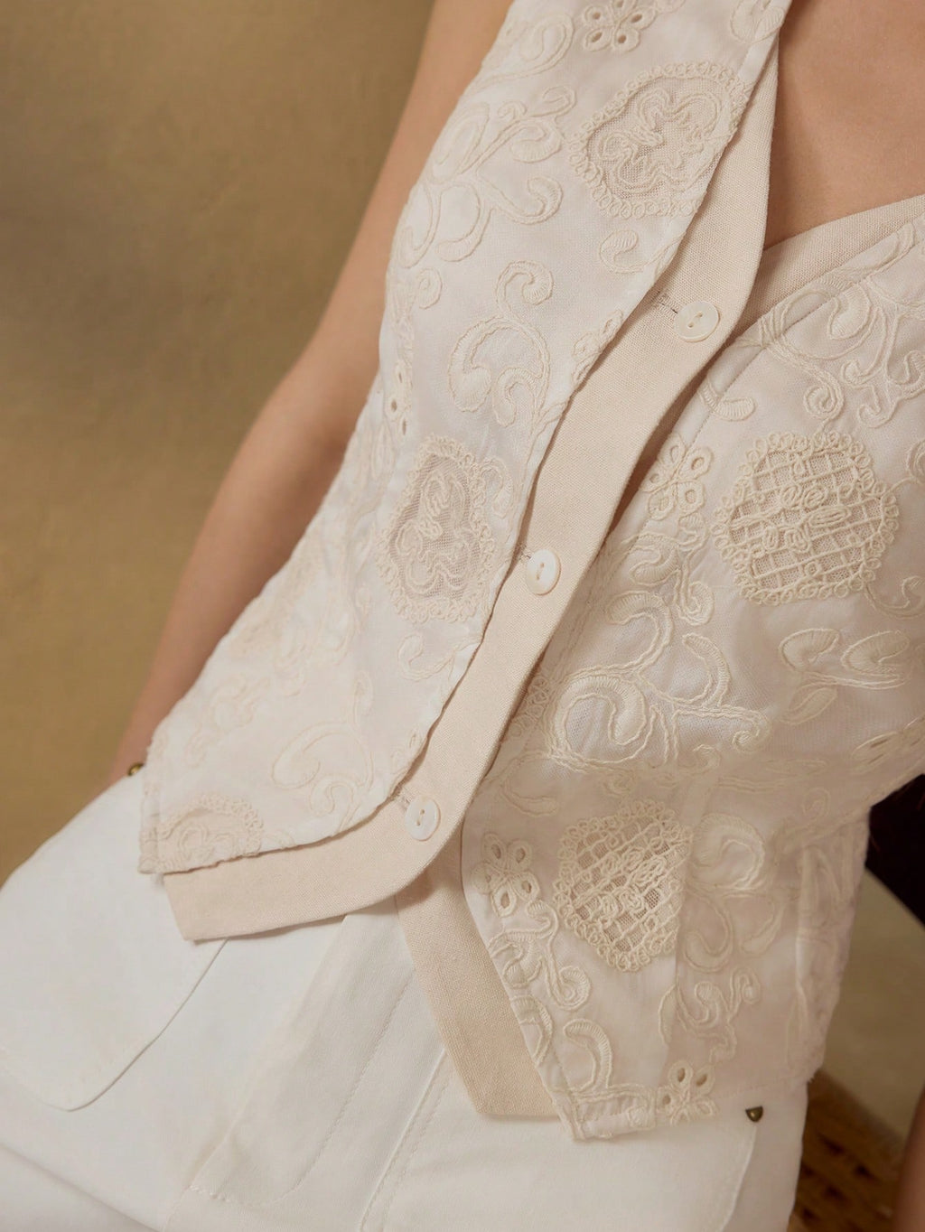 MIU PREMIUM WOMEN'S LINEN FLORAL EMBROIDERY WAISTCOAT, SPRING/ SUMMER VACATION