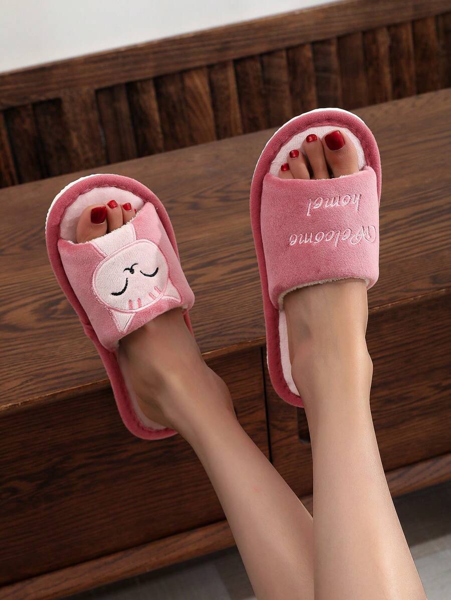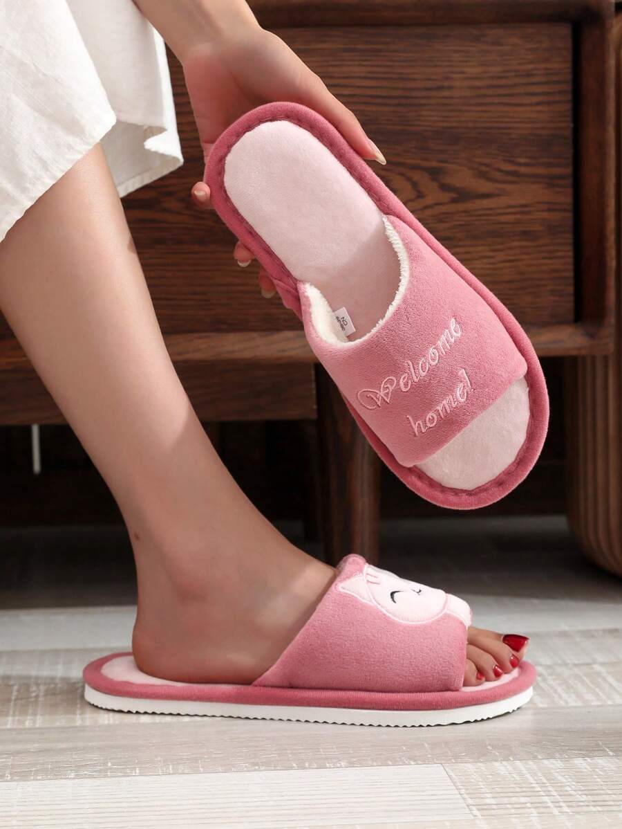 MIU Preppy Pink Slippers For Women, Letter