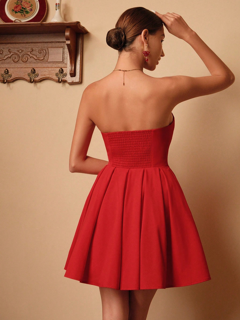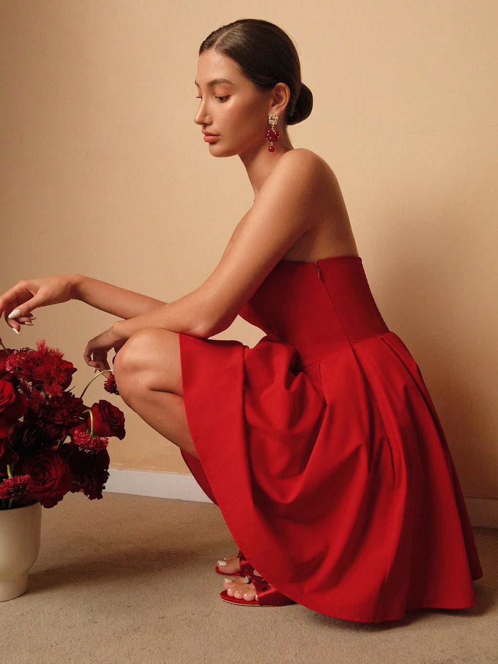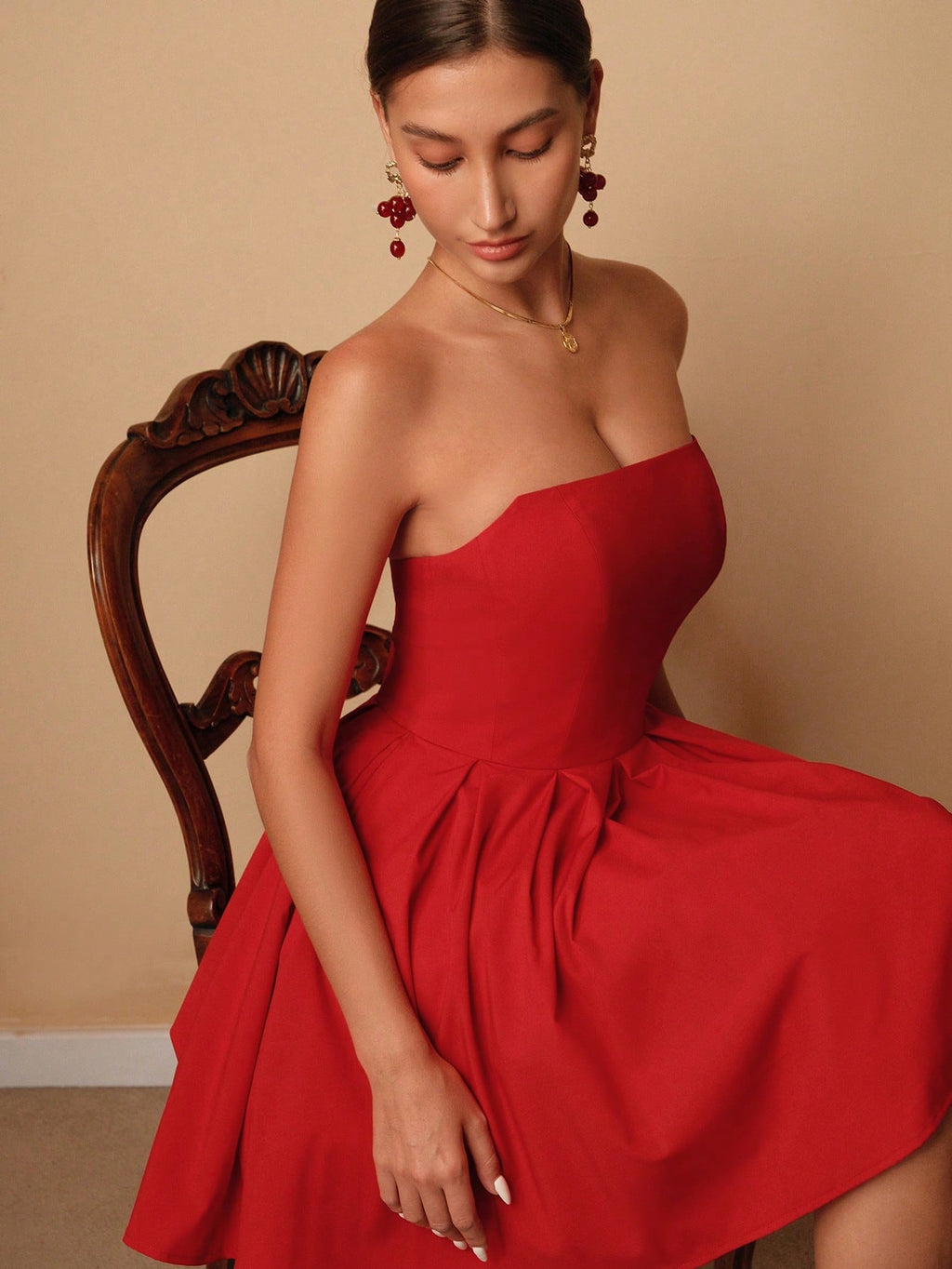 MIU Red Elegant Mini Dress, Short Party Dress Suitable For Birthday Banquet