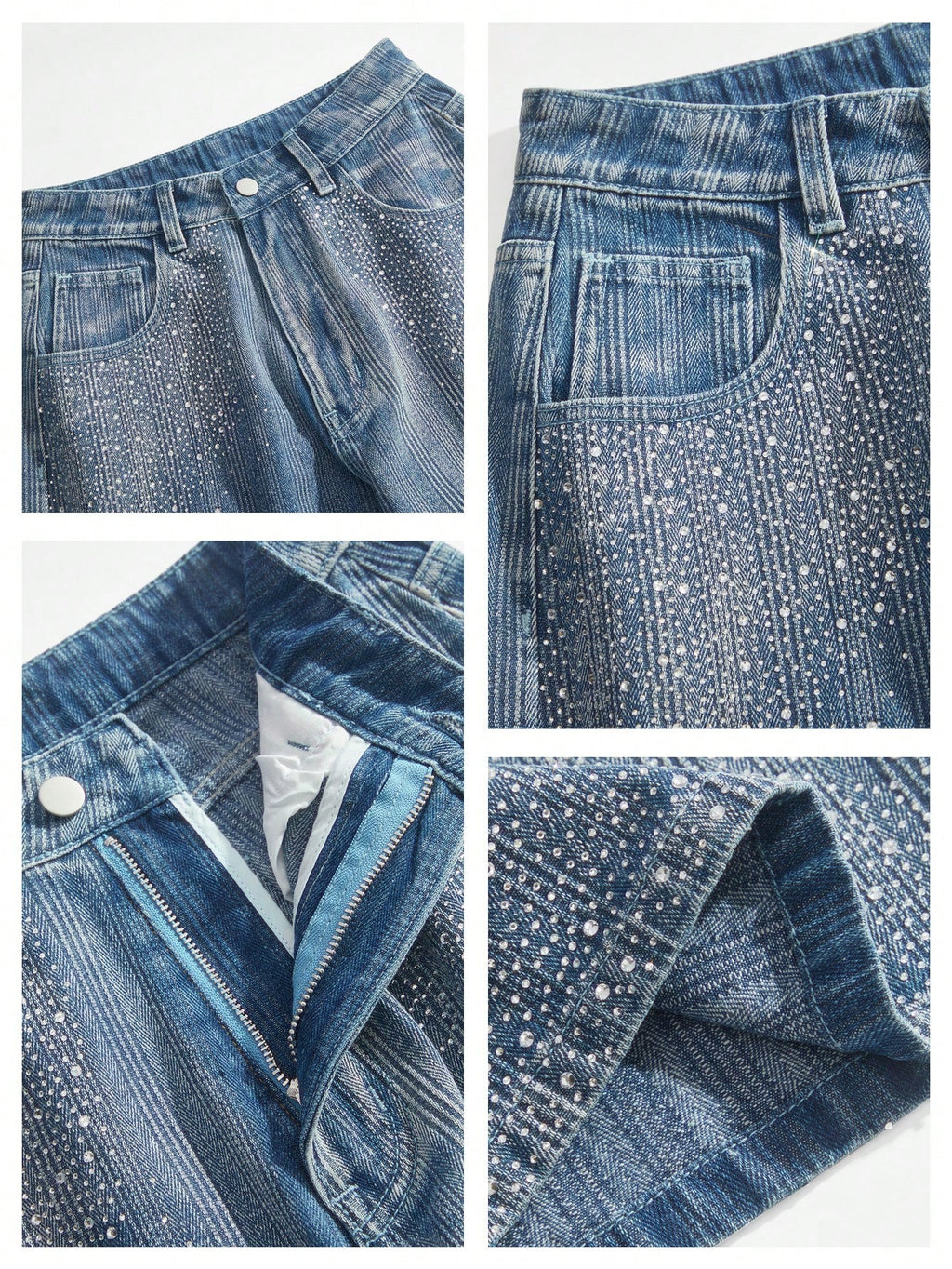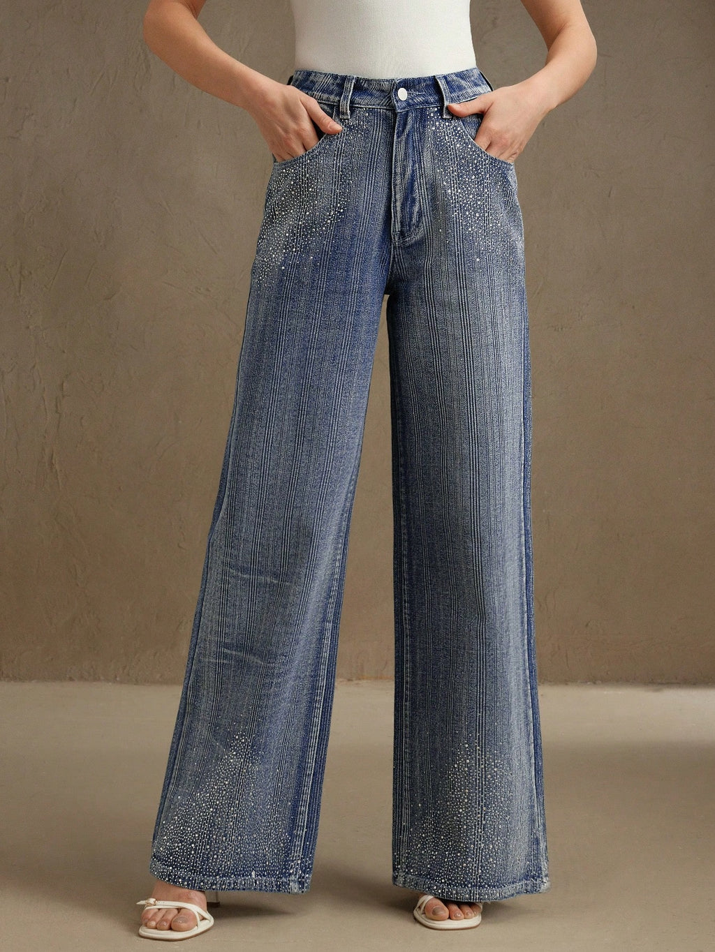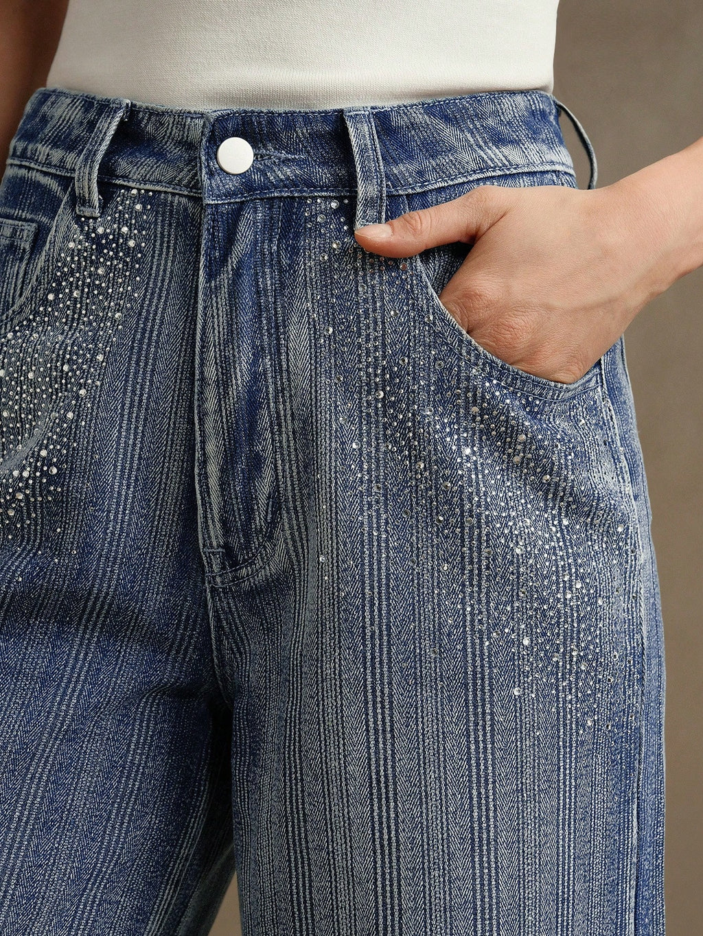 MIU Rhinestone Decoration Loose Straight Leg Jeans For Women, Casual