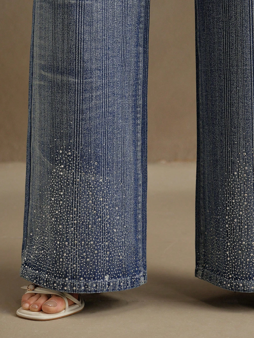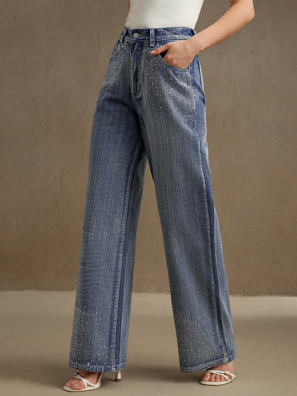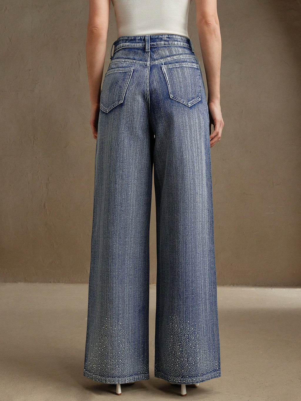 MIU Rhinestone Decoration Loose Straight Leg Jeans For Women, Casual