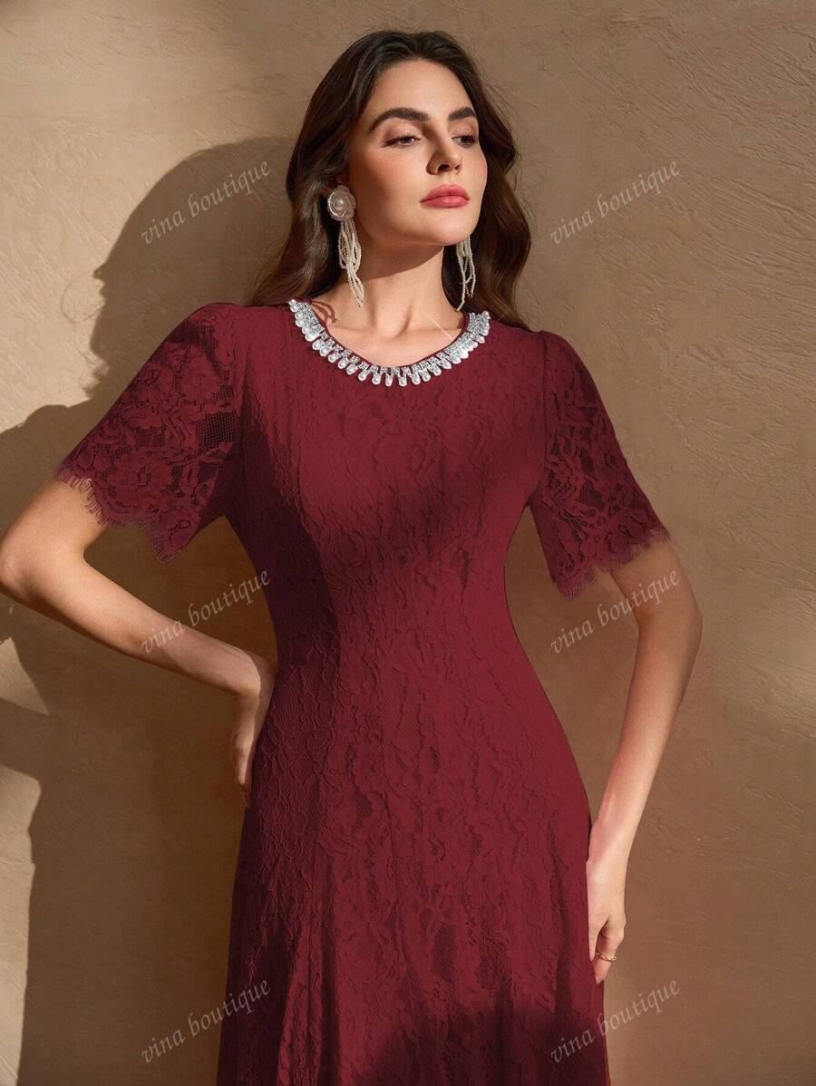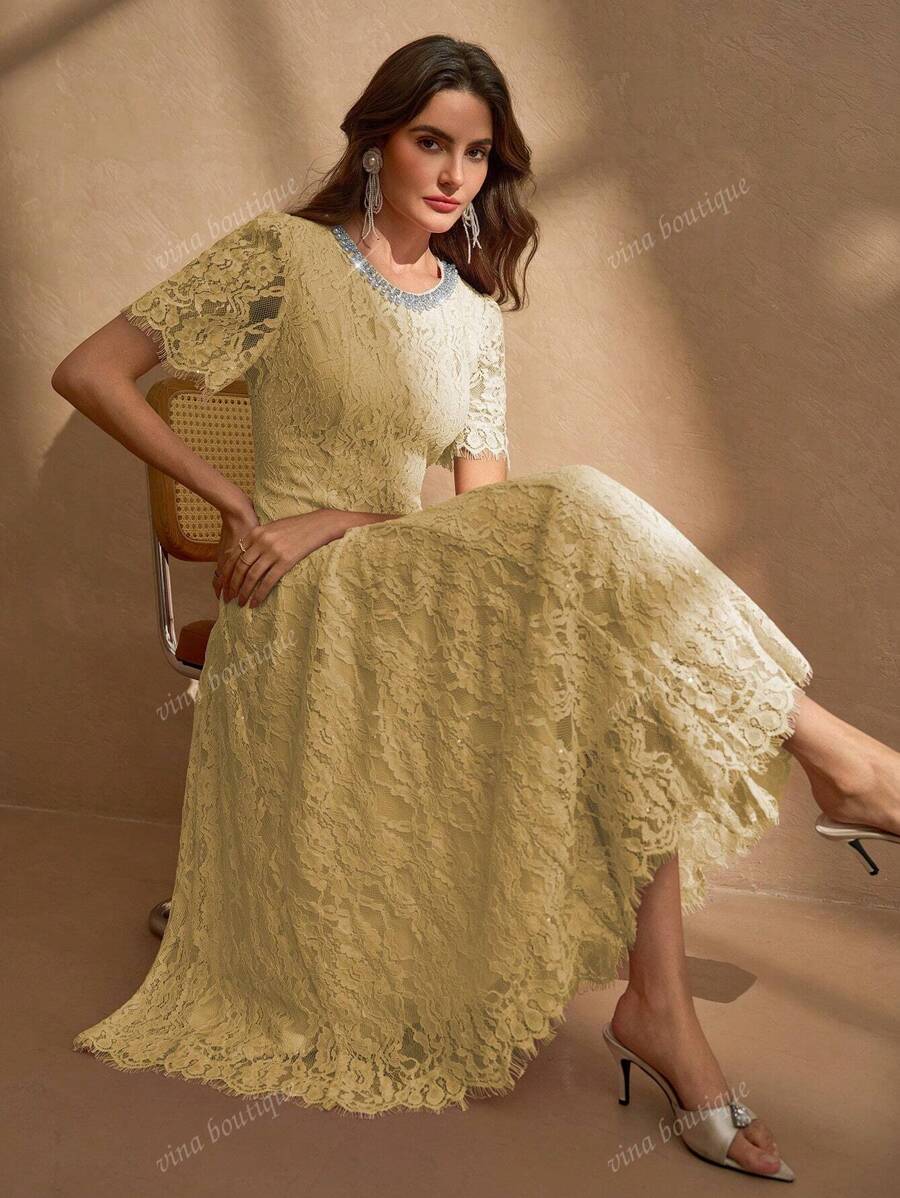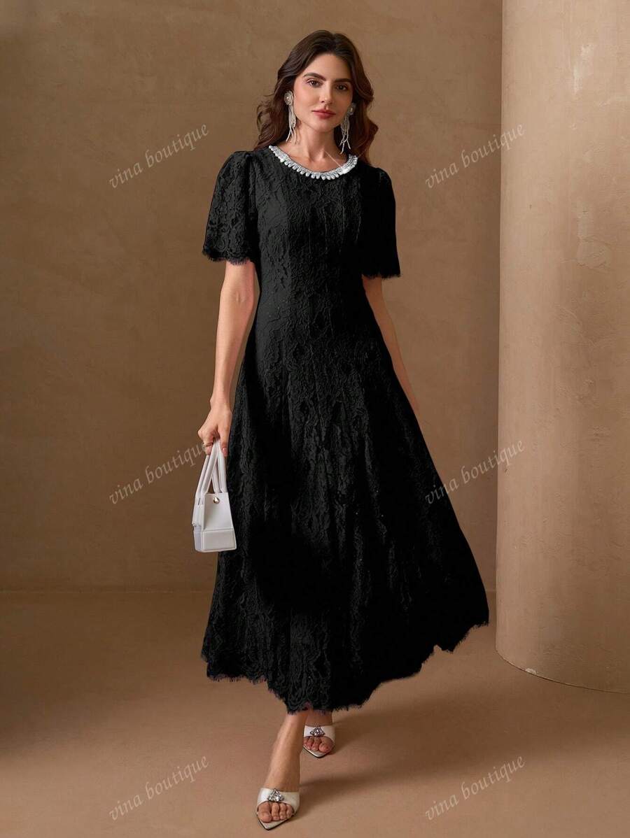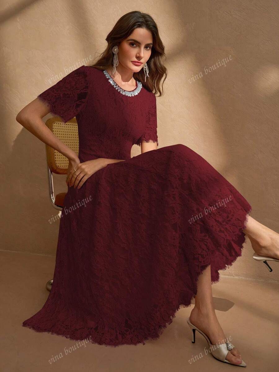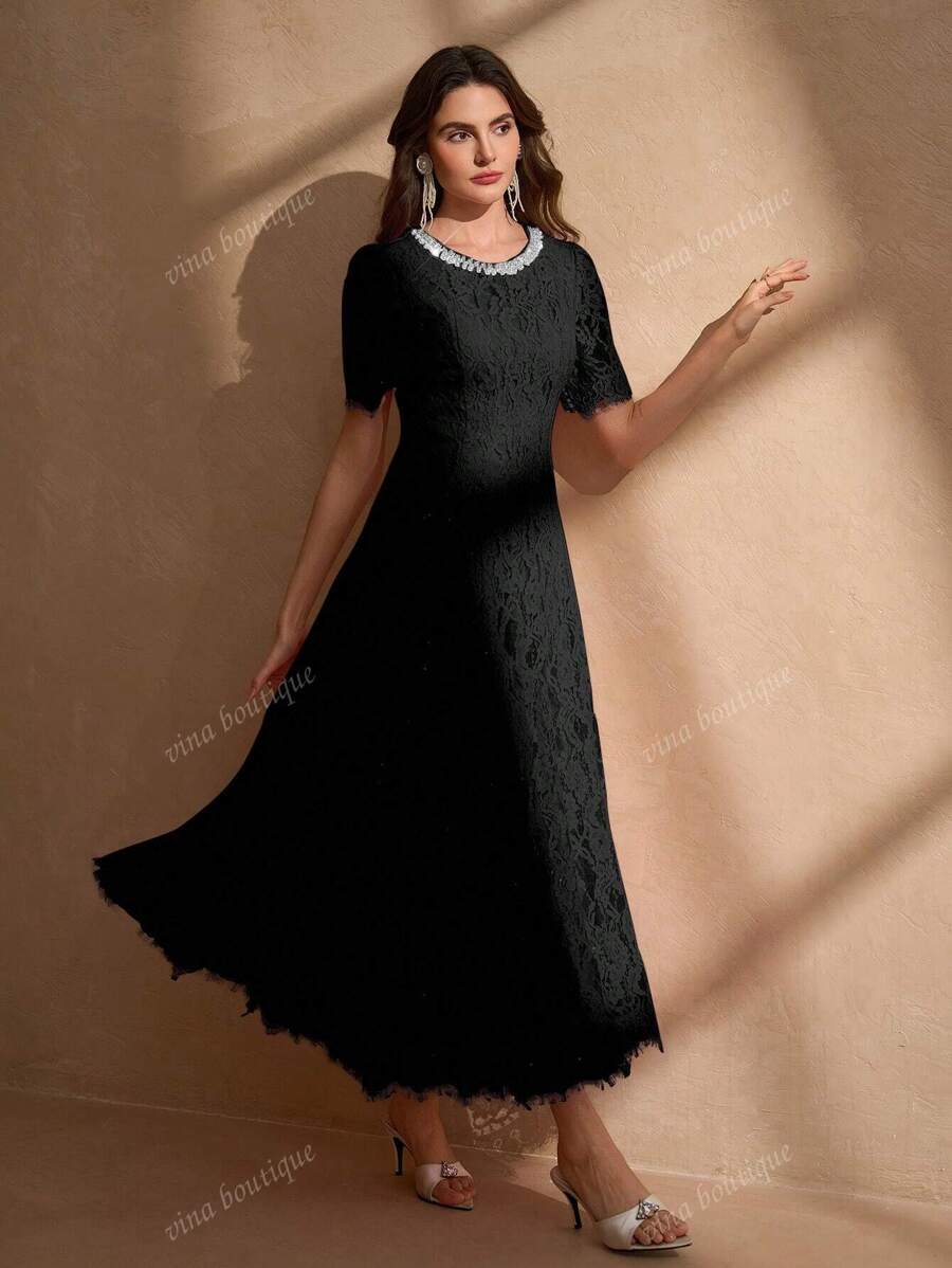 MIU Round Neck Fitted Slimming Women's Premium Quality Party Dress, Sophisticated