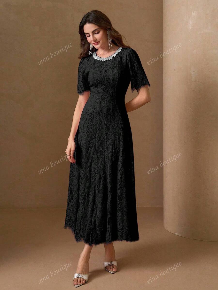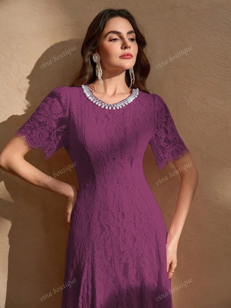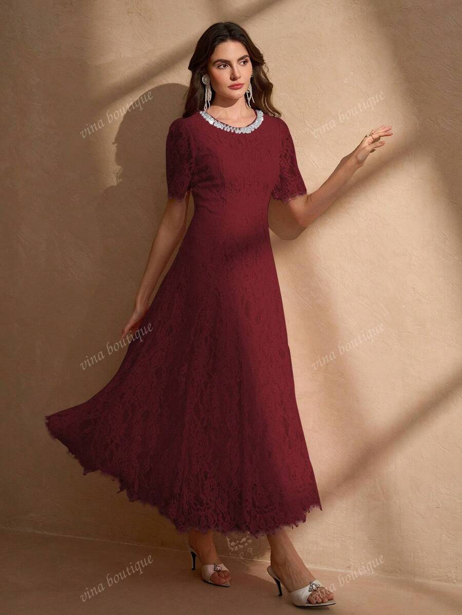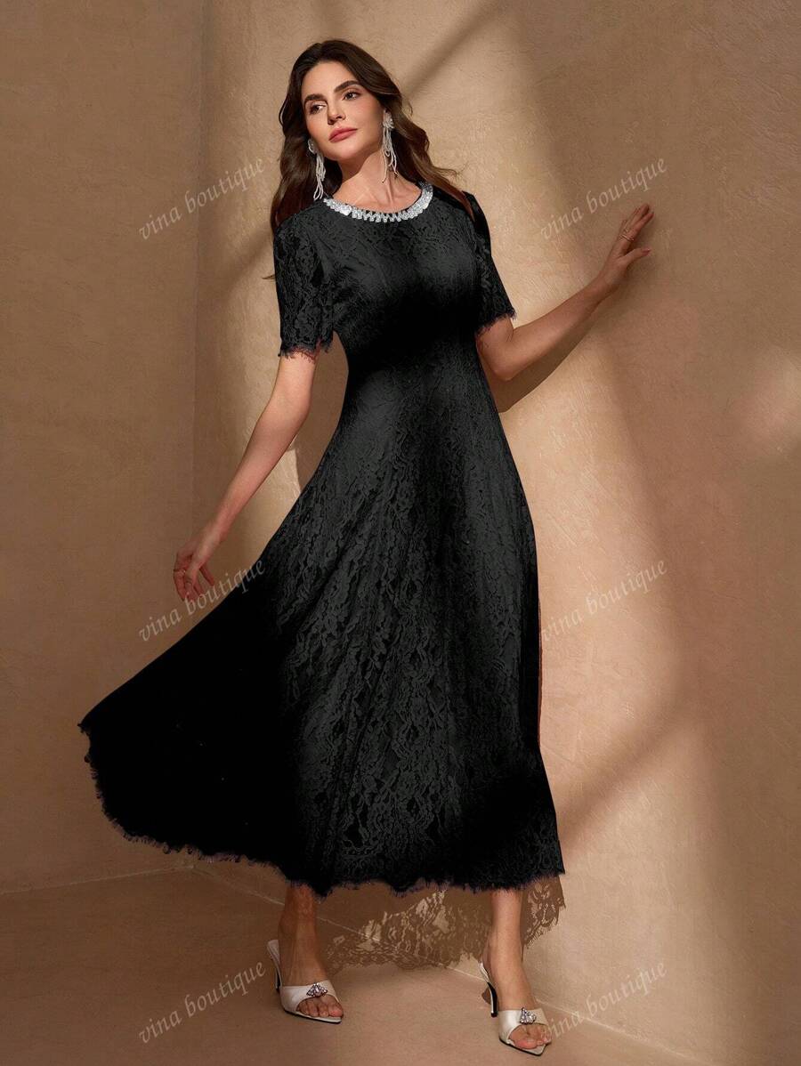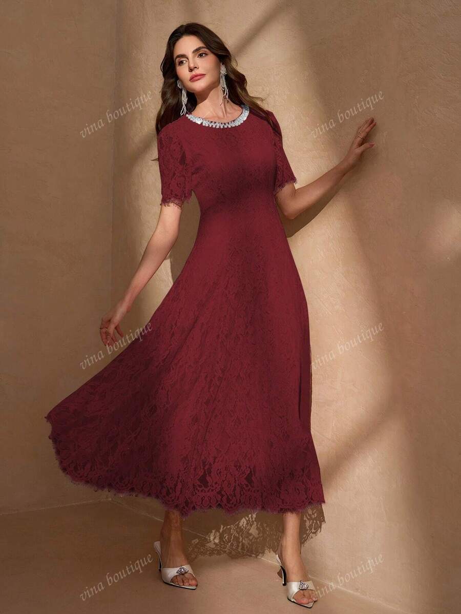 MIU Round Neck Fitted Slimming Women's Premium Quality Party Dress, Sophisticated
