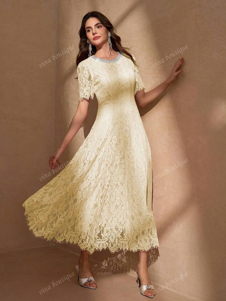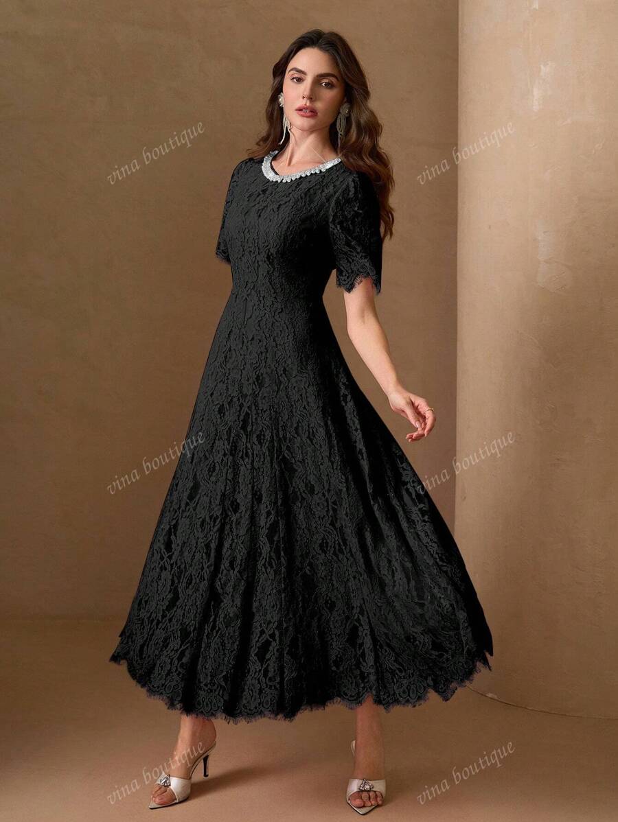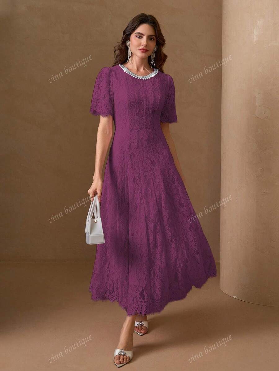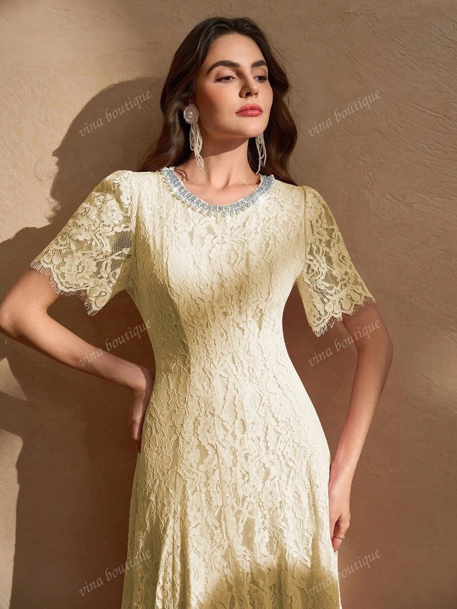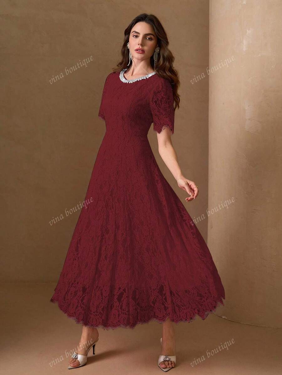MIU Round Neck Fitted Slimming Women's Premium Quality Party Dress, Sophisticated