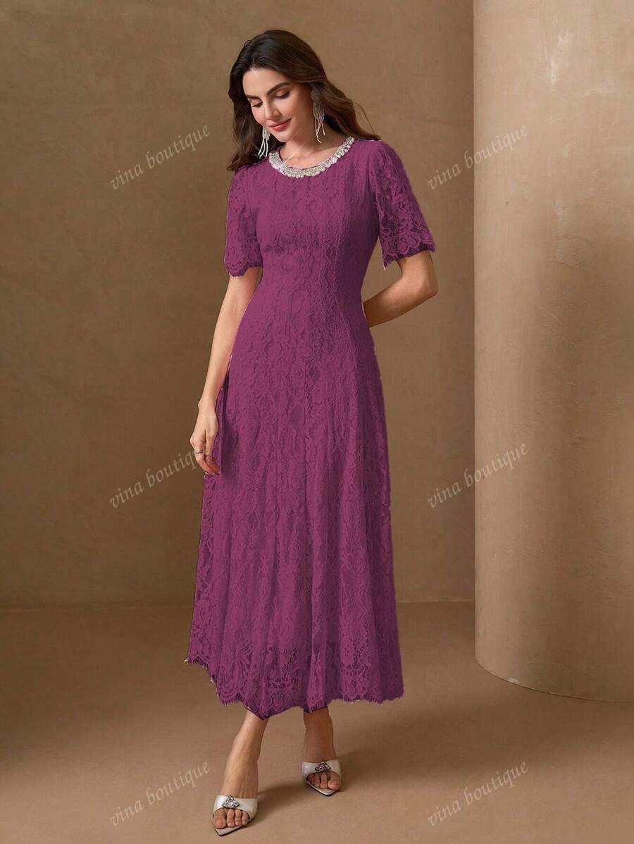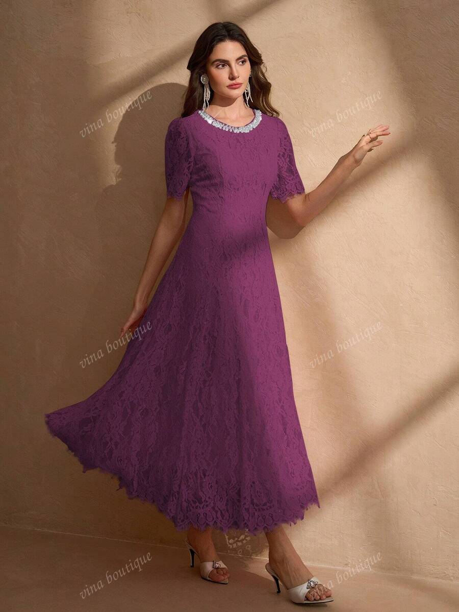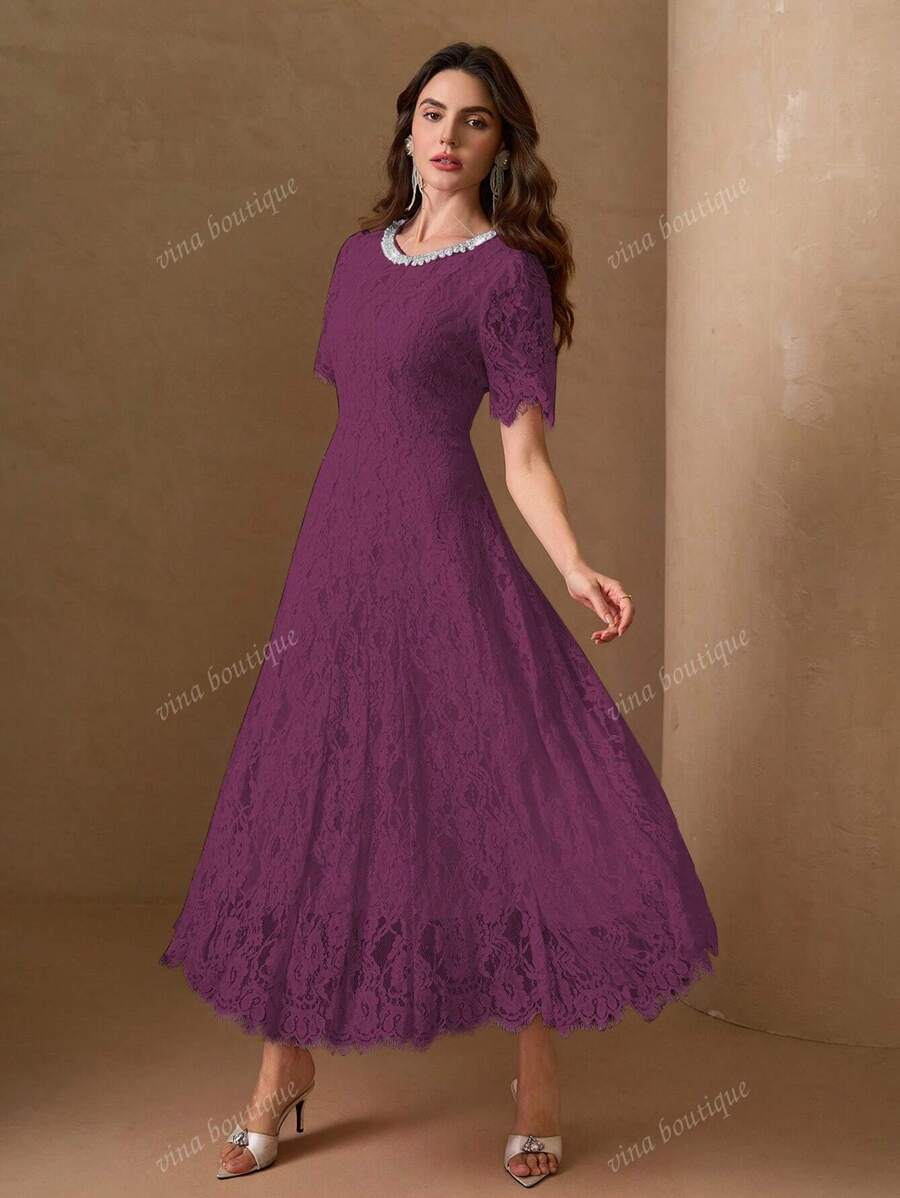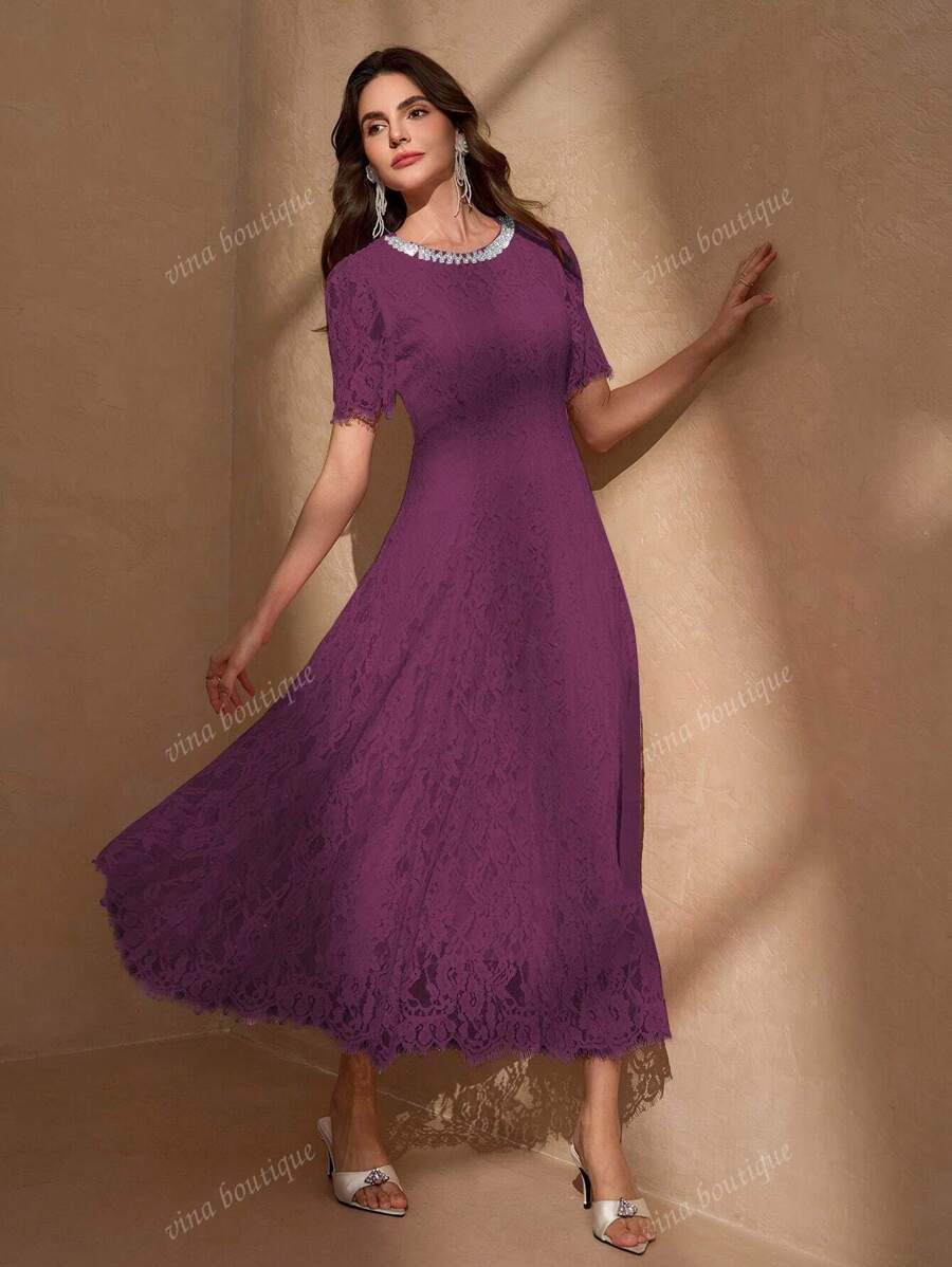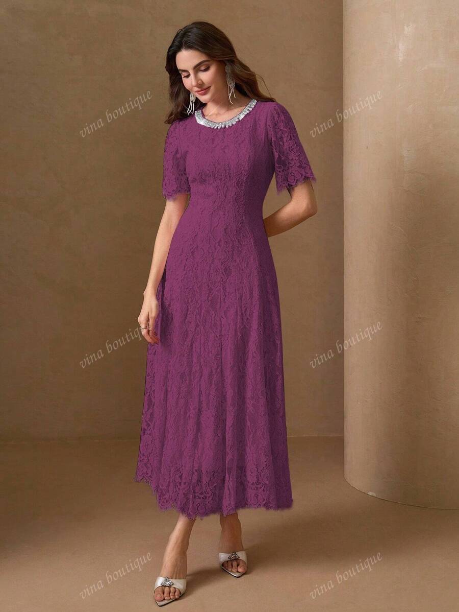 MIU Round Neck Fitted Slimming Women's Premium Quality Party Dress, Sophisticated