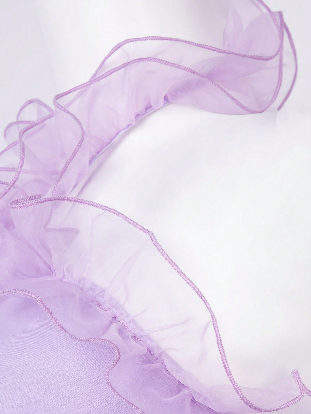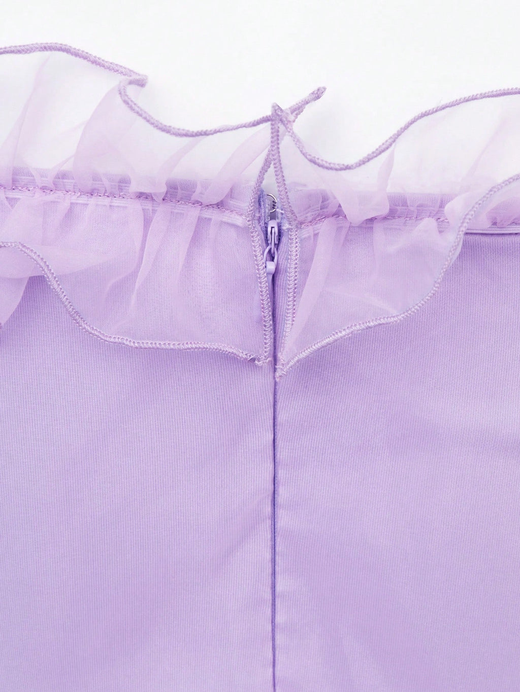 MIU Ruffle Trim Organza Backless Halter Mini Dress