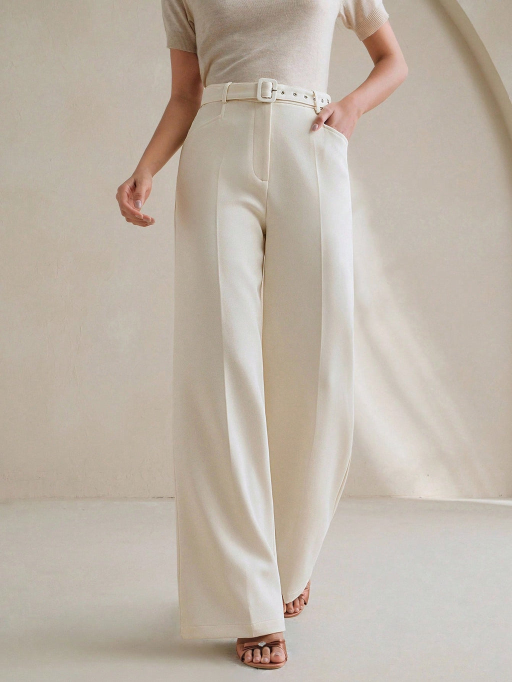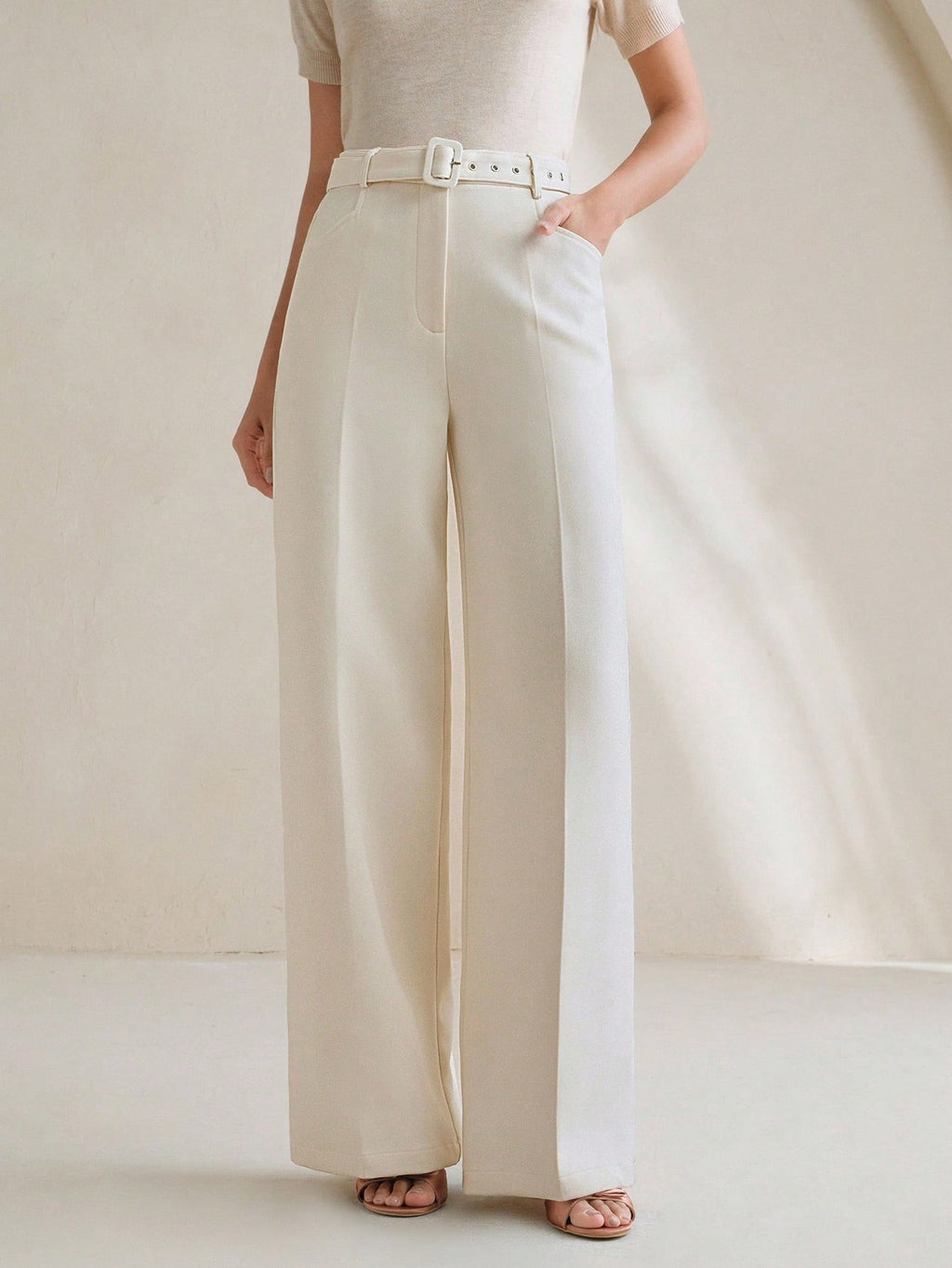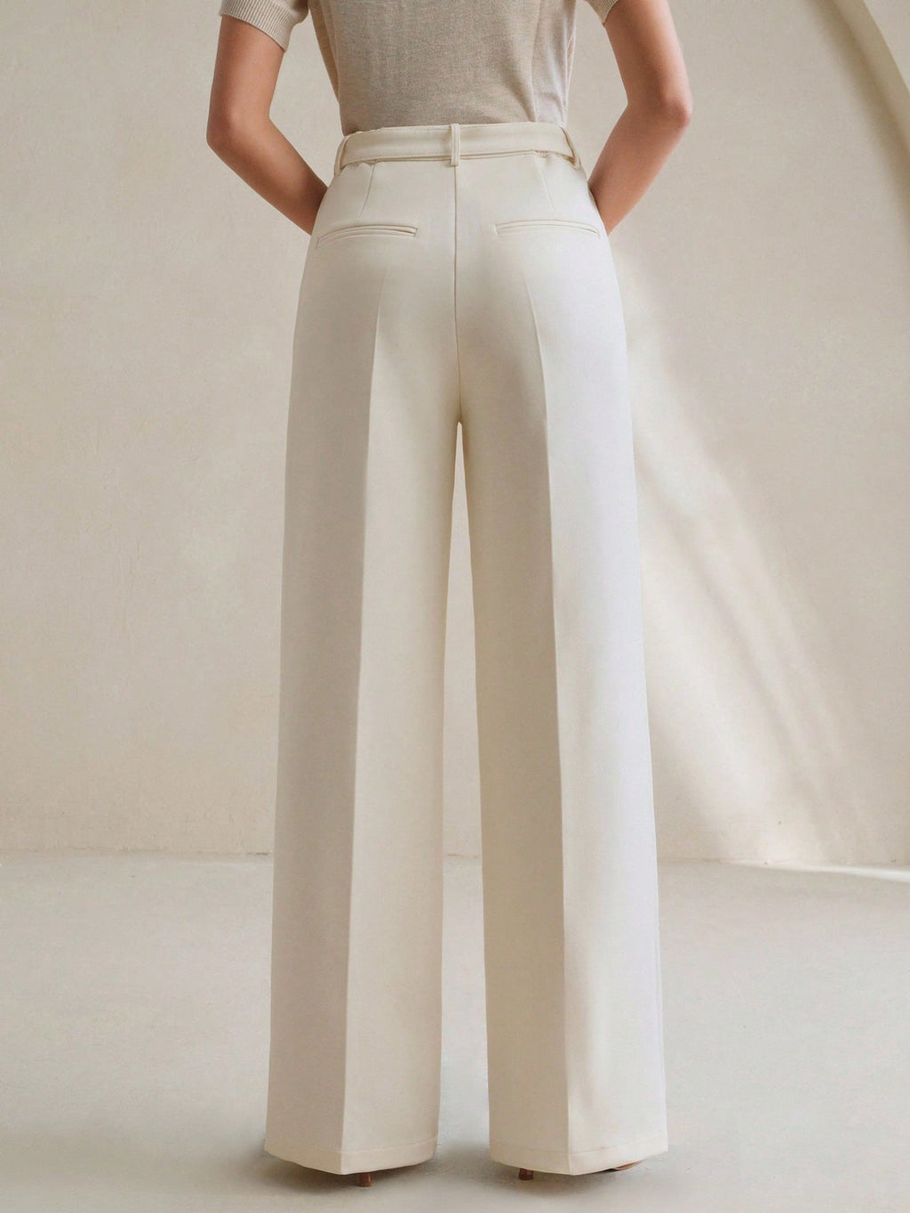 MIU Spring Elegant Relaxed Fit Straight Leg Women's Dress Pants With Belt