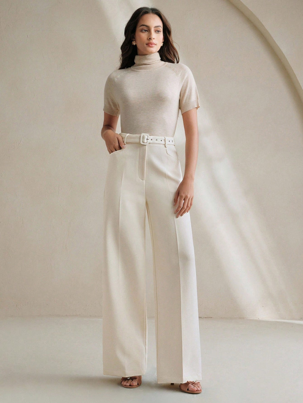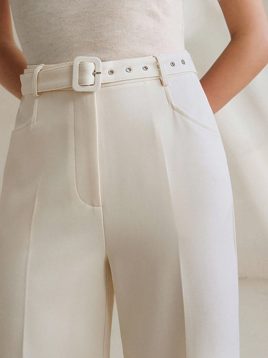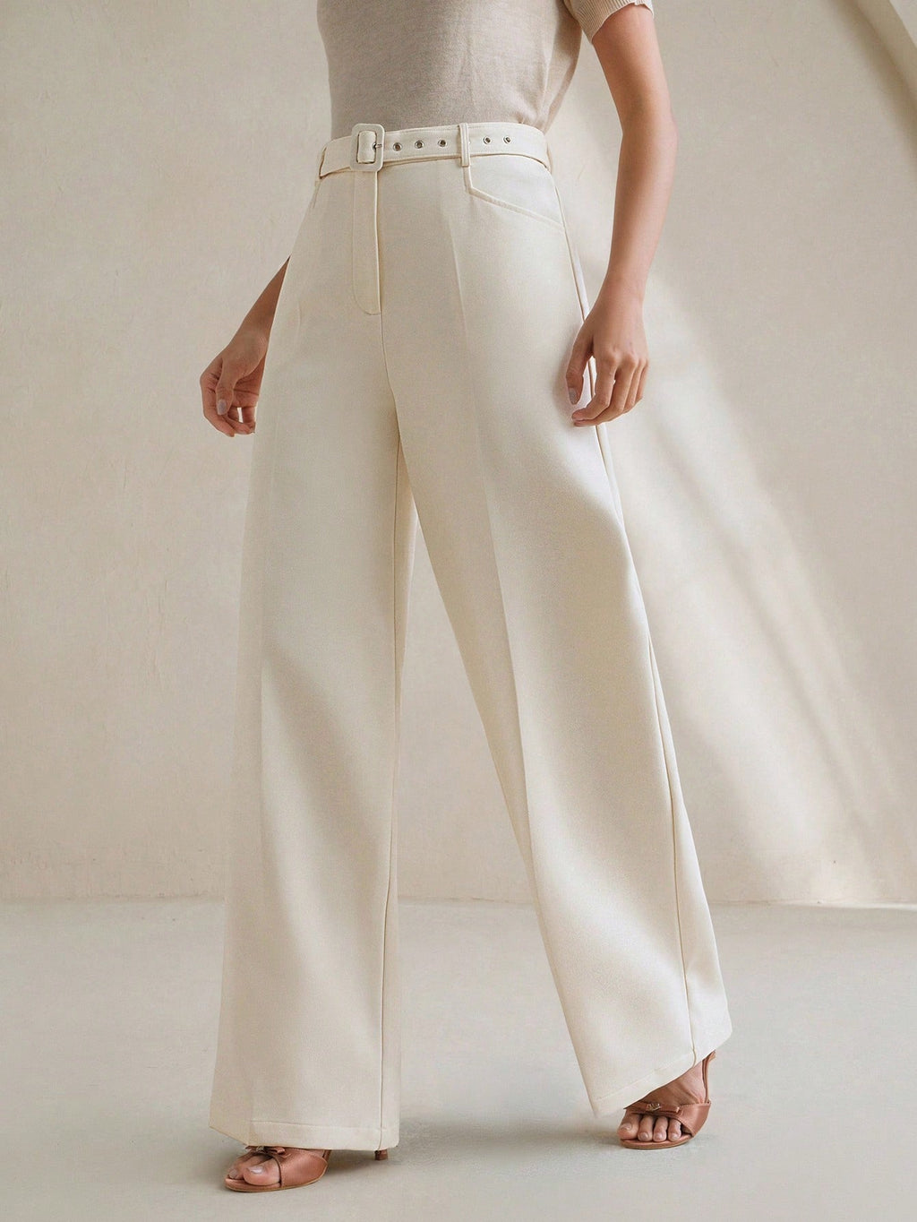 MIU Spring Elegant Relaxed Fit Straight Leg Women's Dress Pants With Belt