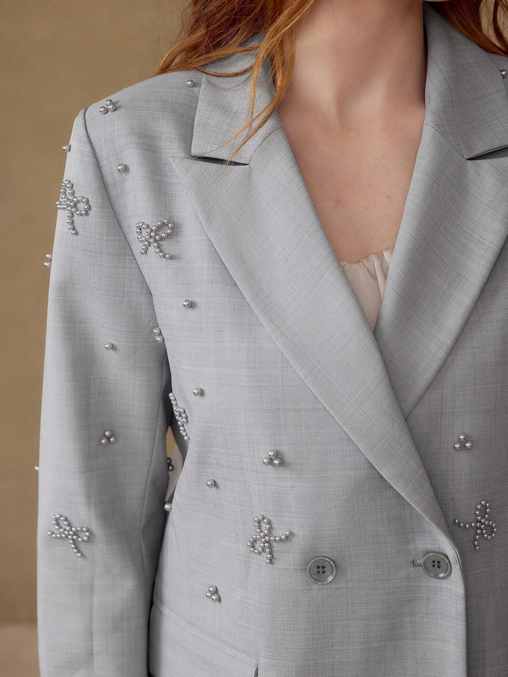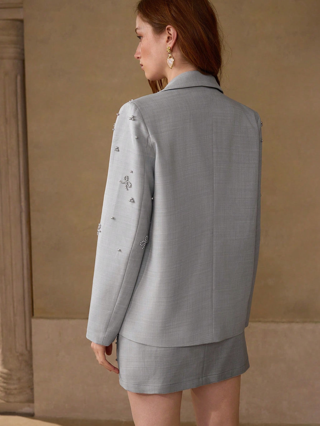 MIU STRUCTURED BEADED DOUBLE BUTTON BLAZER