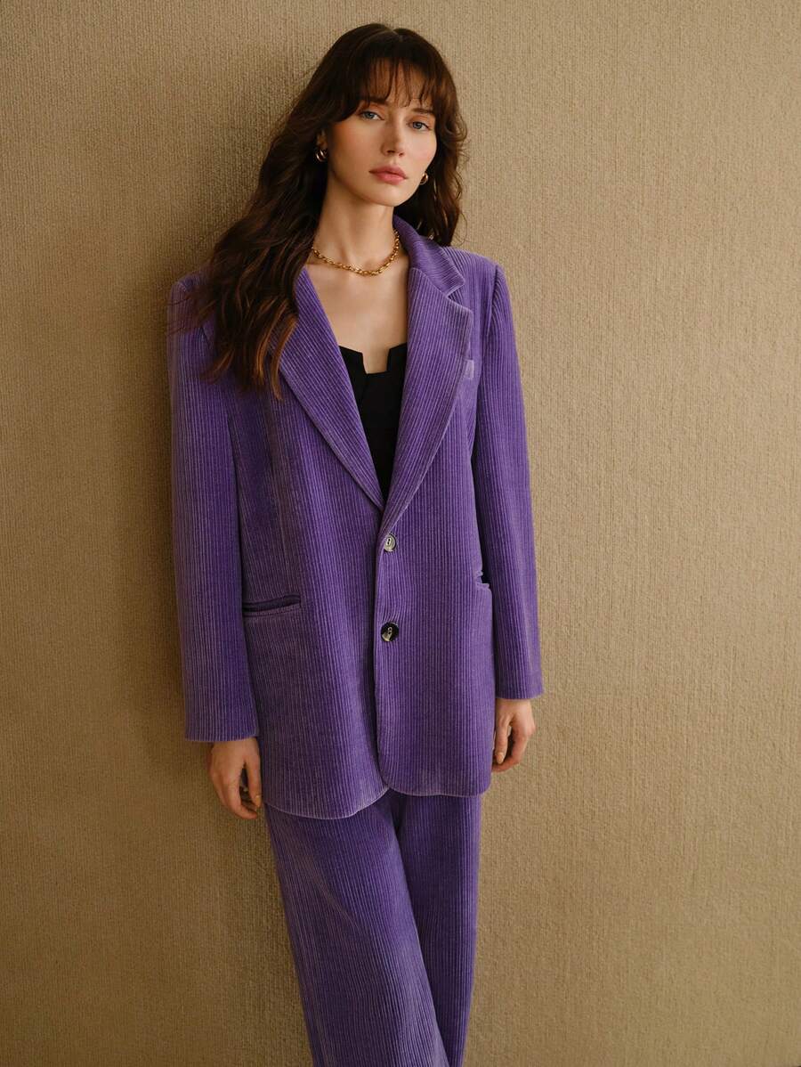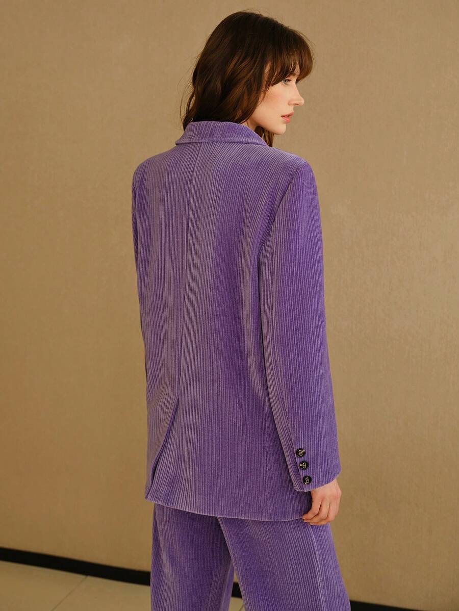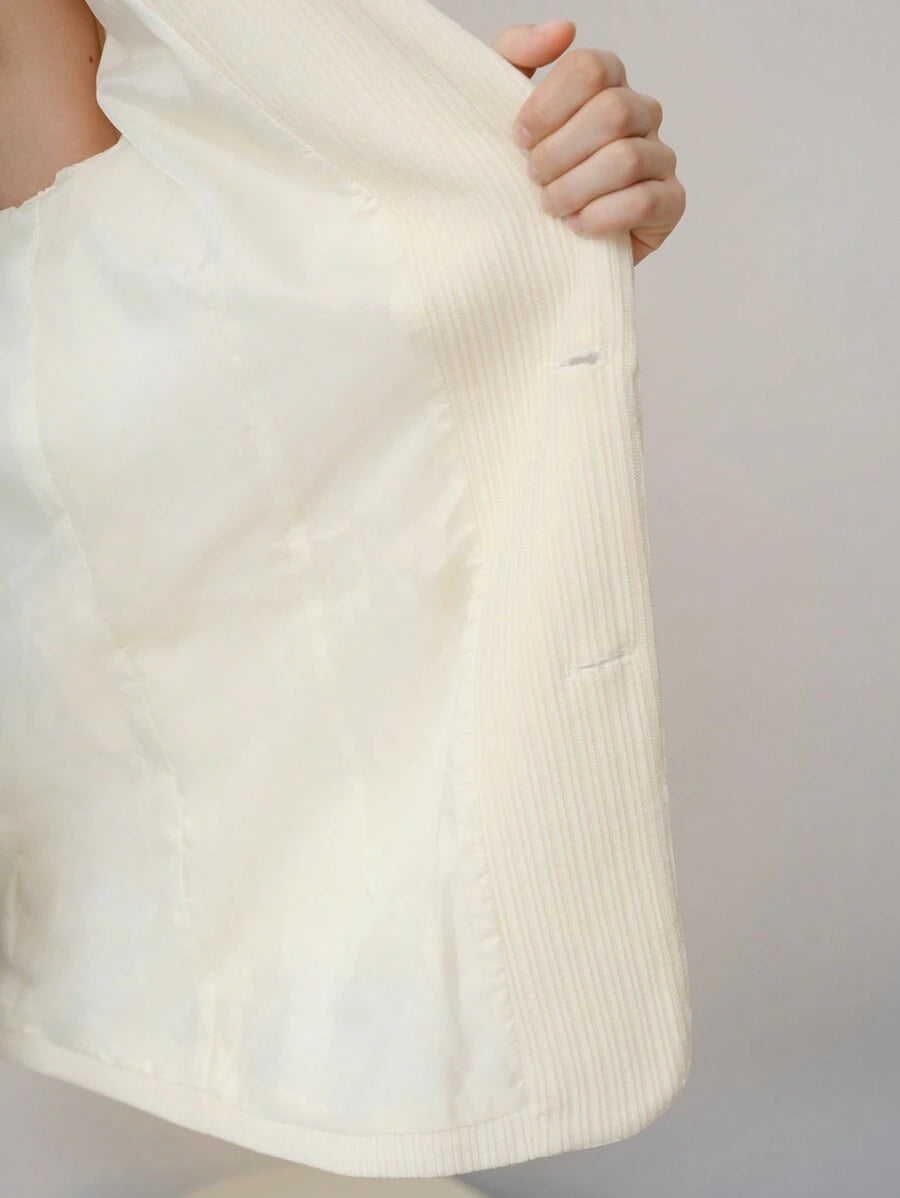 MIU STUDIO CORDUROY SOLID LAPEL COLLAR FLAP DETAIL BLAZER