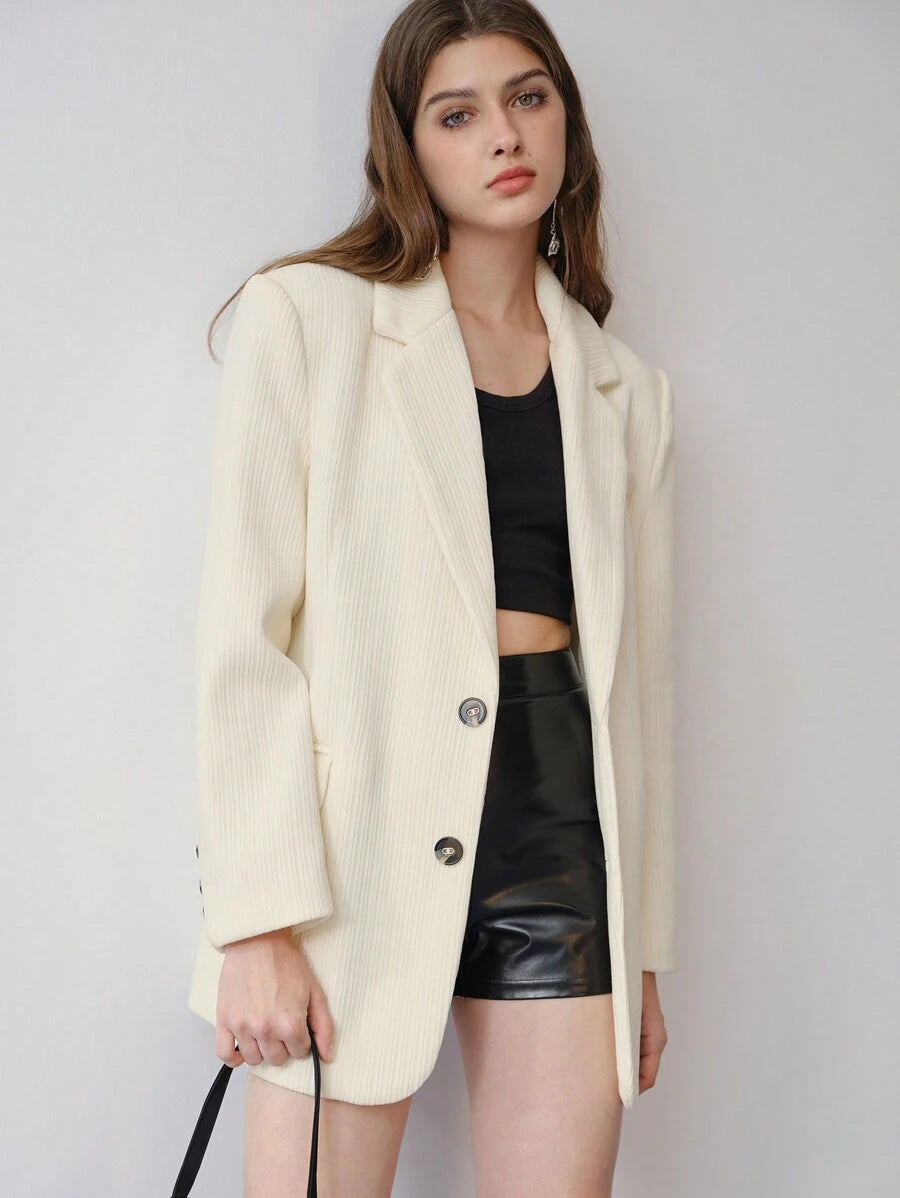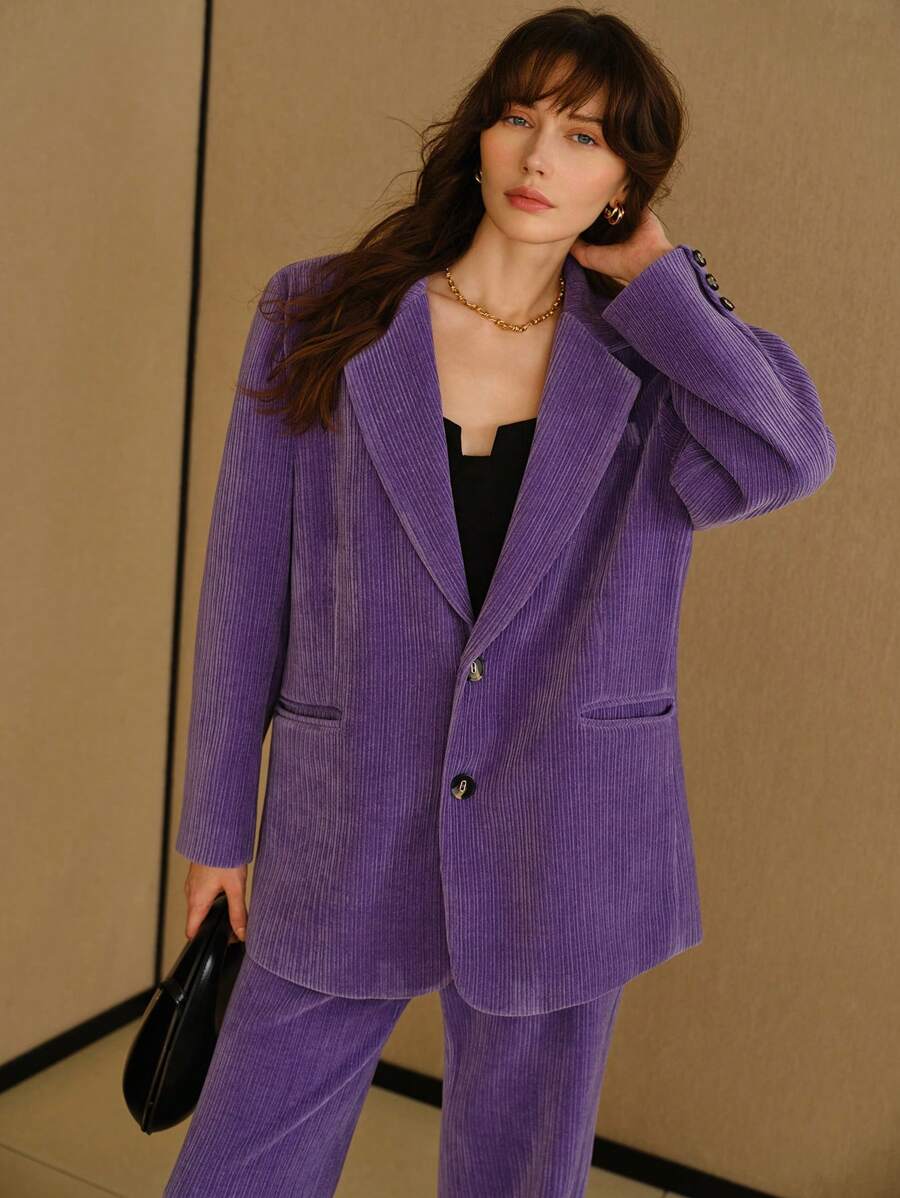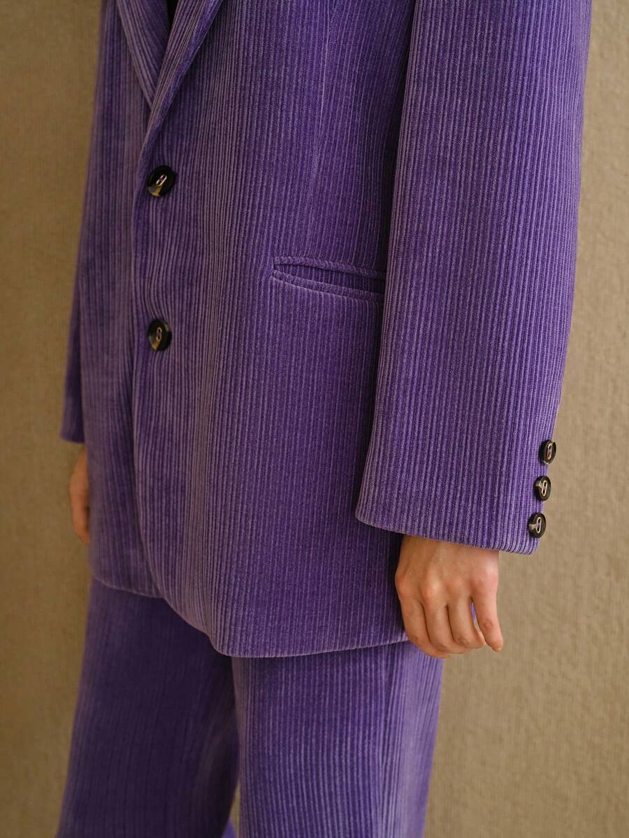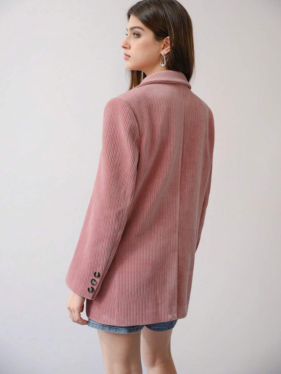 MIU STUDIO CORDUROY SOLID LAPEL COLLAR FLAP DETAIL BLAZER